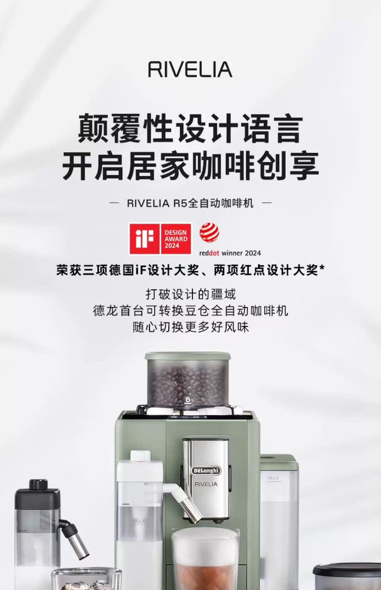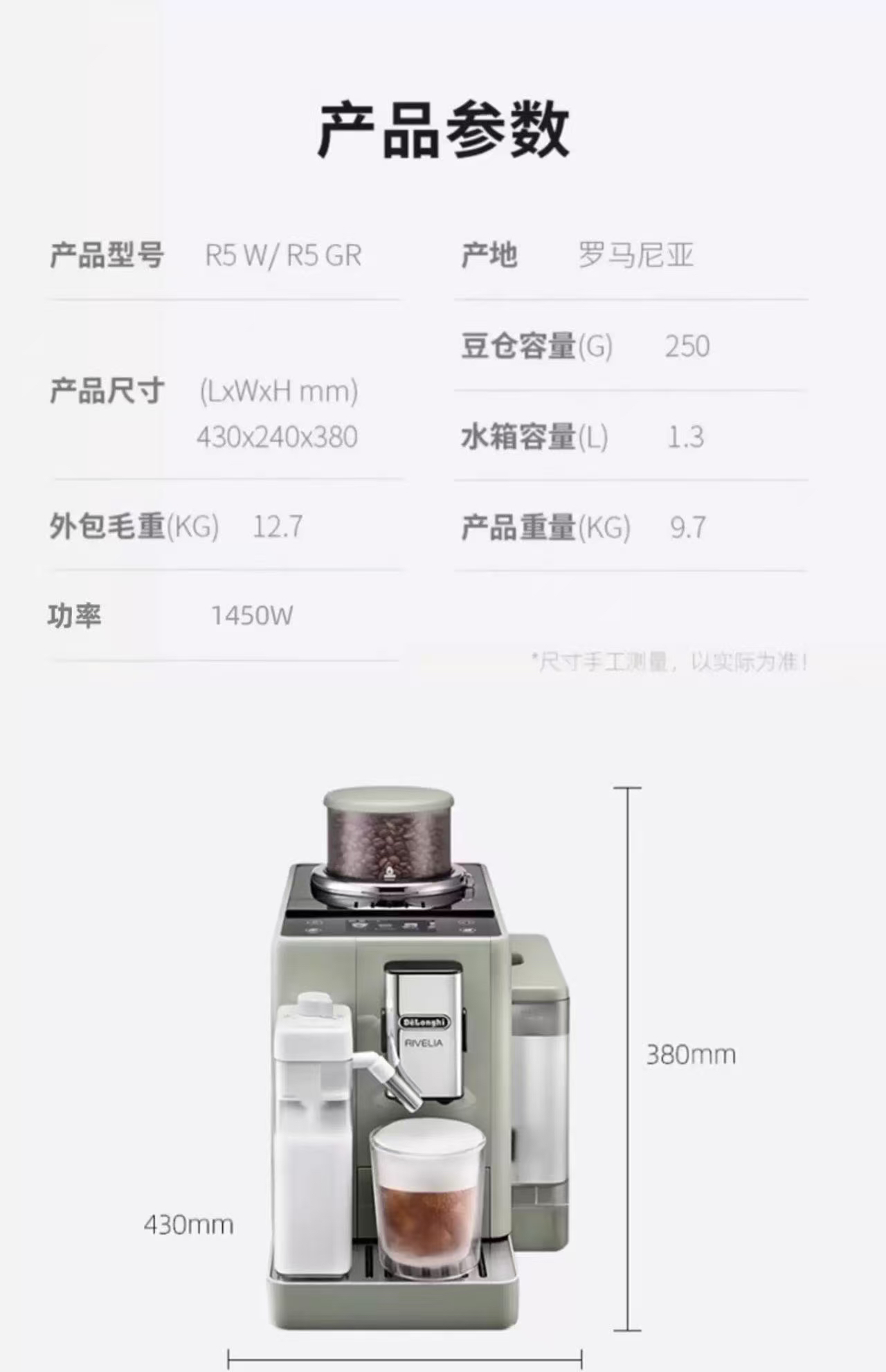 德龙全自动咖啡机R5W或者R5.GR 两种颜色 德龙官方折扣机 样品机 购买日期开始全国联保两年 颜色联系客服 含票含运