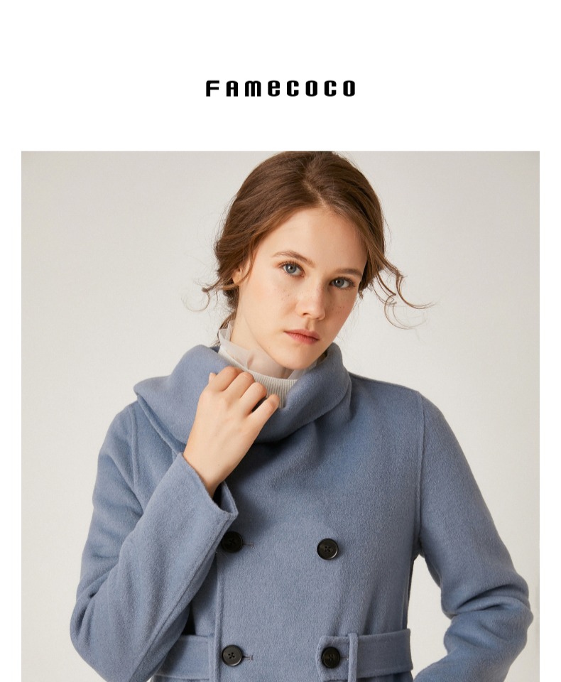 Famecoco范可儿羊毛大衣中长款毛呢大衣外套F198AC014
