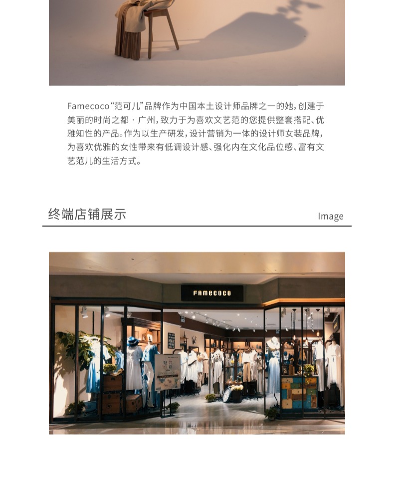 - Famecoco作为中国本土设计师品牌之一的她,创建于美丽的时尚花都广州,自2013年创立以来,一直致力于打造优雅、知性、文艺的穿着理念。