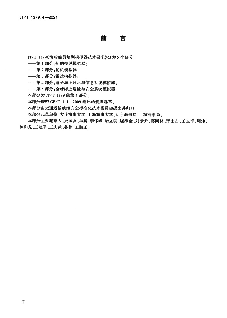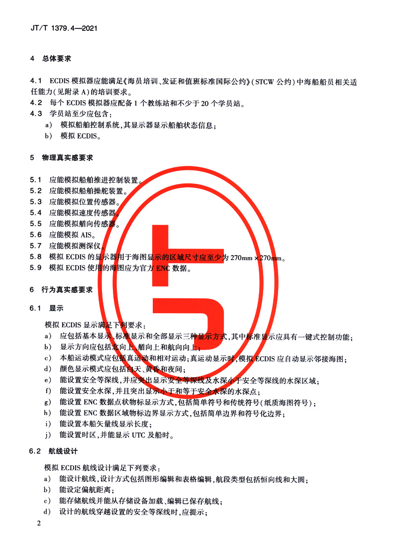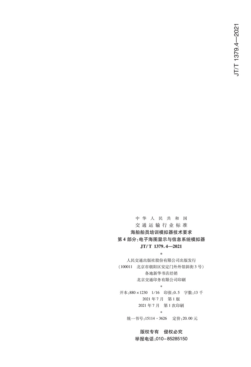 书名:海船船员培训模拟器技术要求 第4部分:电子海图显示与信息系统模拟器(JT/T 1379.4—2021)