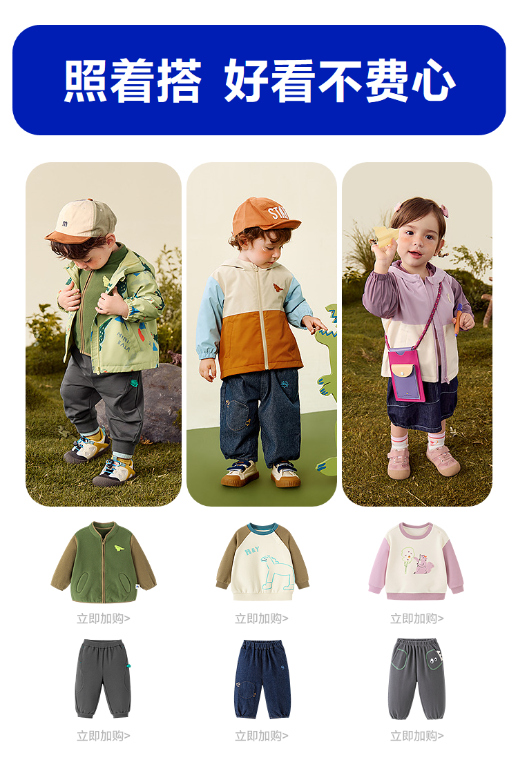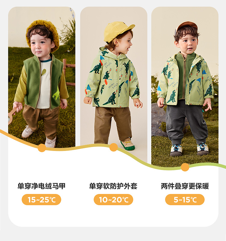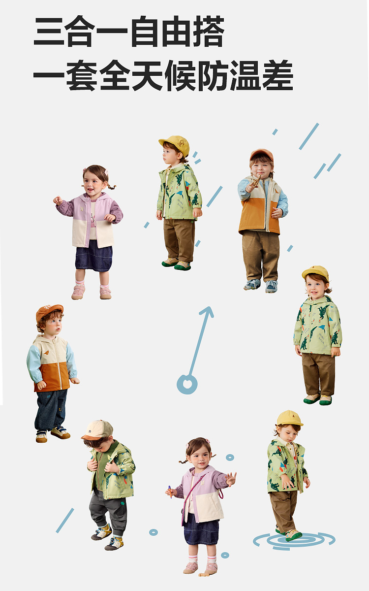 【小软皮】迷你巴拉男童女童连帽外套秋防水防风宝宝夹克上衣