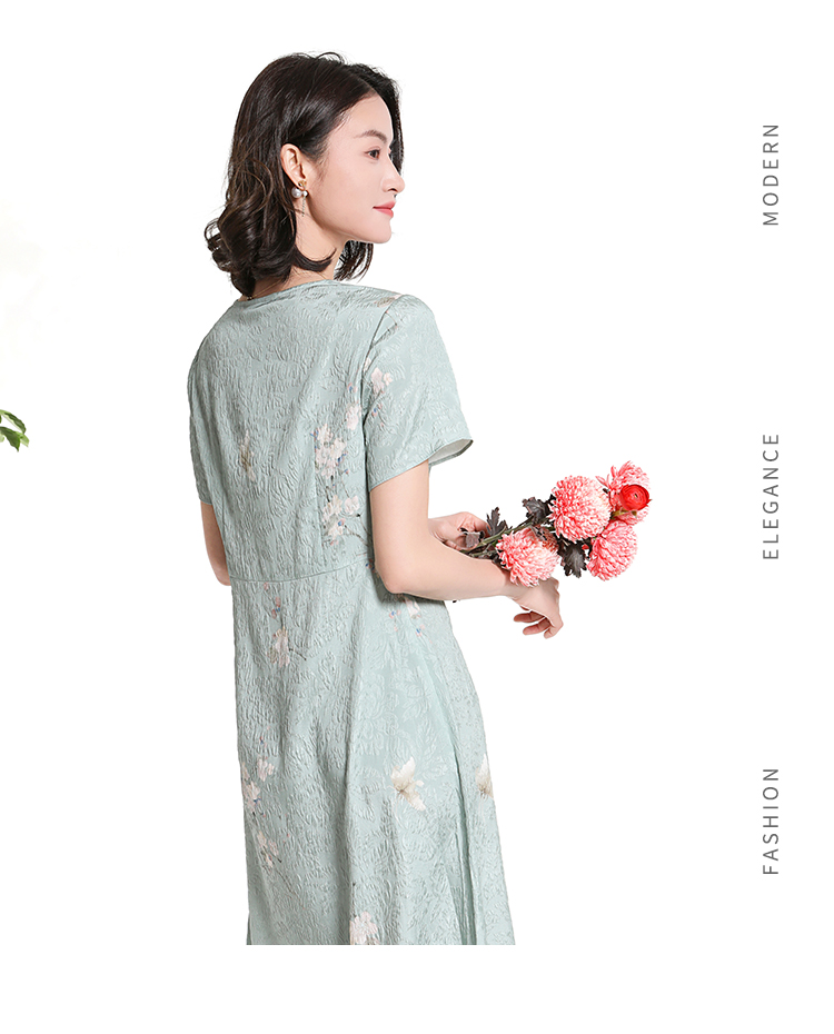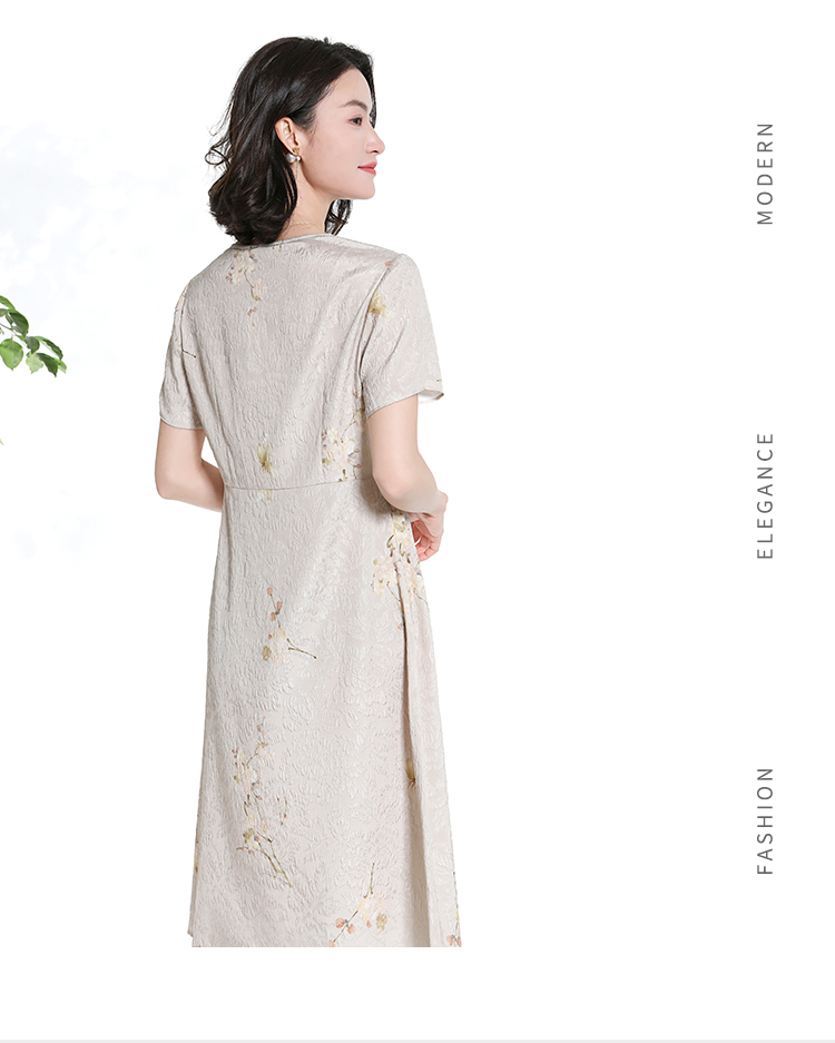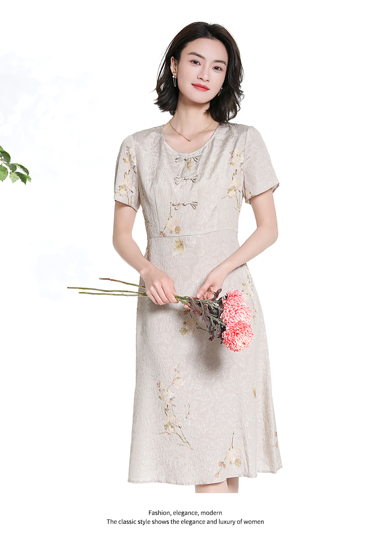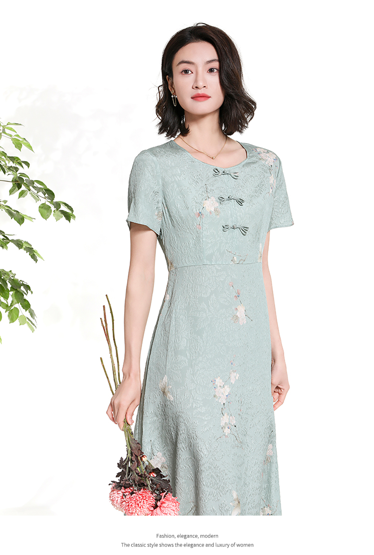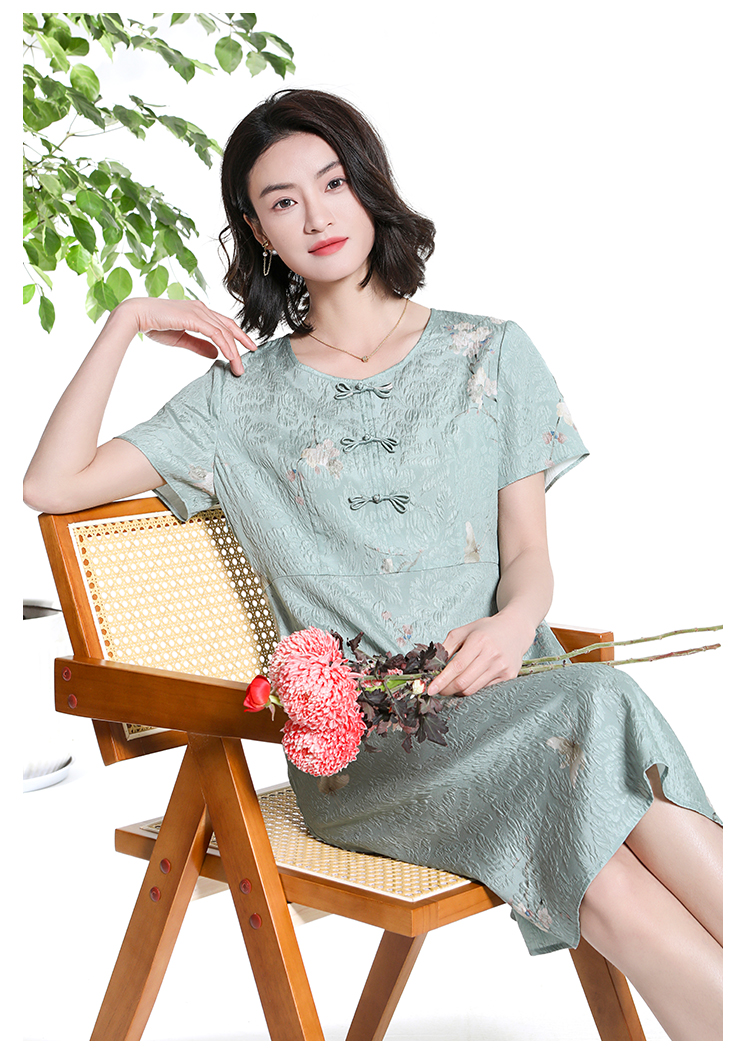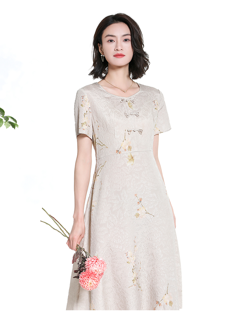 佐尔美夏季新款新中式碎花100%桑蚕丝短袖连衣裙女M42LS80