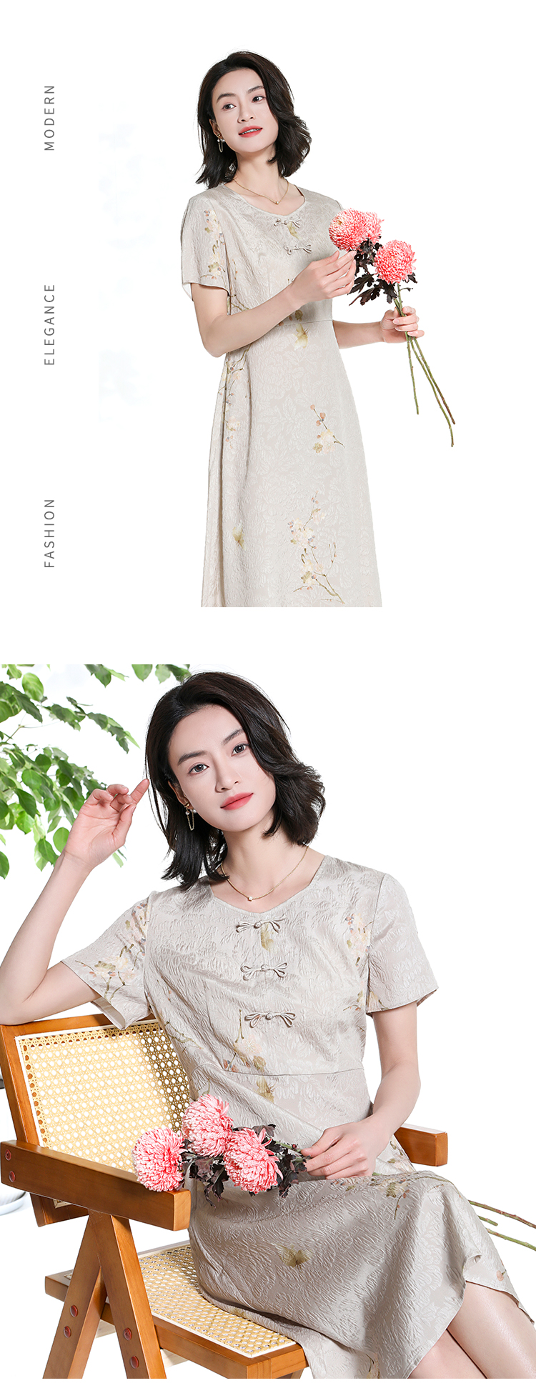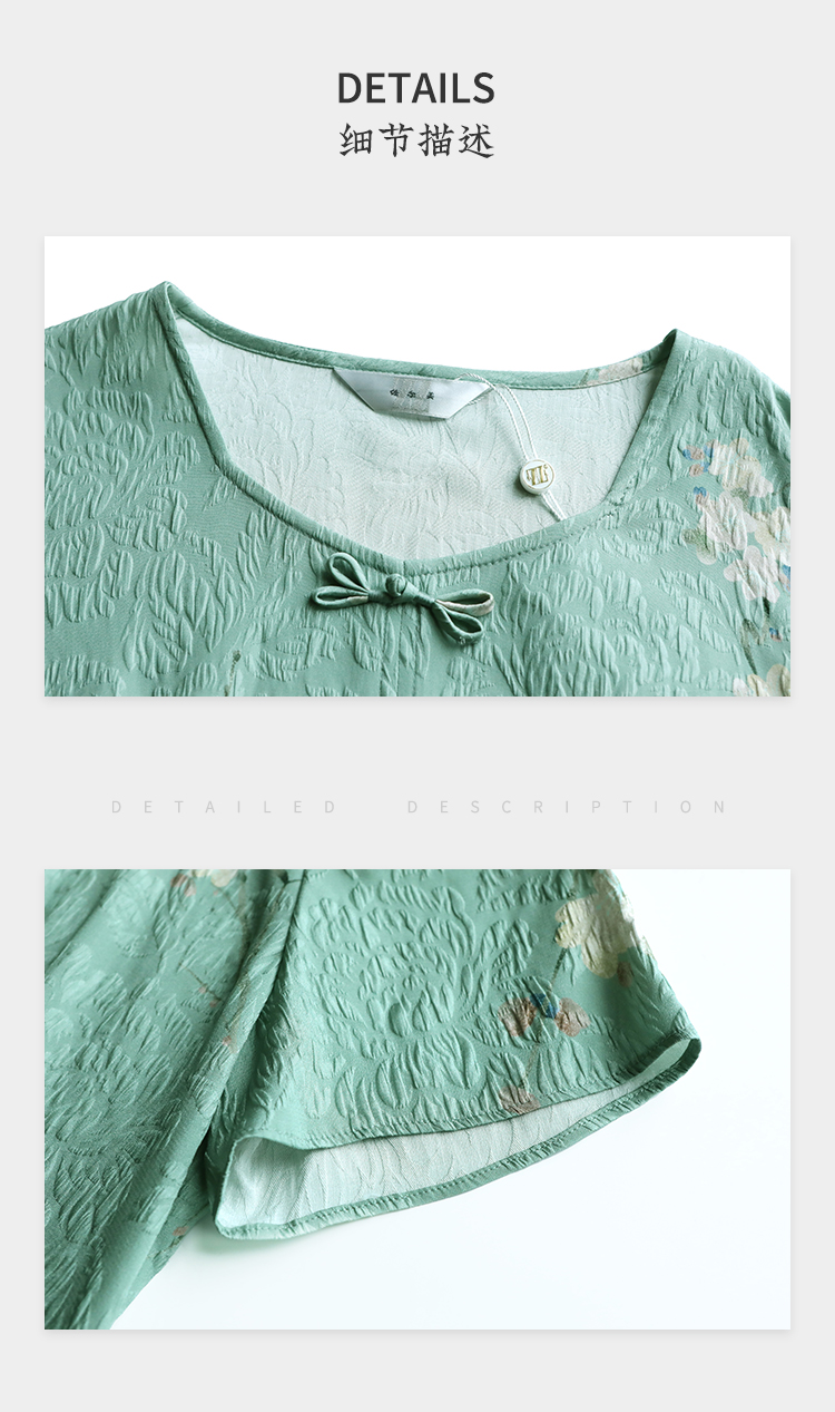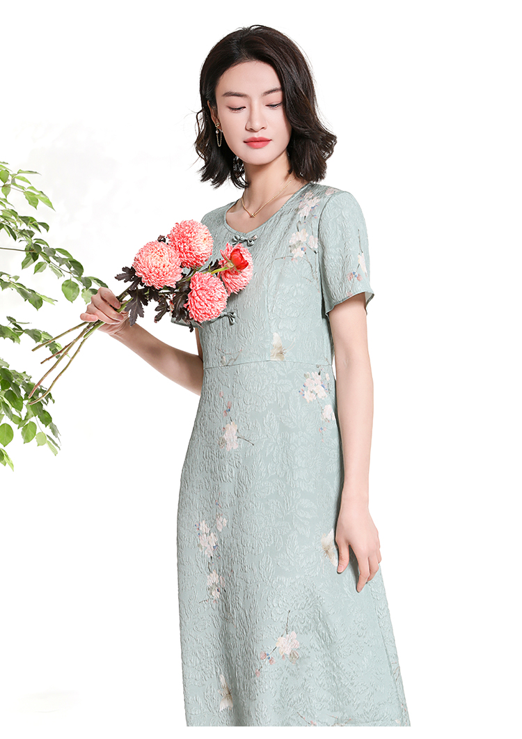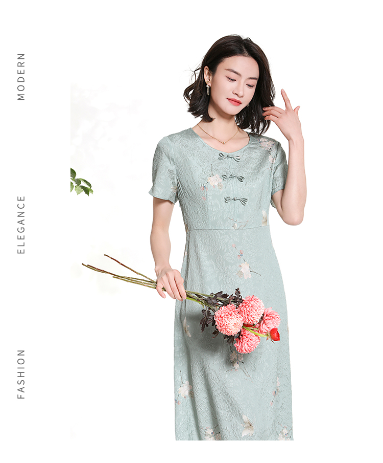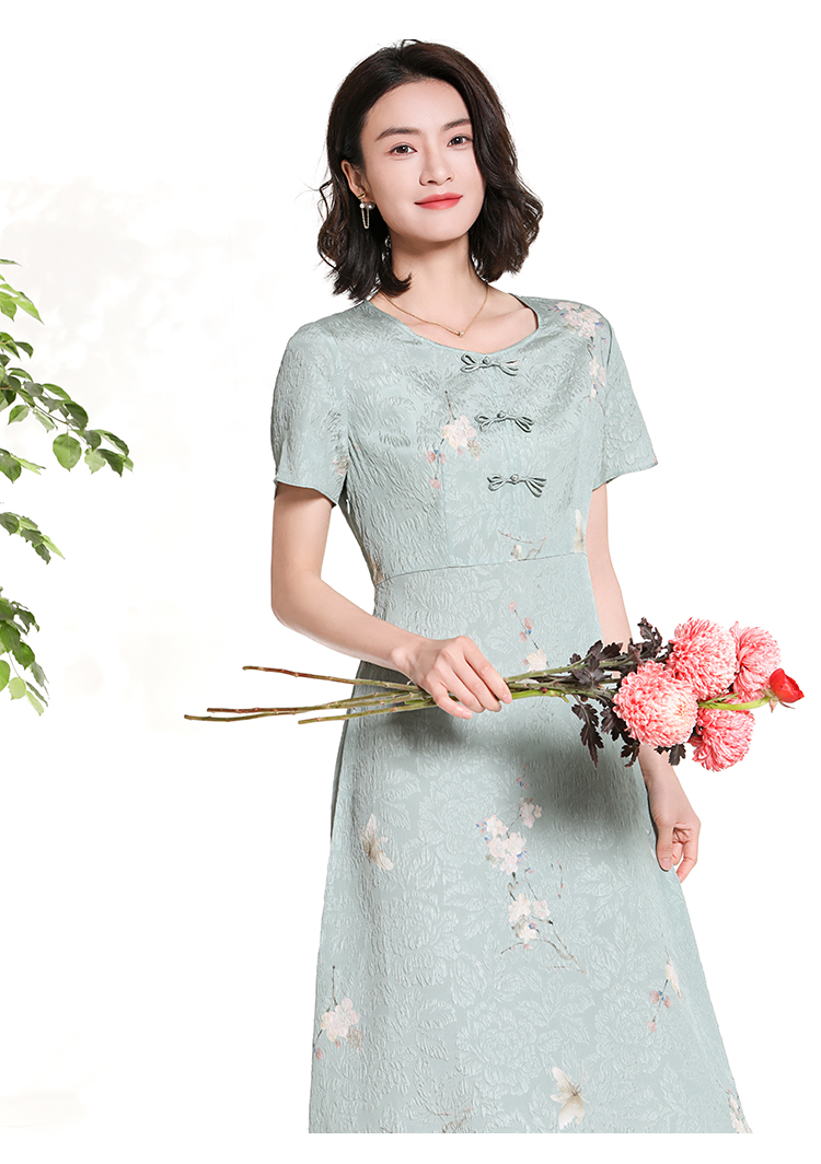 佐尔美夏季新款新中式碎花100%桑蚕丝短袖连衣裙女M42LS80