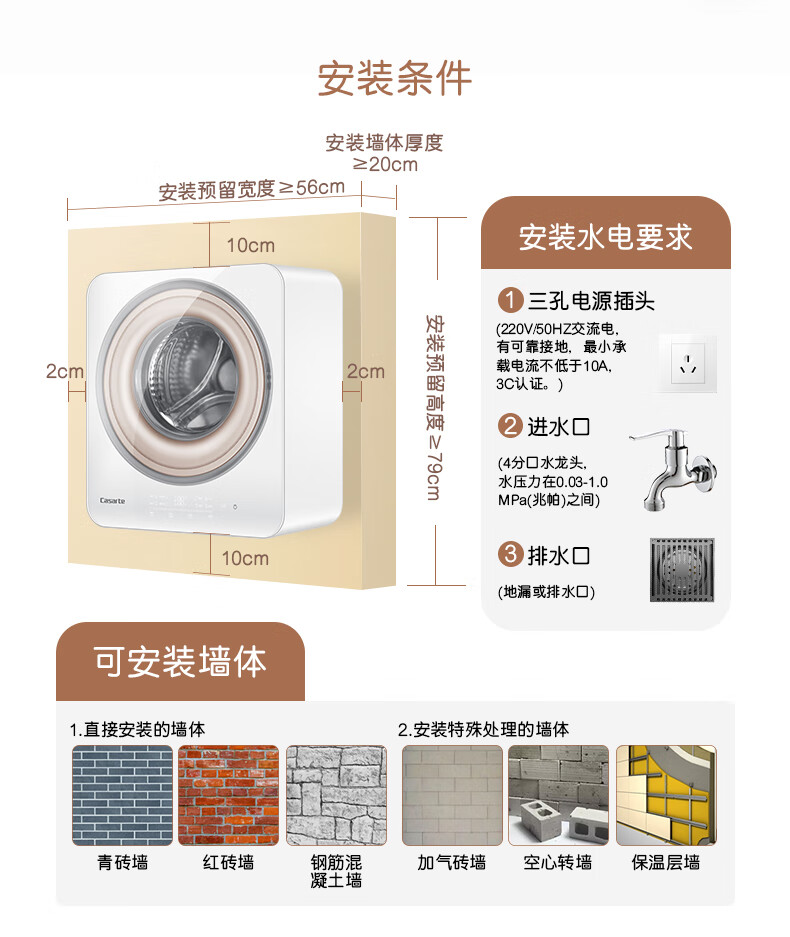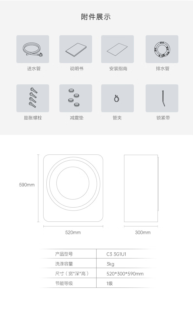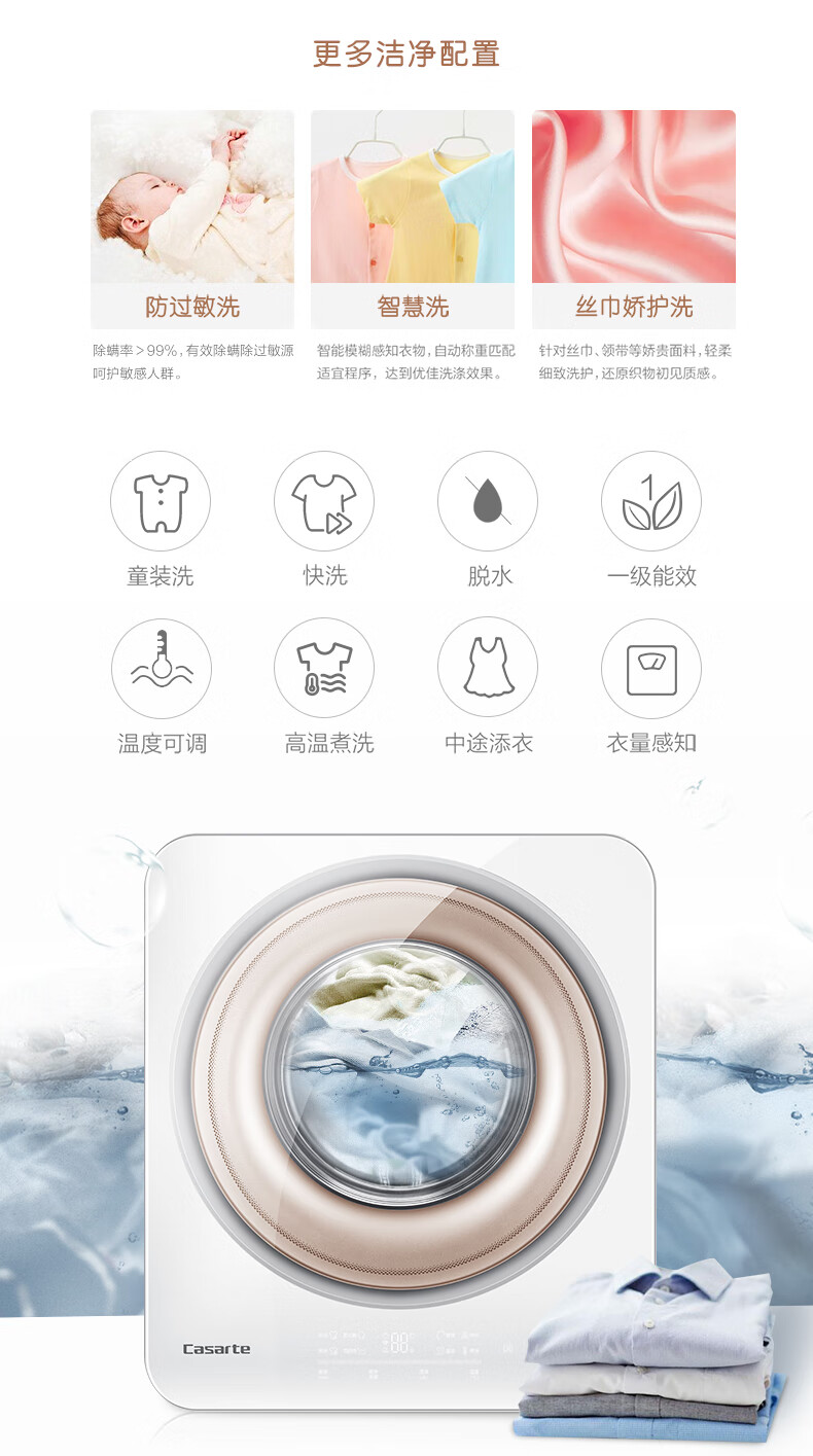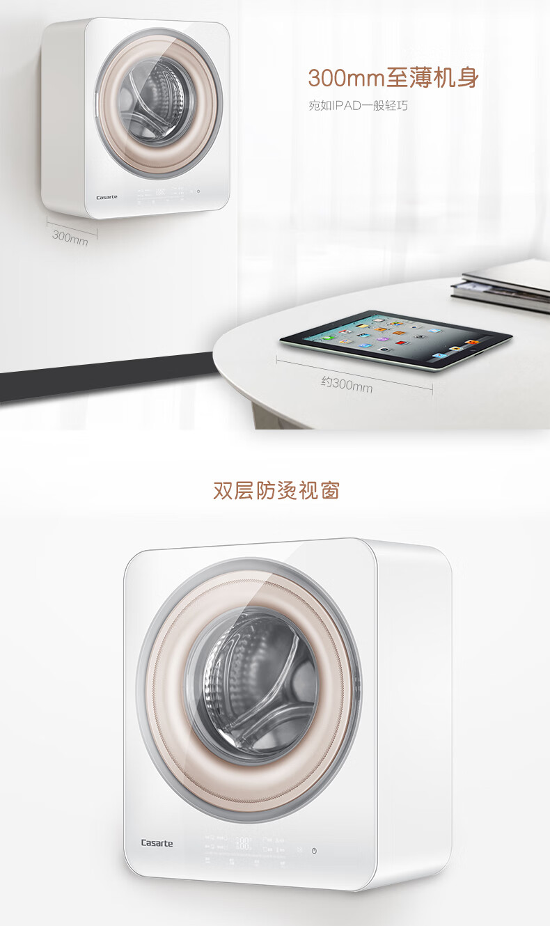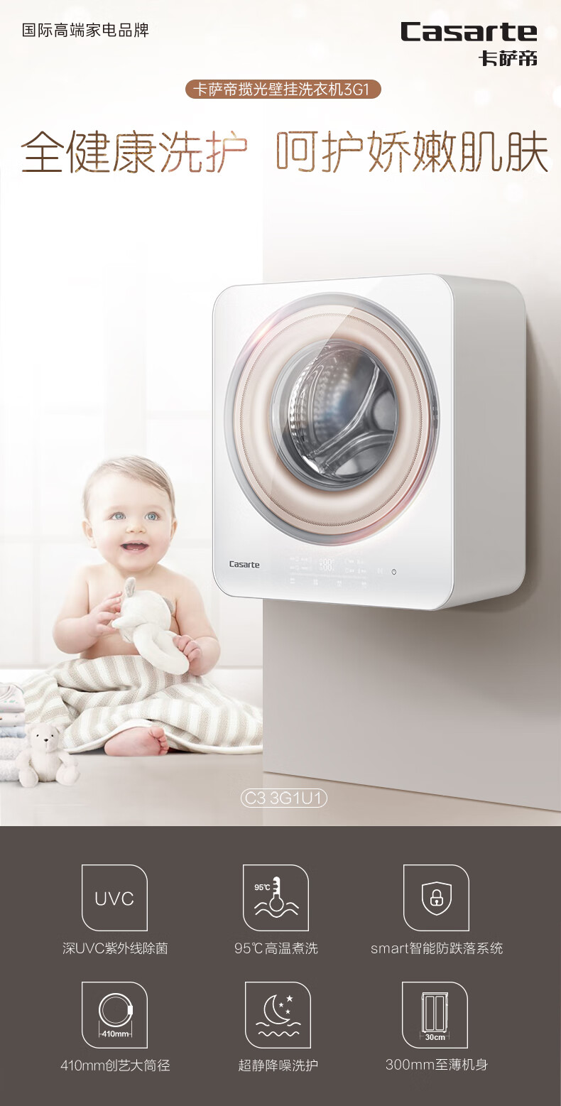 卡萨帝(Casarte)揽光C3壁挂洗衣机 3公斤迷你滚筒洗衣机全自动 儿童婴儿挂壁式小型母婴 高温除菌螨 C3 3G1U1