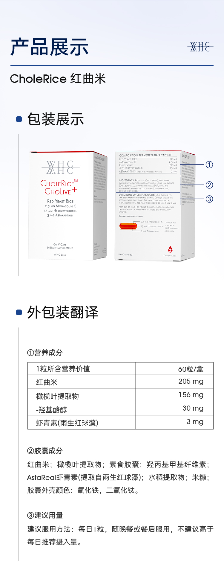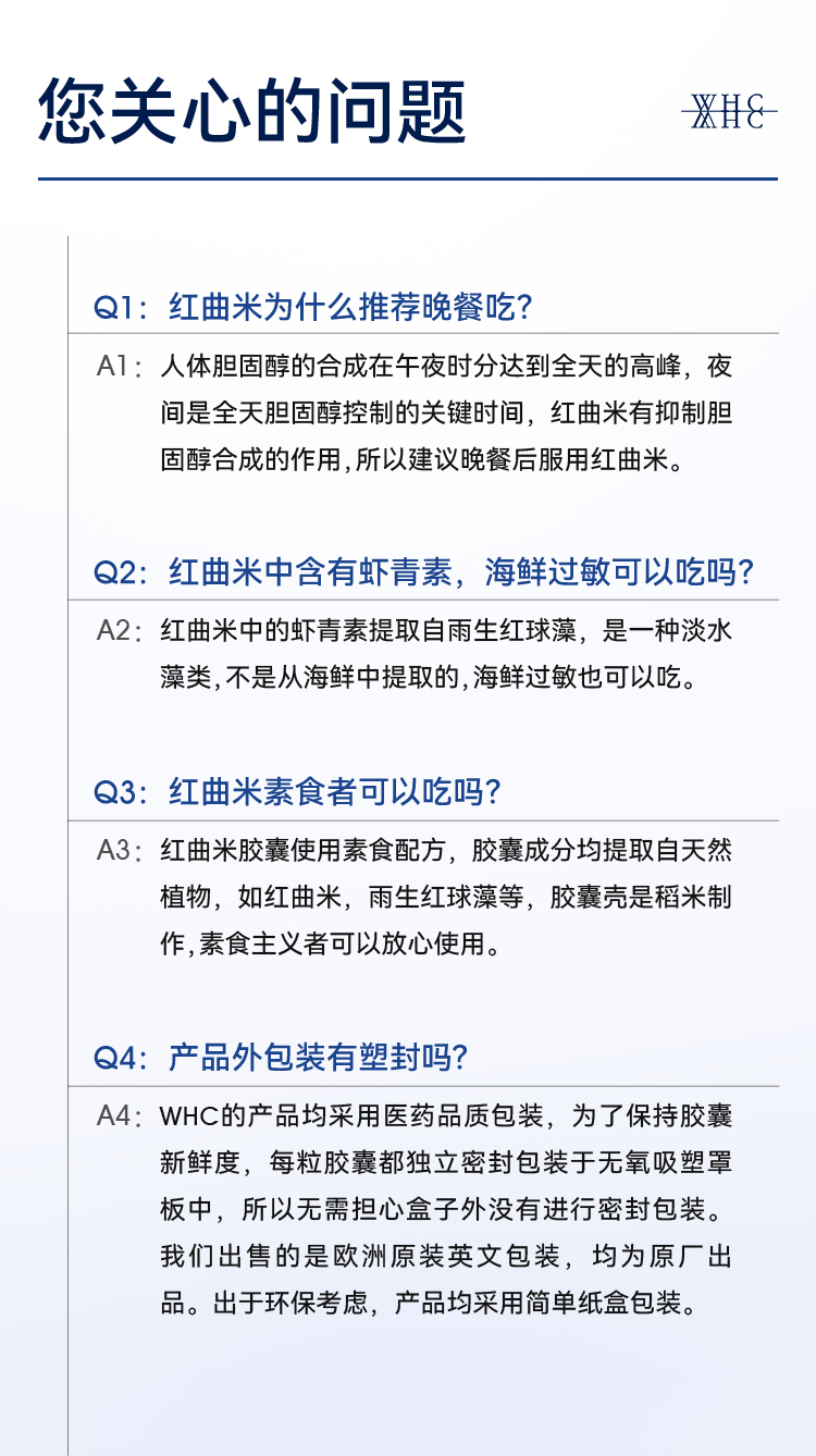 WHC红曲米胶囊莫纳可林K虾青素高含量胆固醇血脂健康比利时60粒