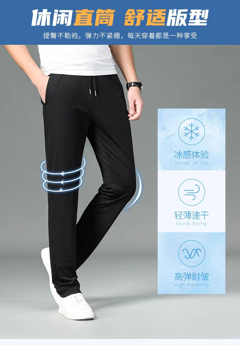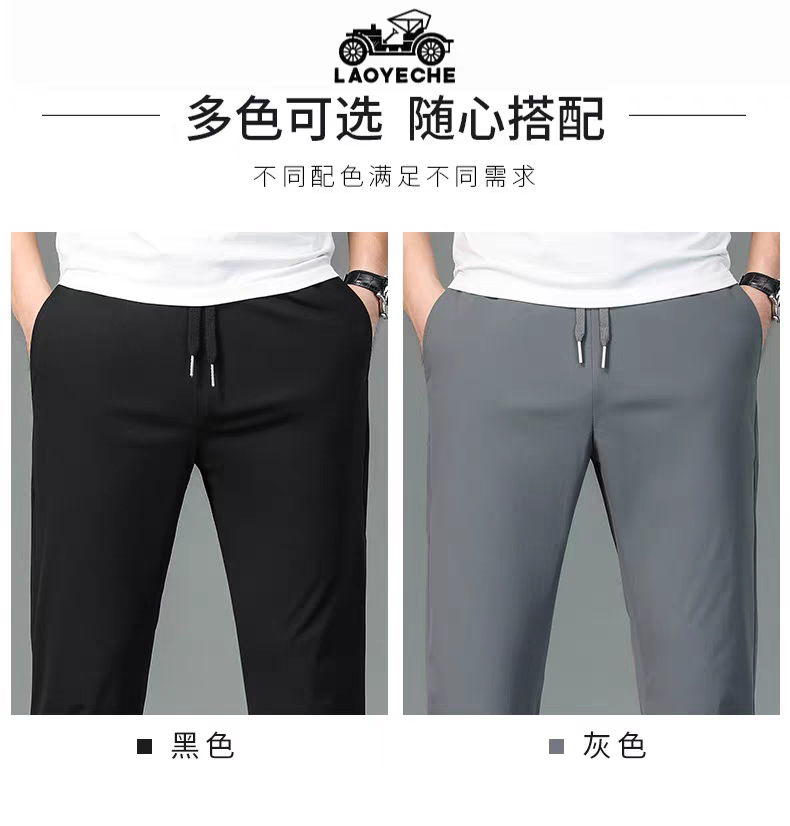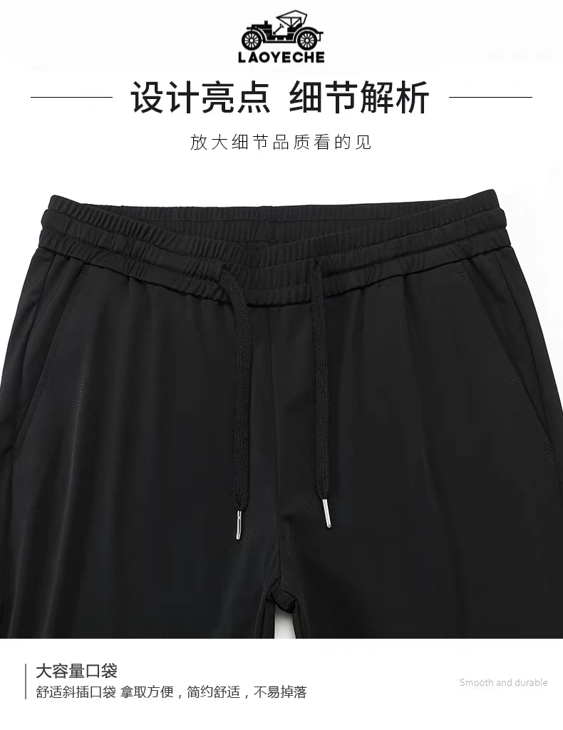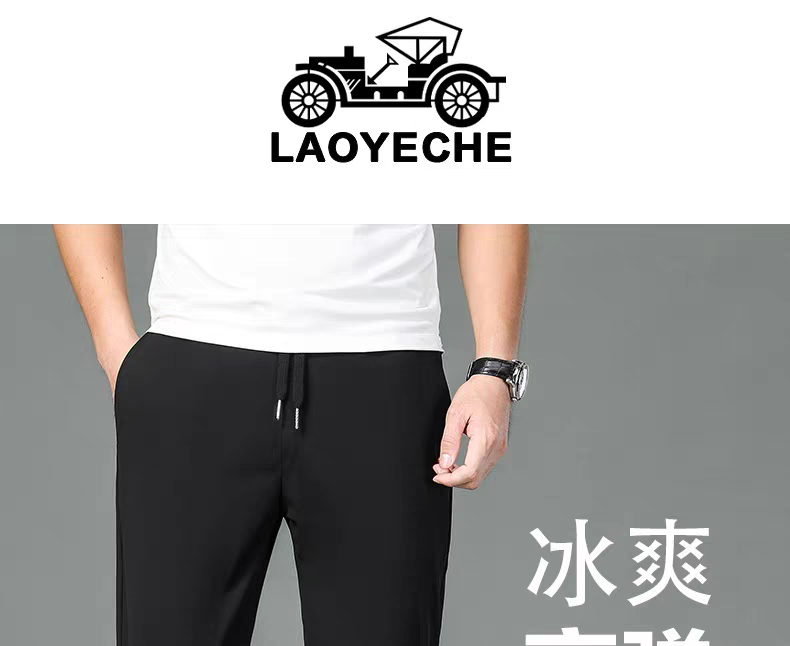 99元/2条【官旗同款99元一条在售】香港LAOYECHE 老爷车男士夏季冰丝凉感速干运动裤 大弹力宽松休闲裤