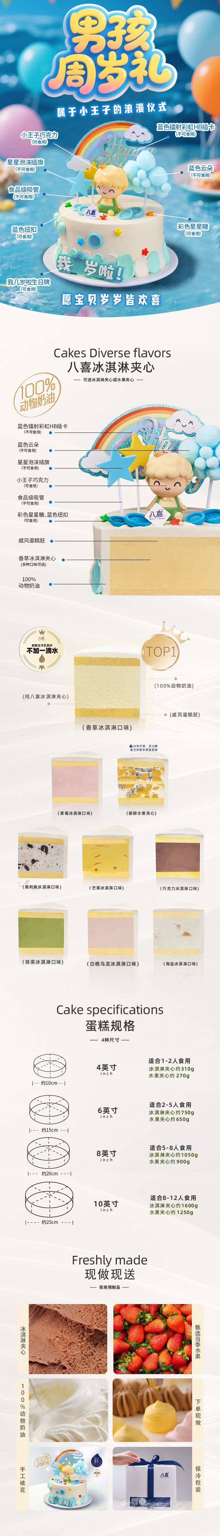 ⭐【男孩周岁礼】冰淇淋/水果生日蛋糕