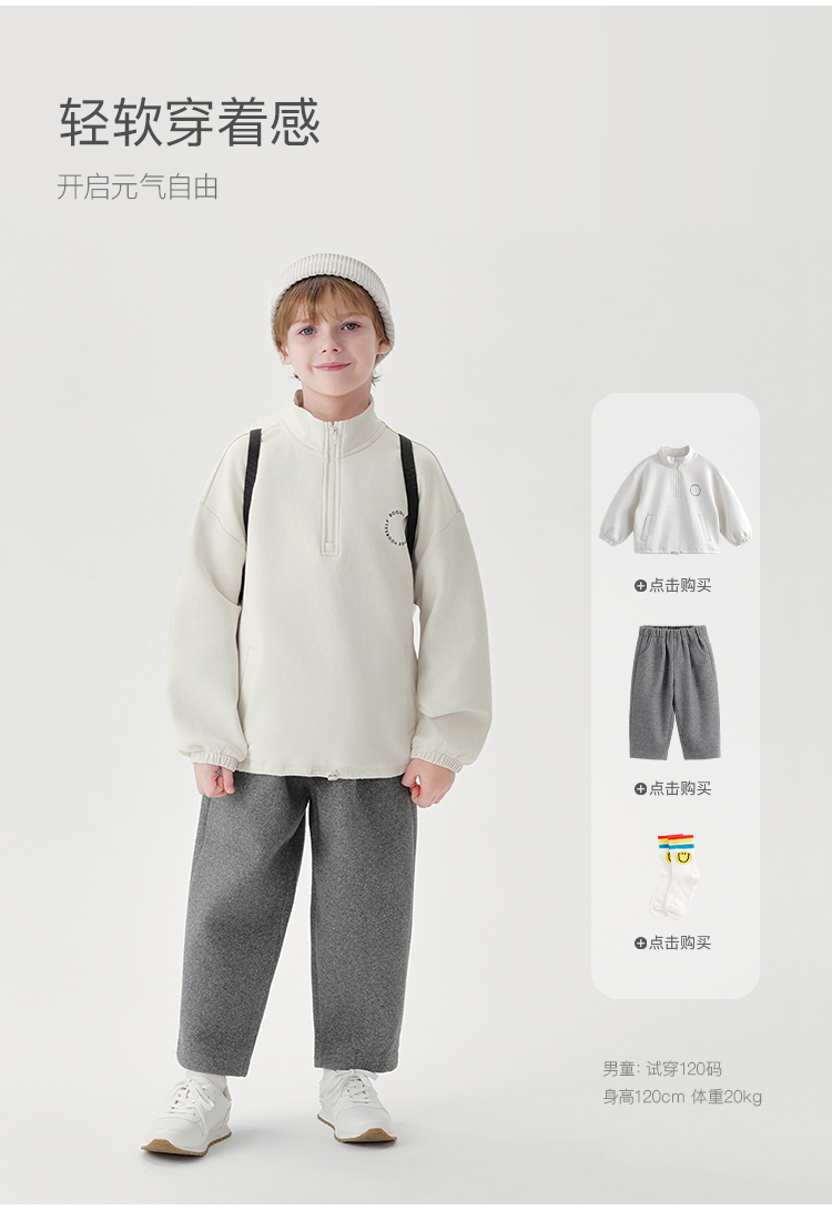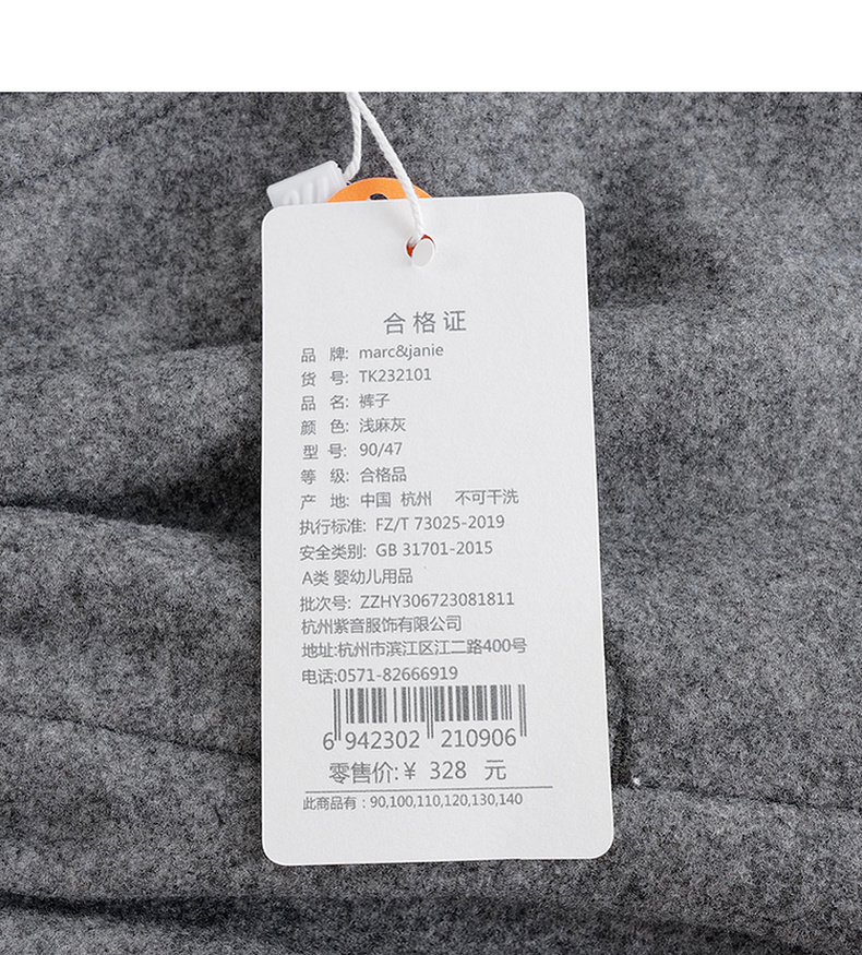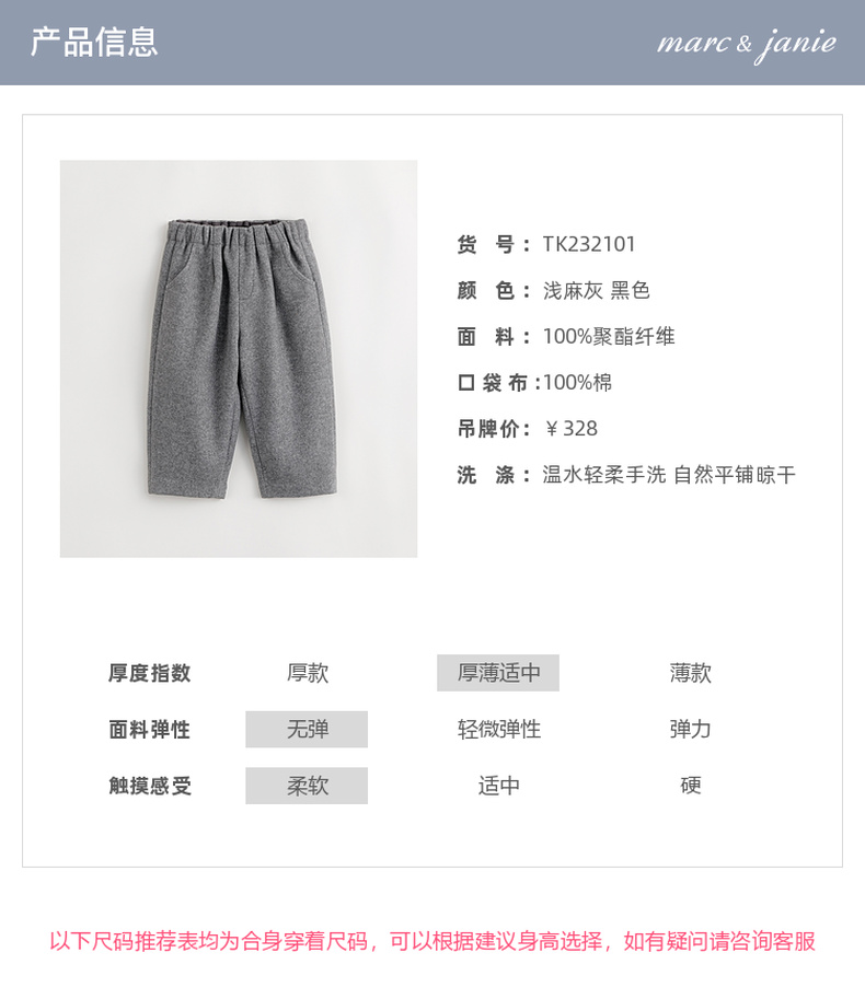 马克珍妮秋冬装新款 男女童保暖毛呢宽松萝卜裤 232101