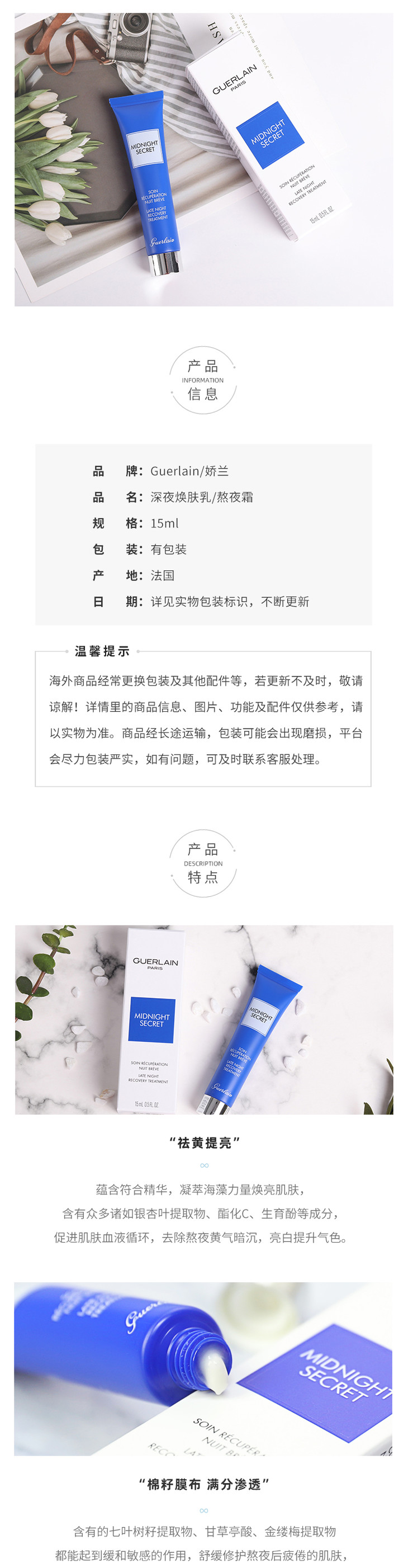 Guerlain/娇兰 熬夜霜 深夜焕肤乳面霜 修护精华改善疲态!15ml 【CDF】