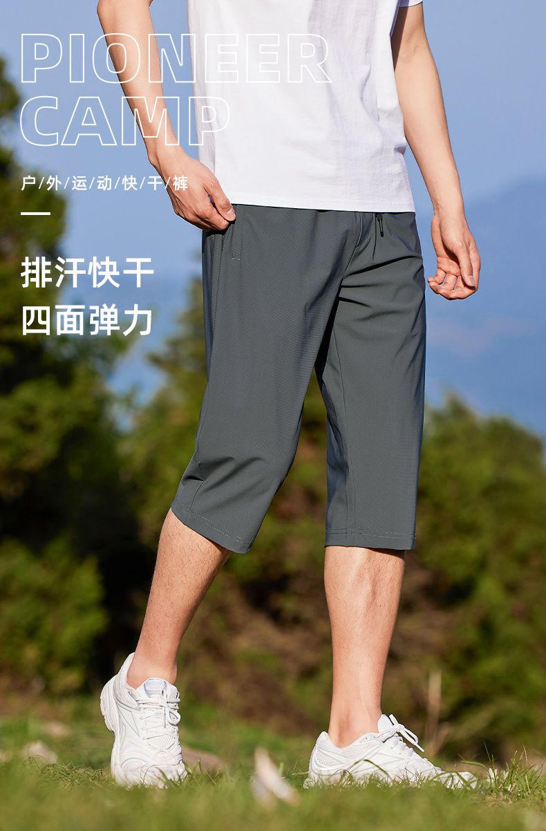 拓路者夏季薄款快干弹力七分裤男休闲裤凉爽直筒裤拉链口袋运动裤
