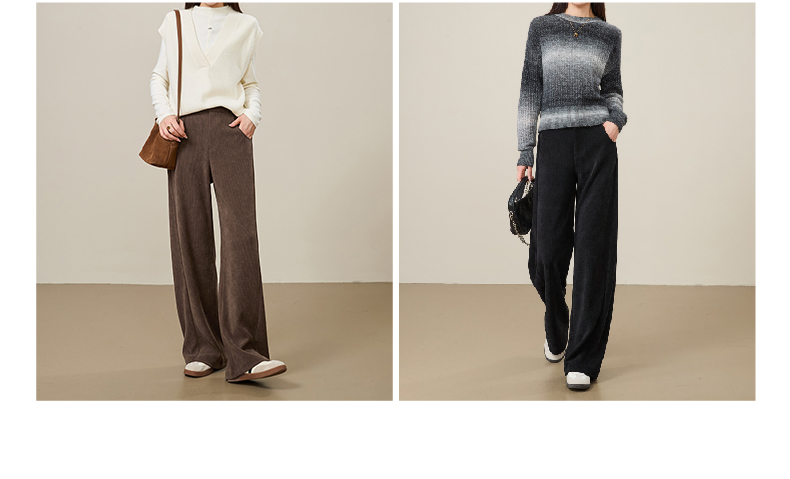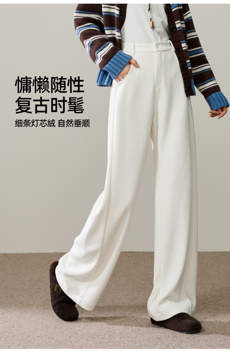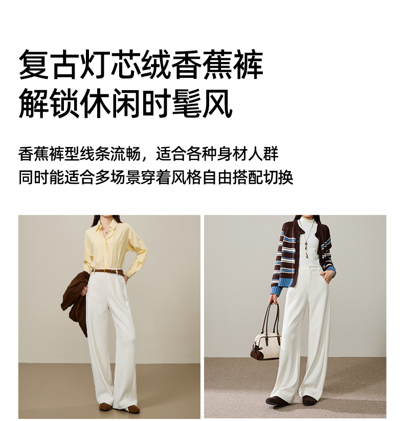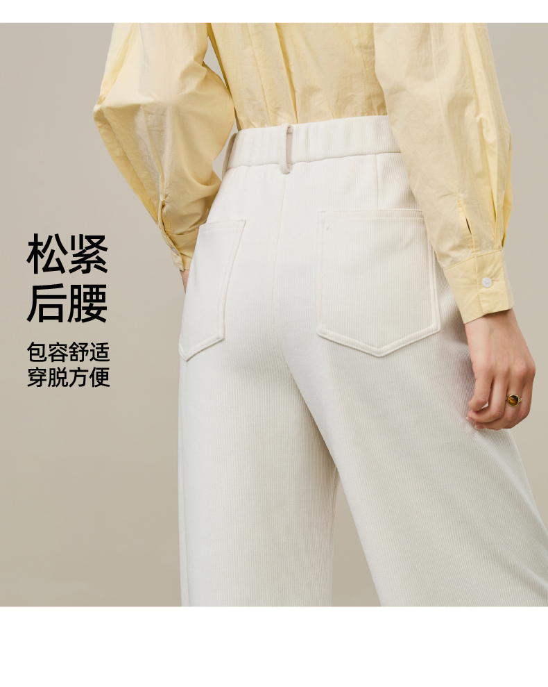 【复古-灯芯绒-香蕉裤】逸阳春款高腰显瘦直筒休闲阔腿糯米裤8114