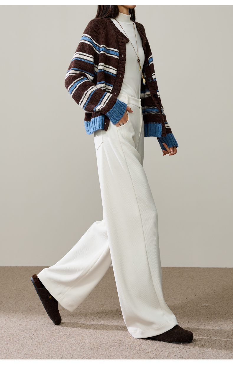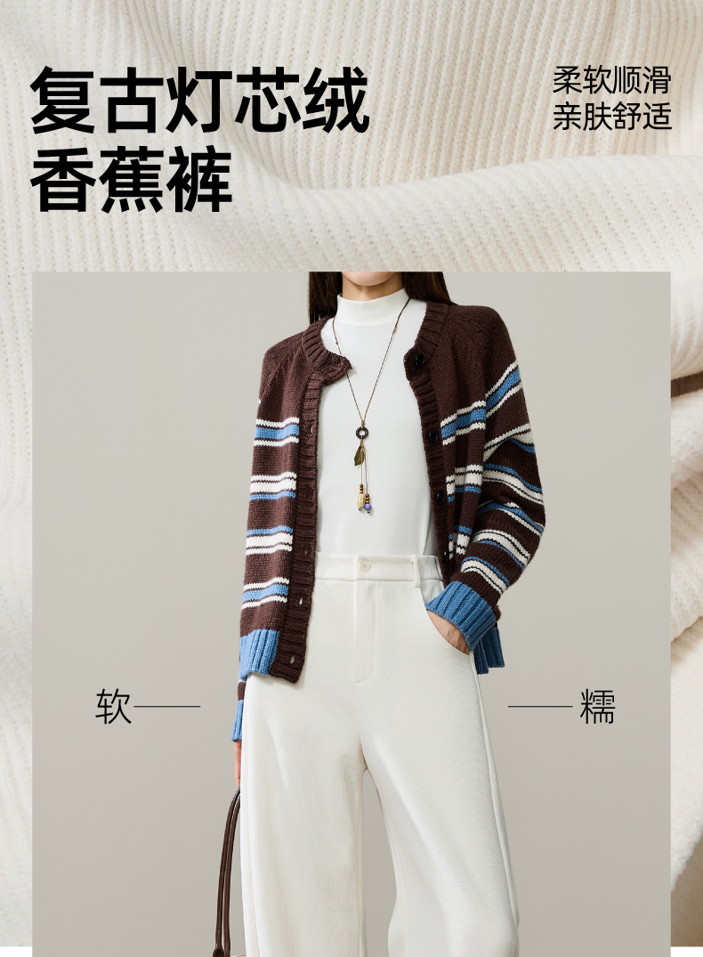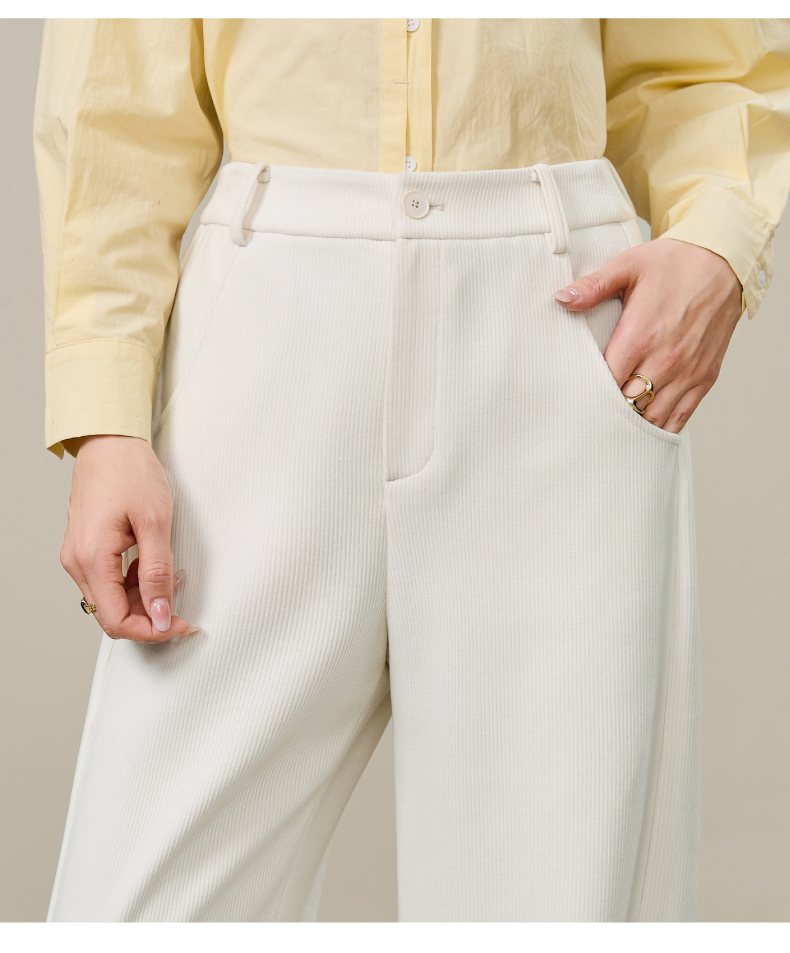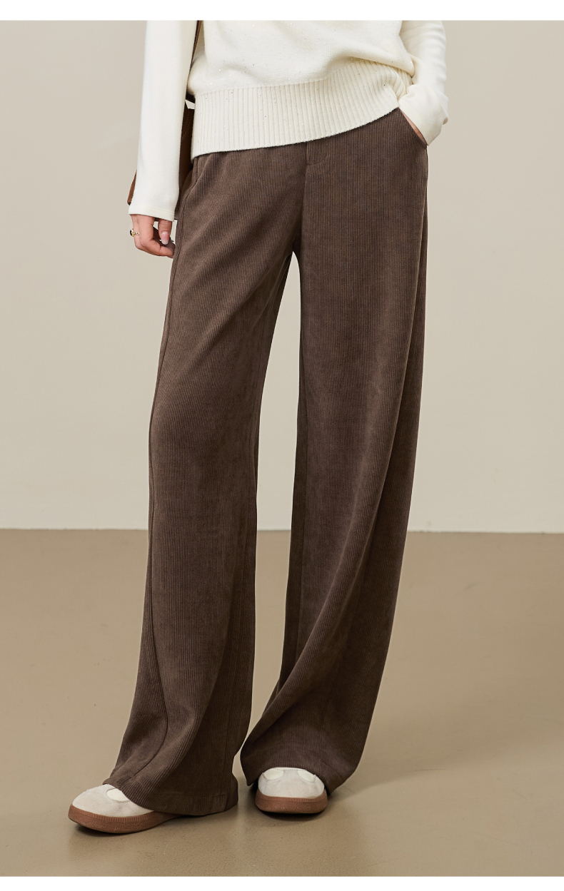 【复古-灯芯绒-香蕉裤】逸阳春款高腰显瘦直筒休闲阔腿糯米裤8114