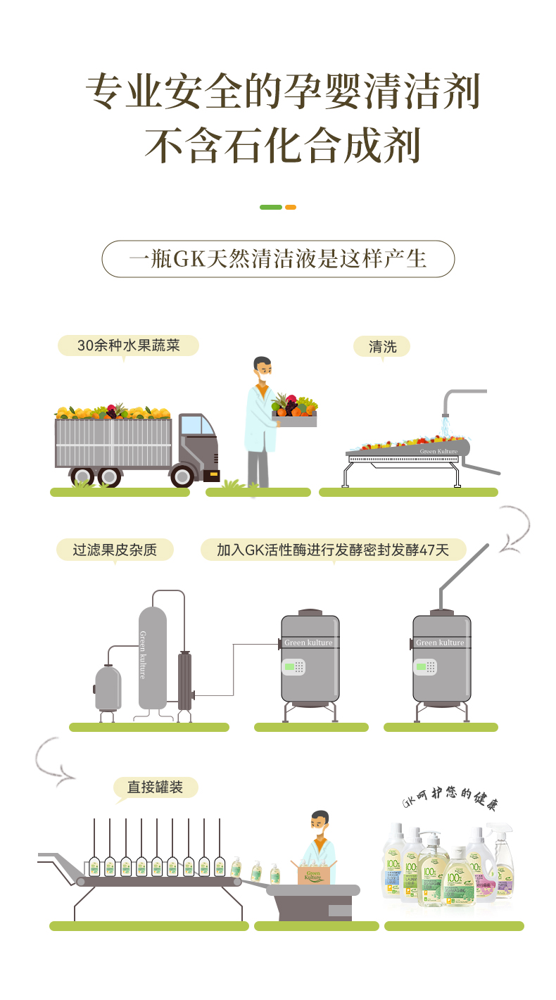 greenkulture植物公式 奶瓶果蔬清洁剂原装进口婴儿奶瓶玩具清洗剂