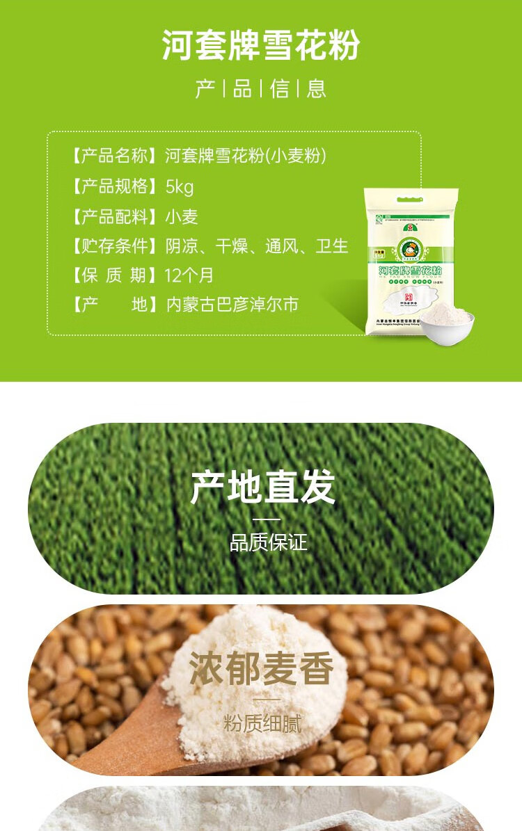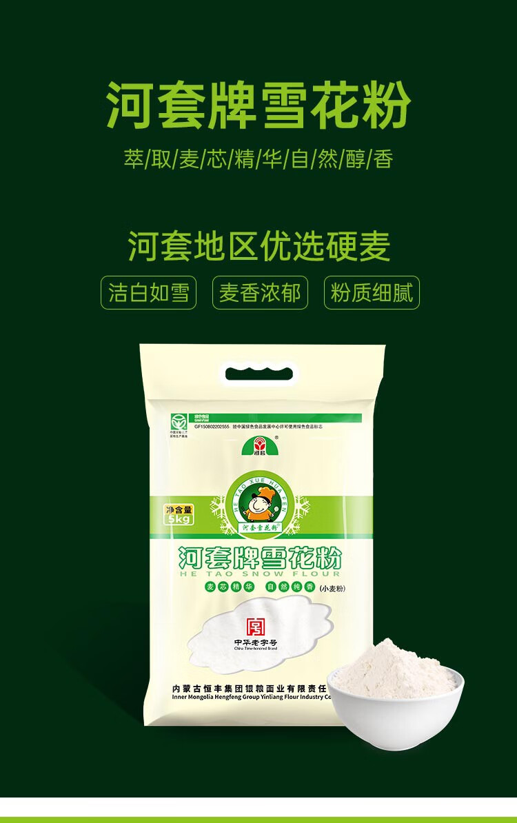 河套 雪花粉5kg 中华老字号高筋麦芯面粉小麦包子面条馒头面粉披萨粉