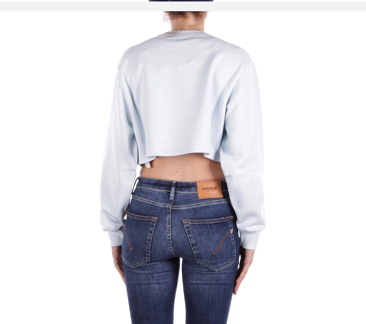 GCDS 女士字母徽标印花弹力棉质圆领长袖T恤 浅蓝色 B1EW1516UW0 75