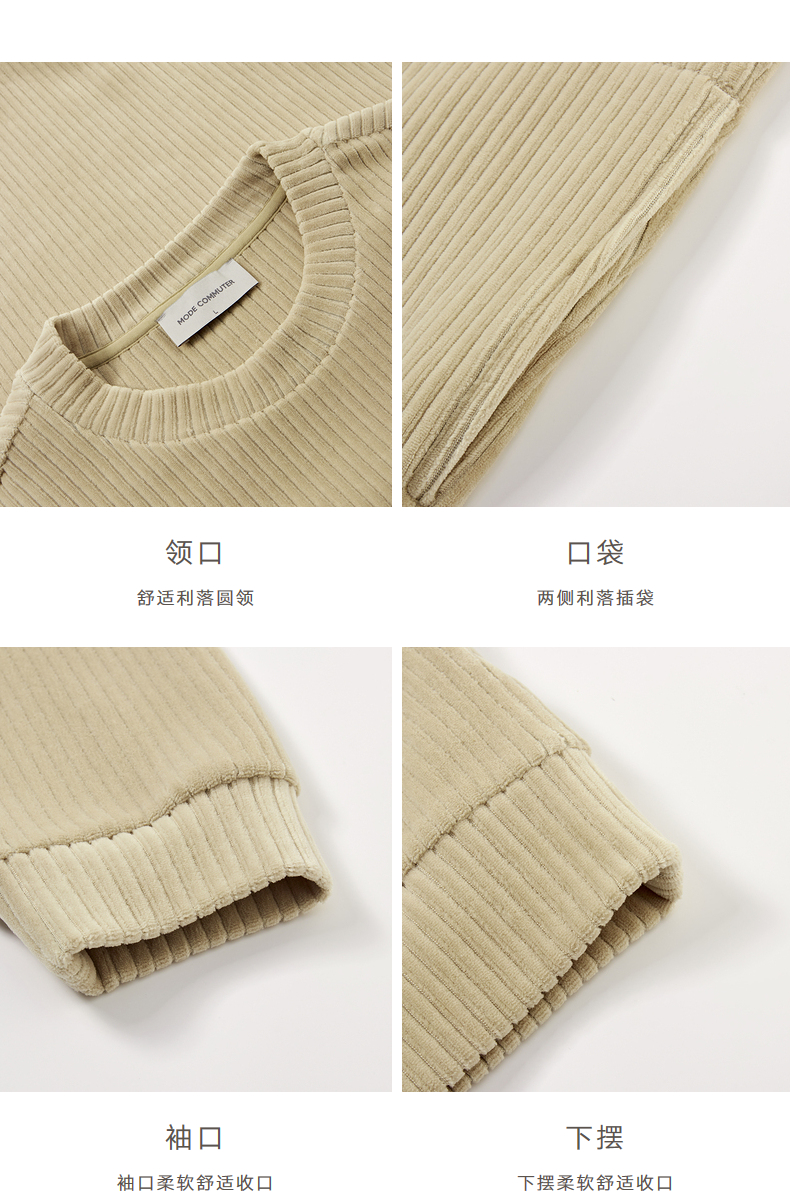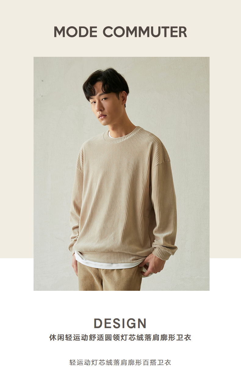 MC |MODE COMMUTER秋季灯芯绒落肩圆领卫衣男MCD131002G