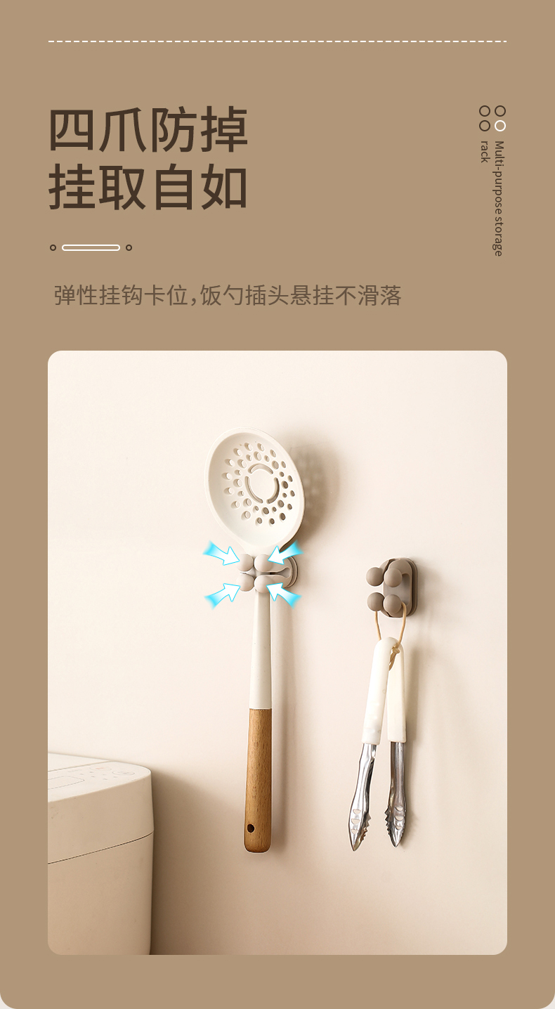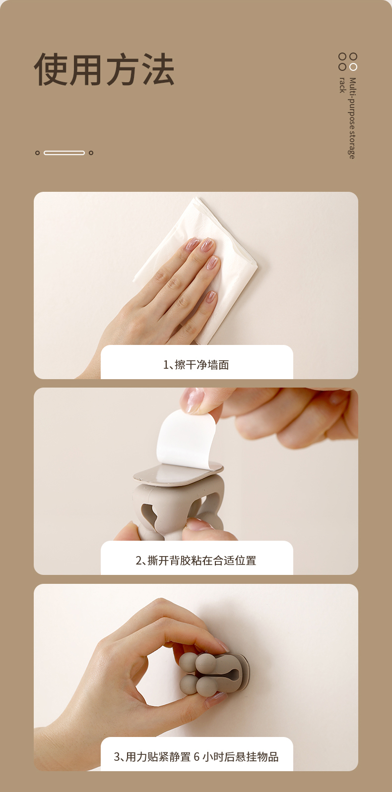 FaSoLa多用途免钉硅胶无痕挂钩多功能自粘钩墙壁厨房挂钩办公室通用挂钩