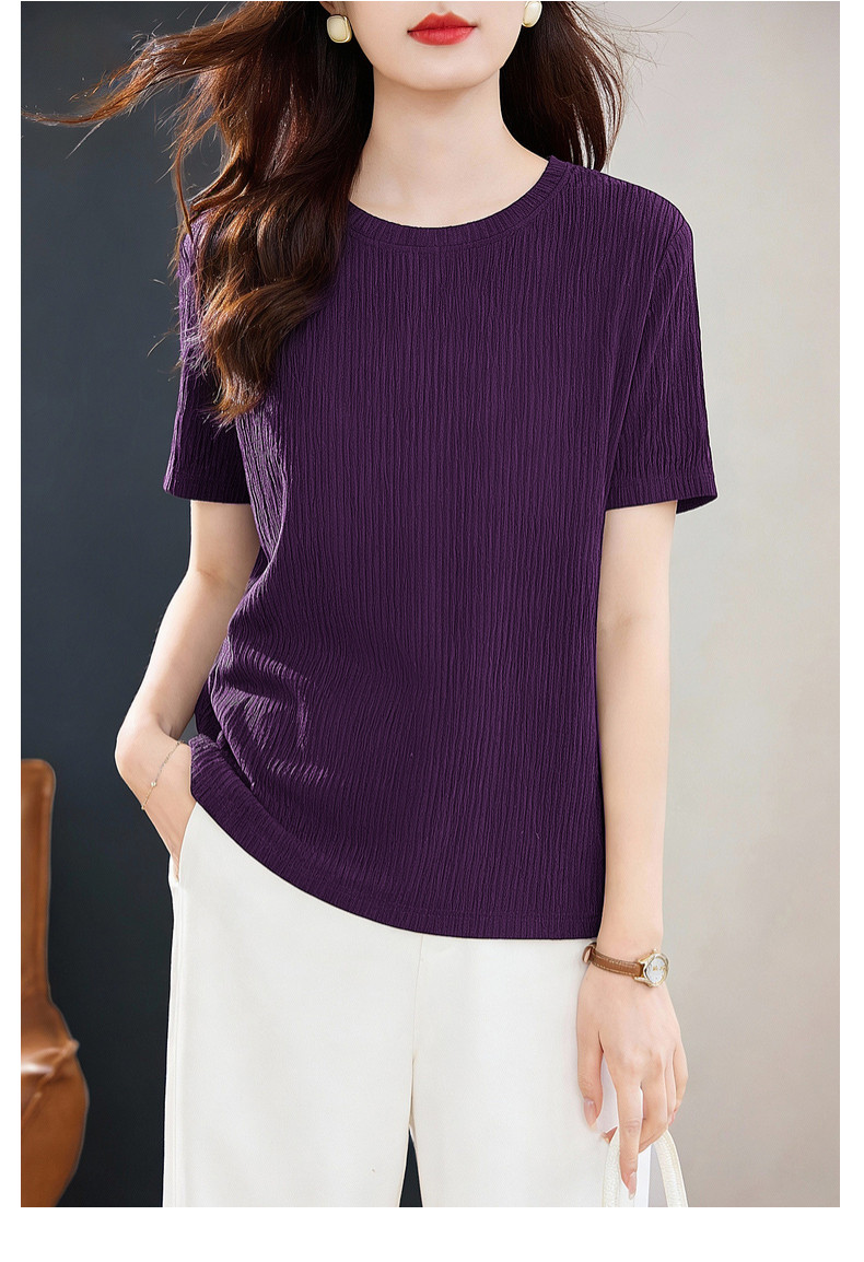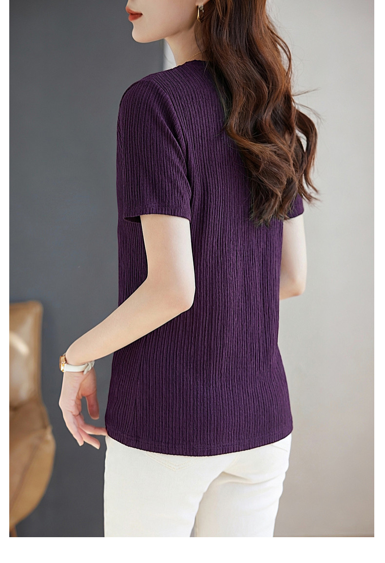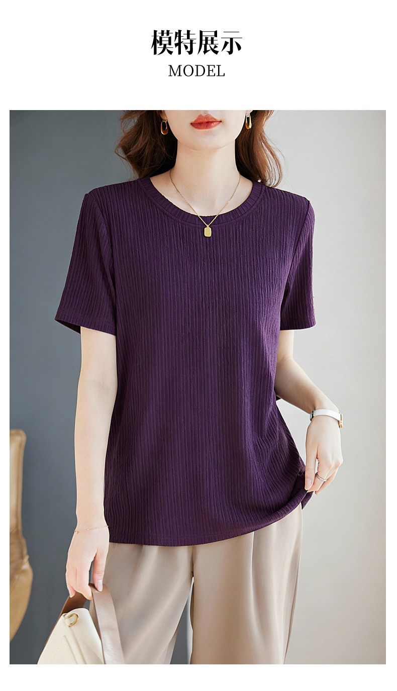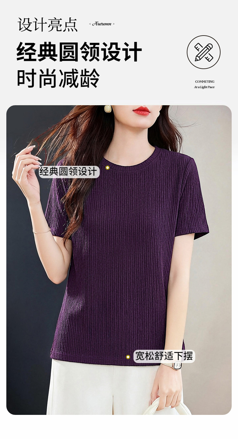 紫色条纹短袖t恤女新款夏季时尚洋气女装休闲大码体恤衫半袖上衣