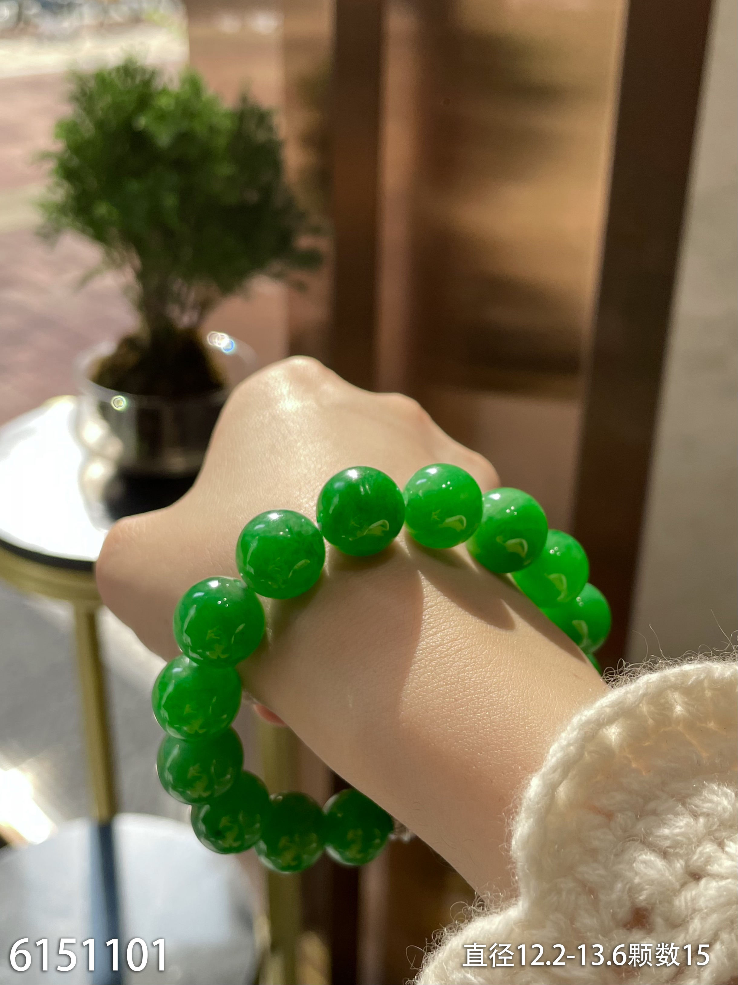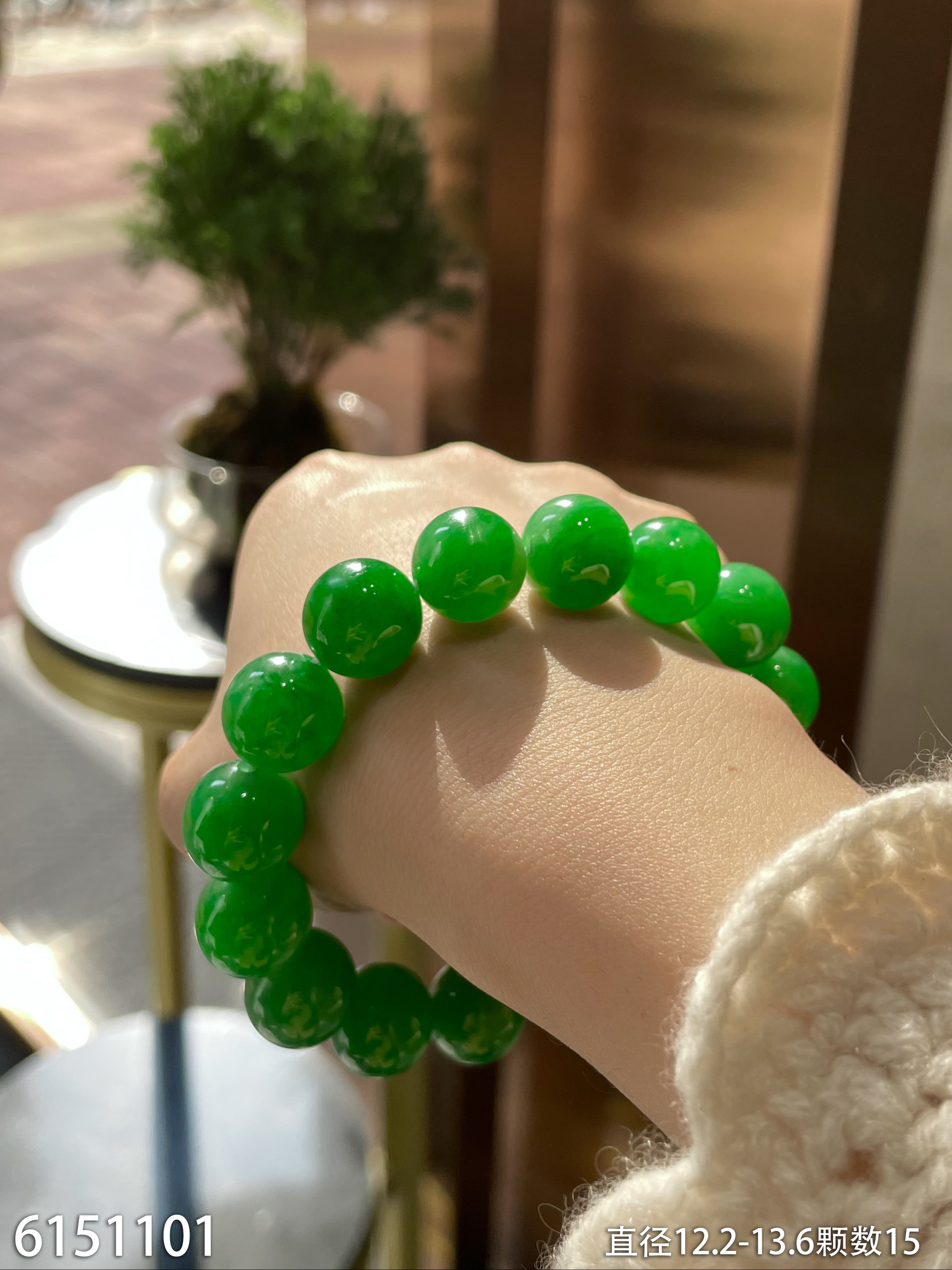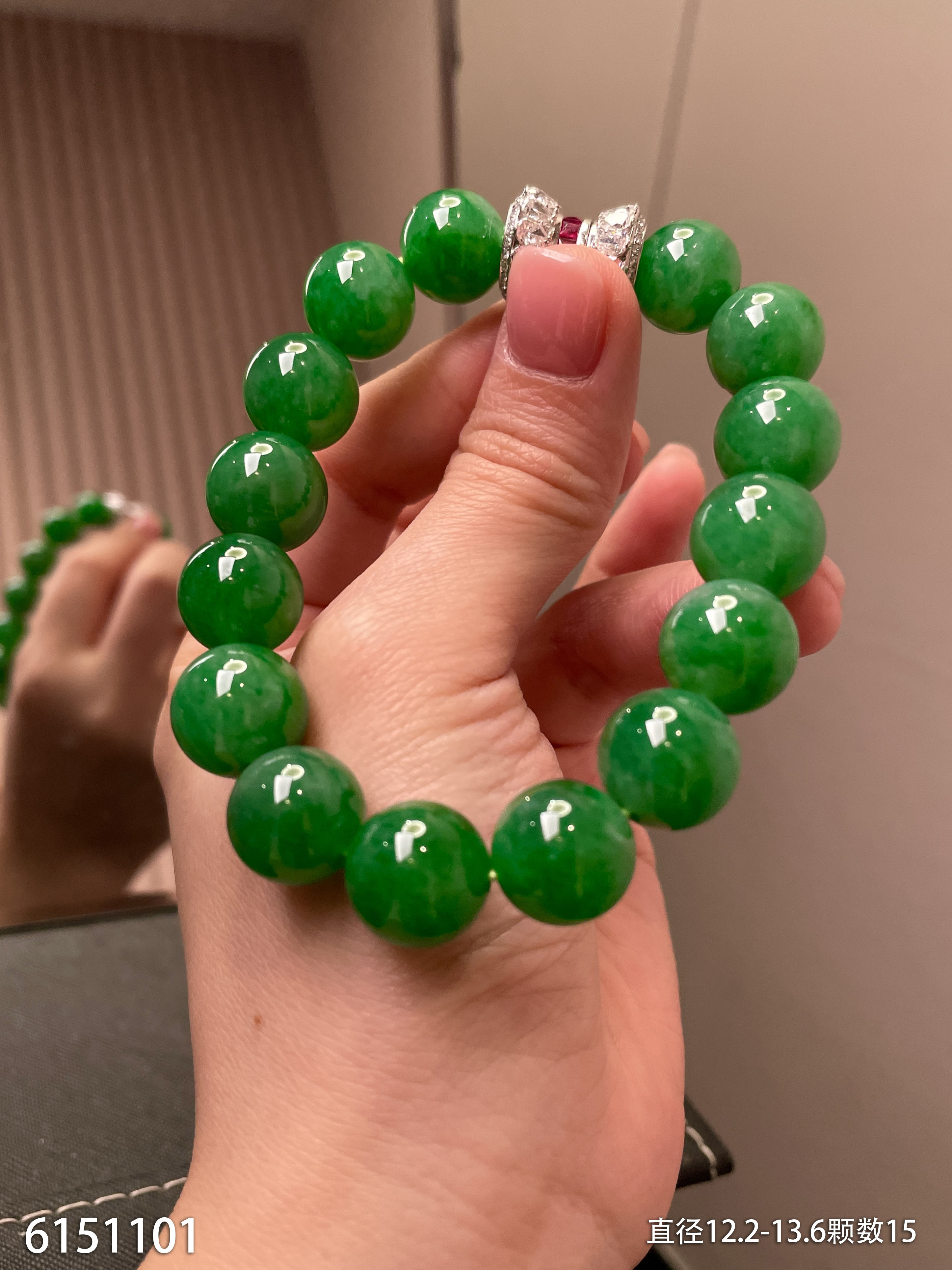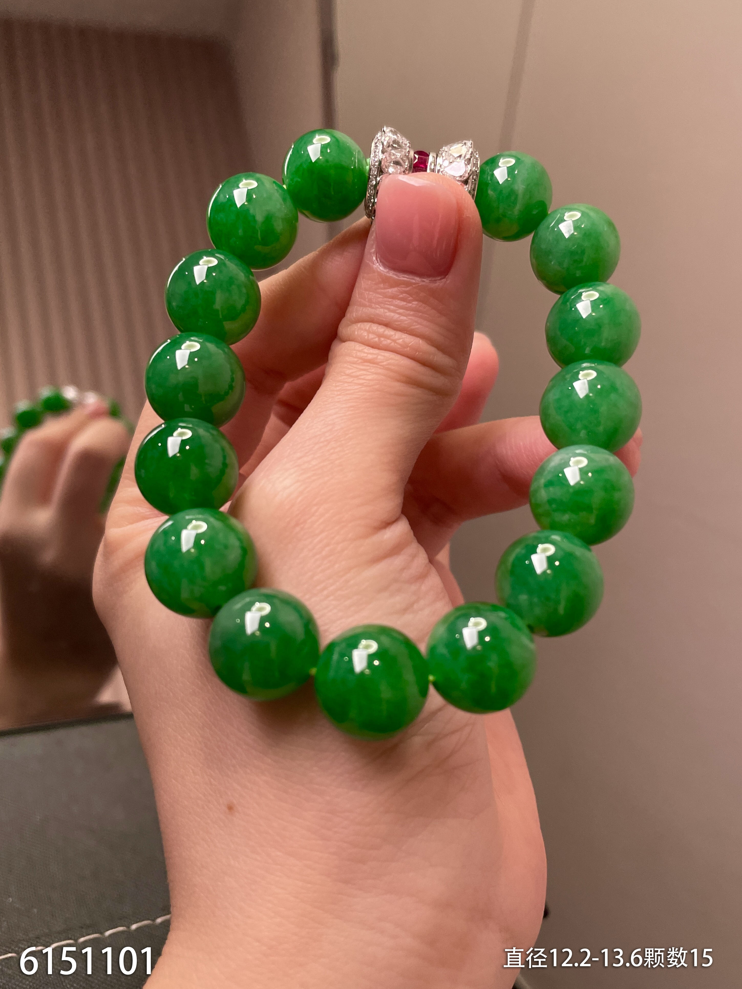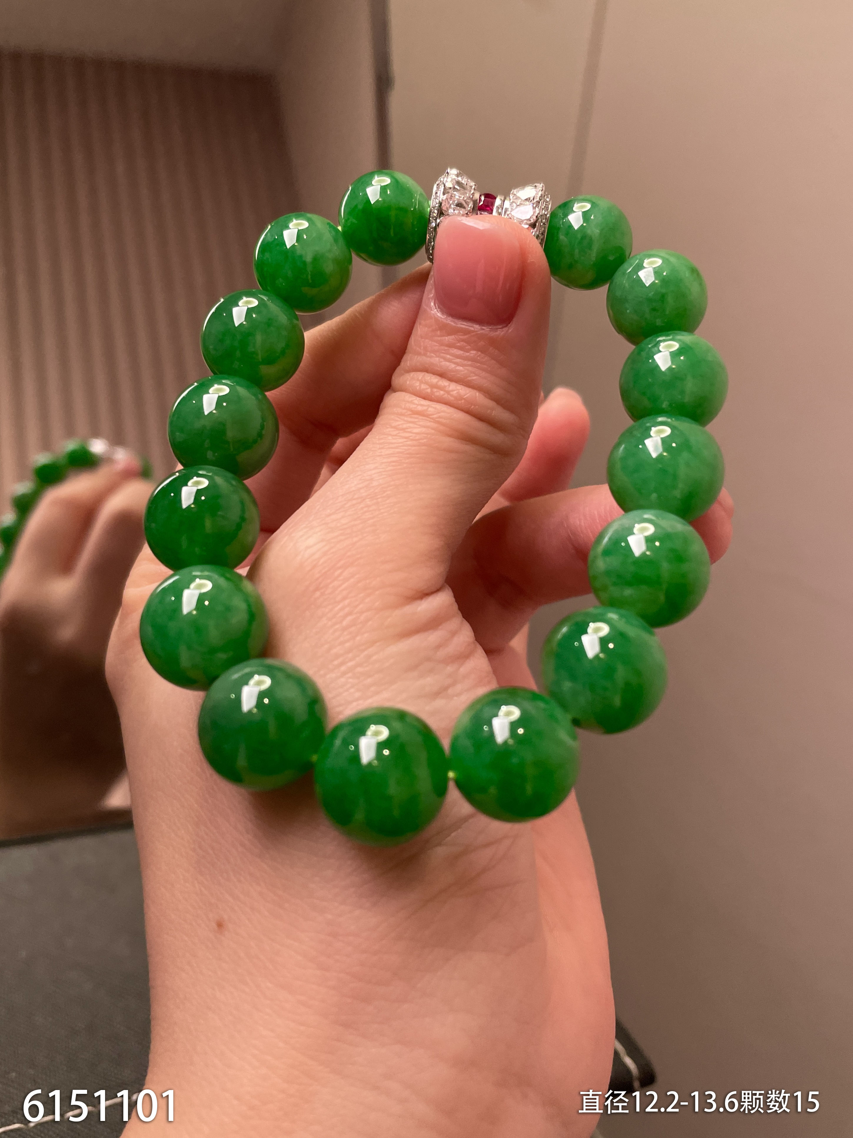 28-1063005,冰种艳绿珠链。具体价格微信咨询