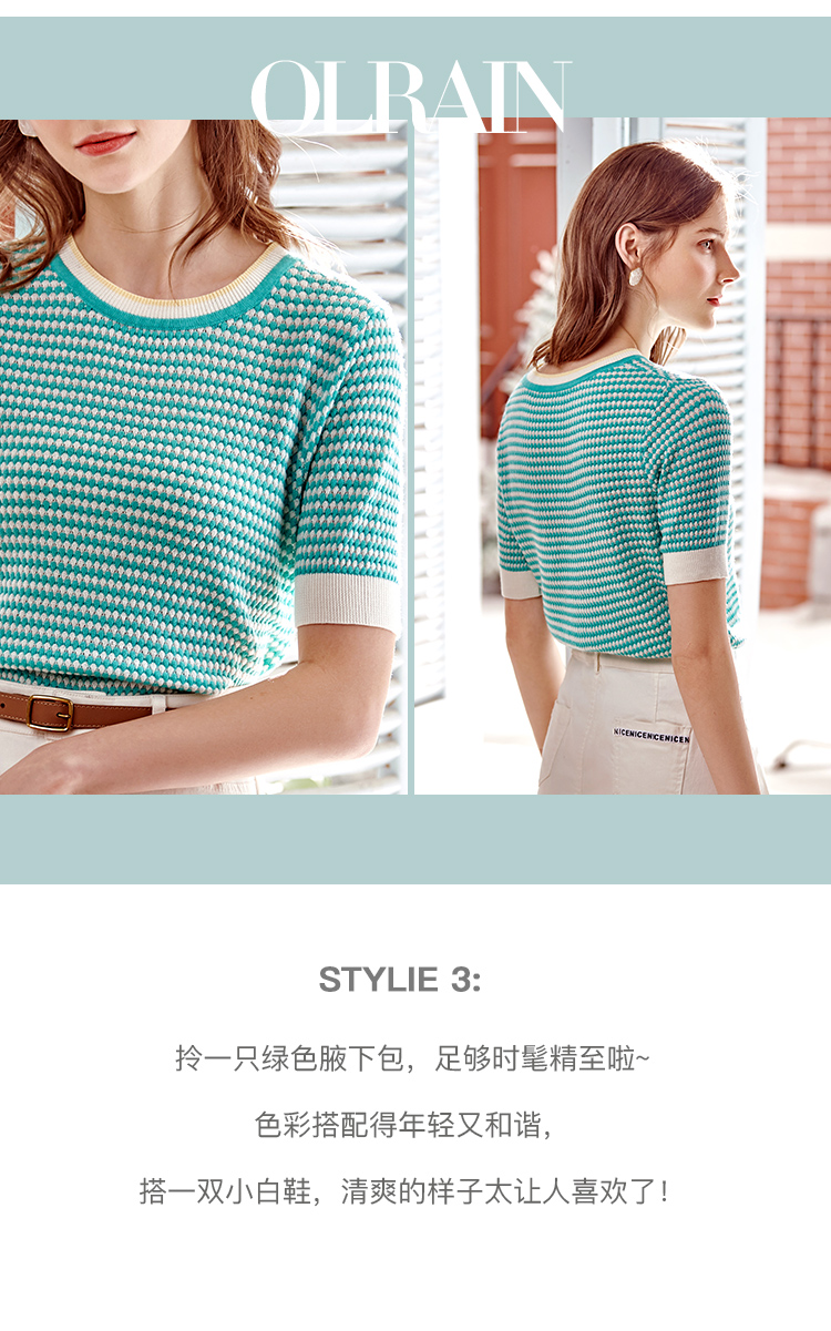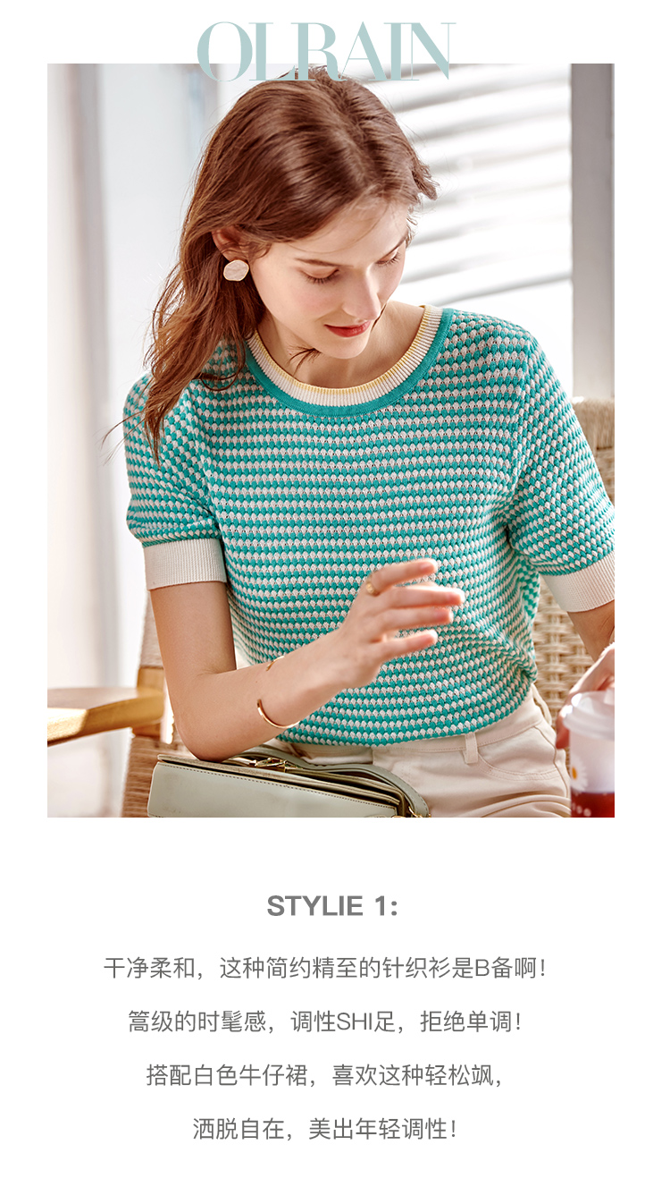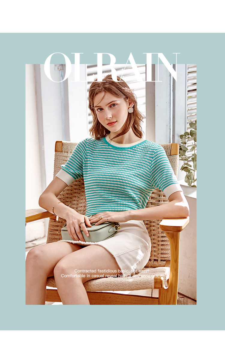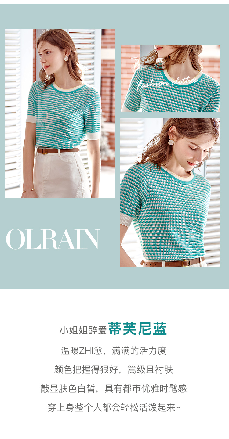 欧芮儿圆领毛针织衫女2021春夏新款套头时尚气质优雅年轻简约上衣