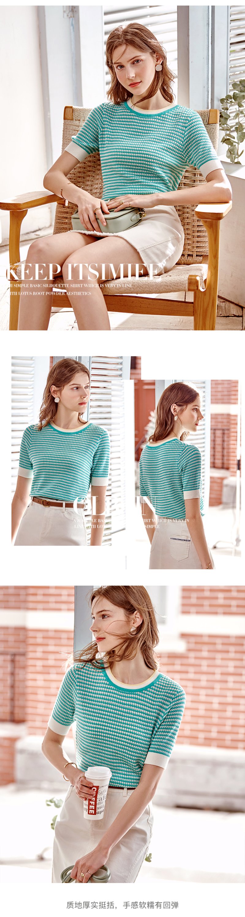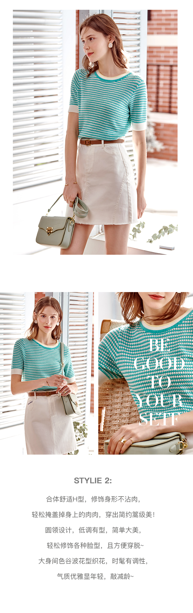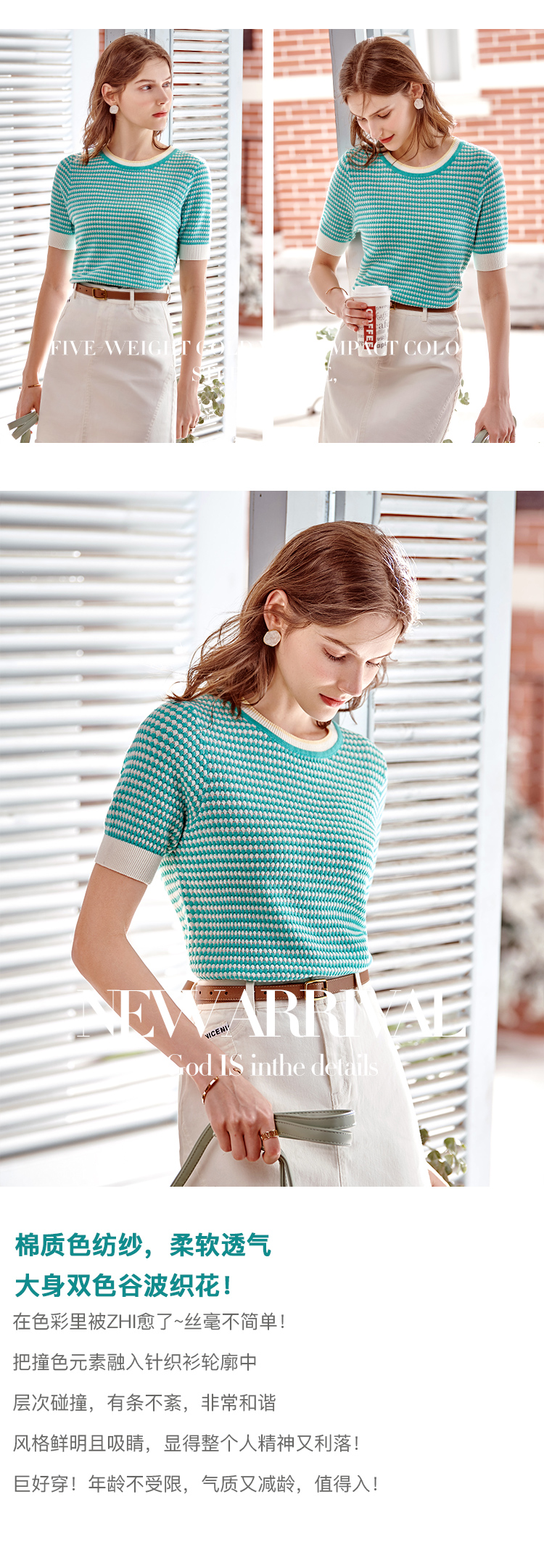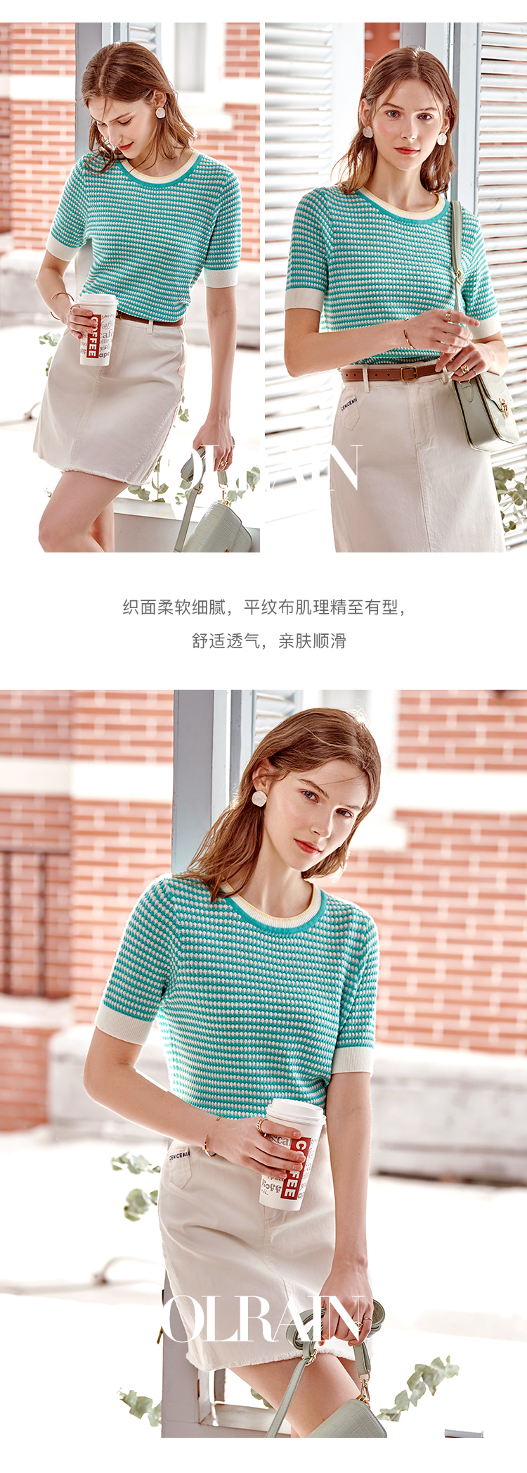 欧芮儿圆领毛针织衫女2021春夏新款套头时尚气质优雅年轻简约上衣