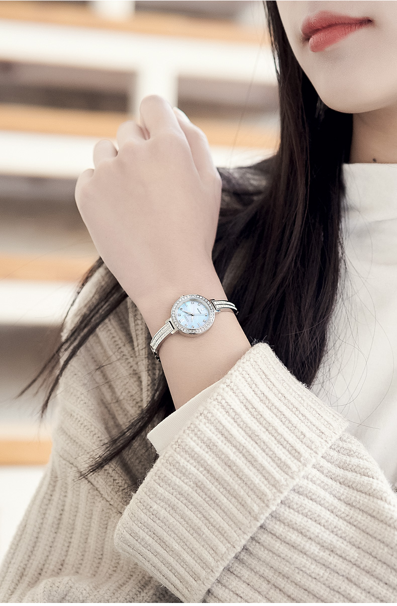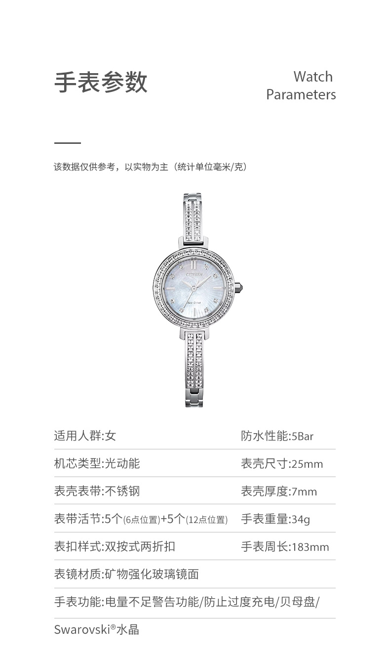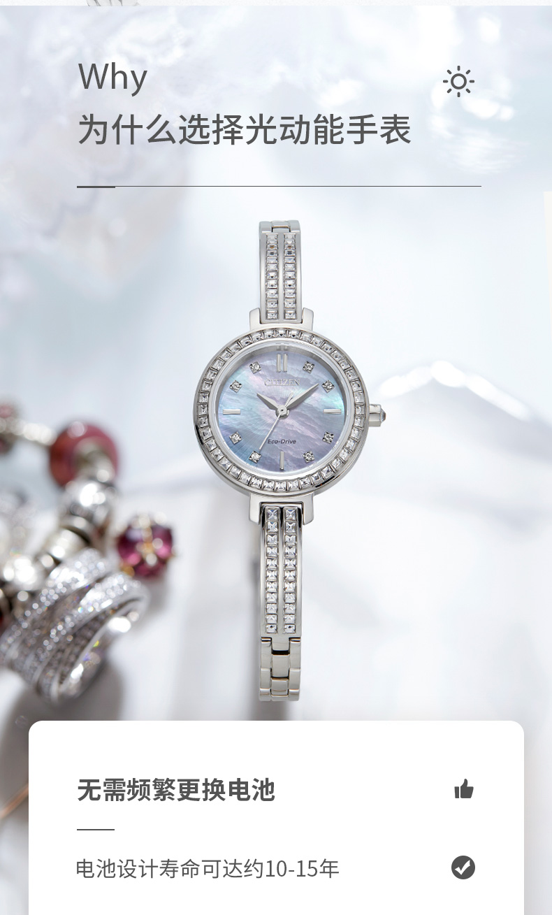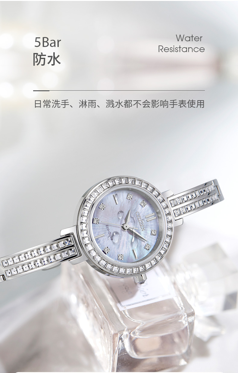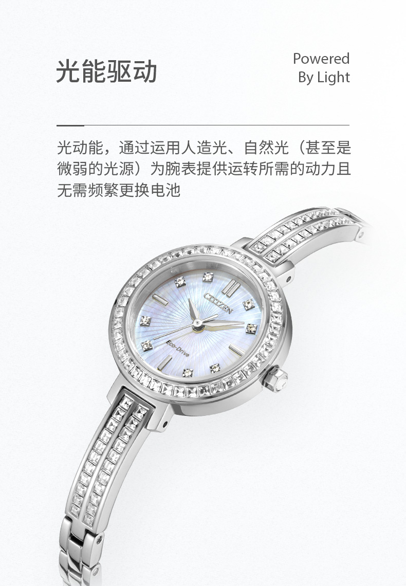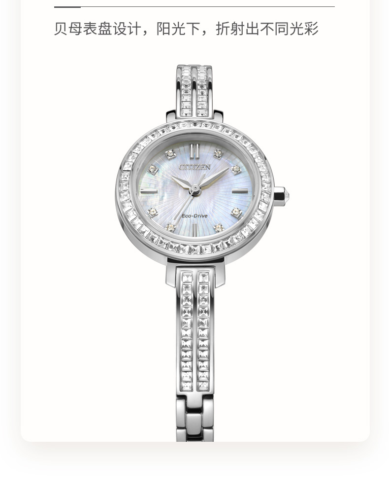 西铁城日本官方正品复古时尚璀璨水晶贝母表盘光动能女表EM0860-51D