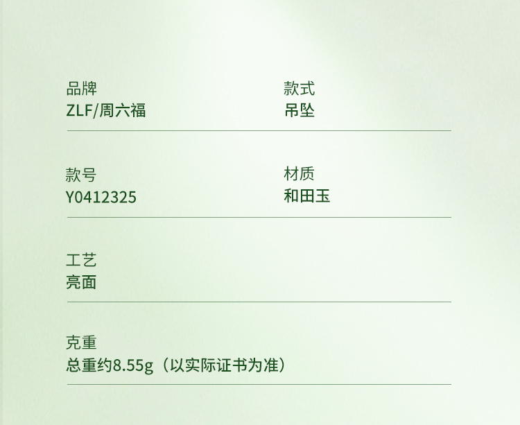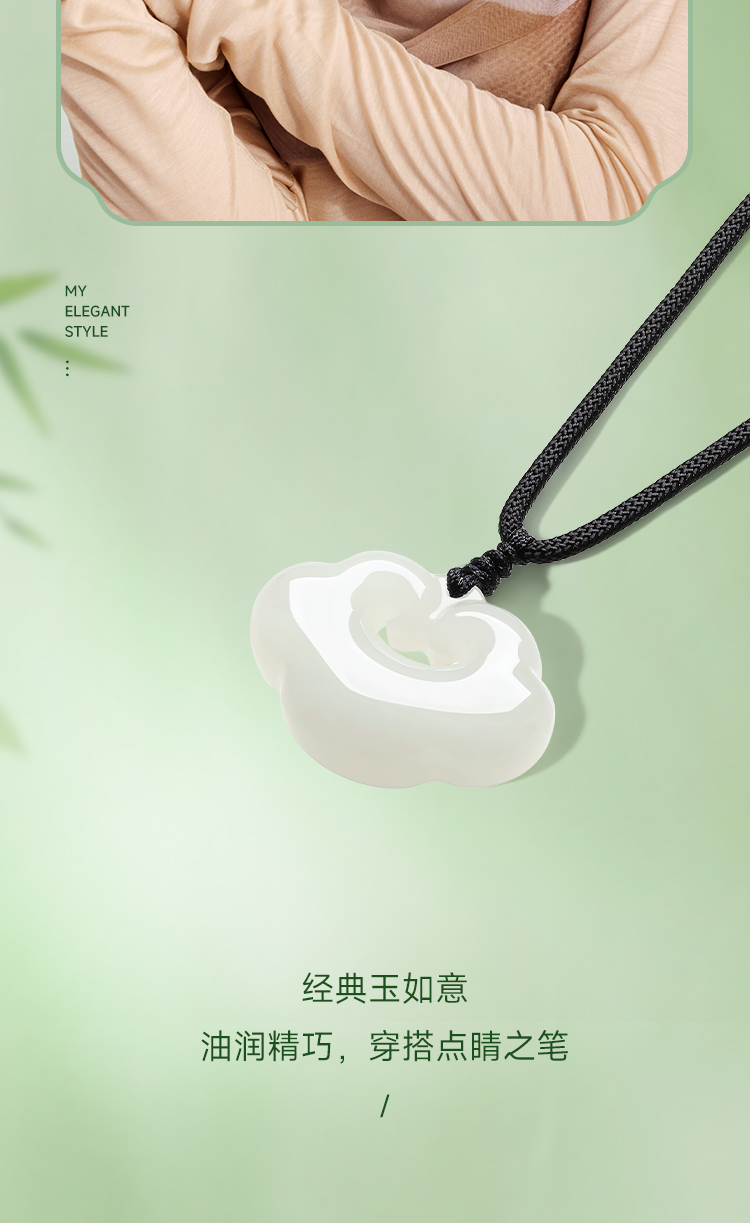 周六福珠宝玉石玉如意吊坠男女和田玉白玉玉坠挂件送人礼物