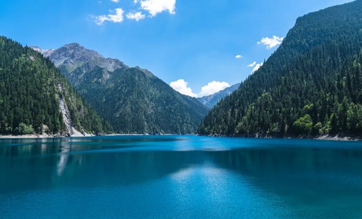 熊猫海雪融冰消,继续用蓝色的水与春树们一起演绎灵动水墨意蕴。