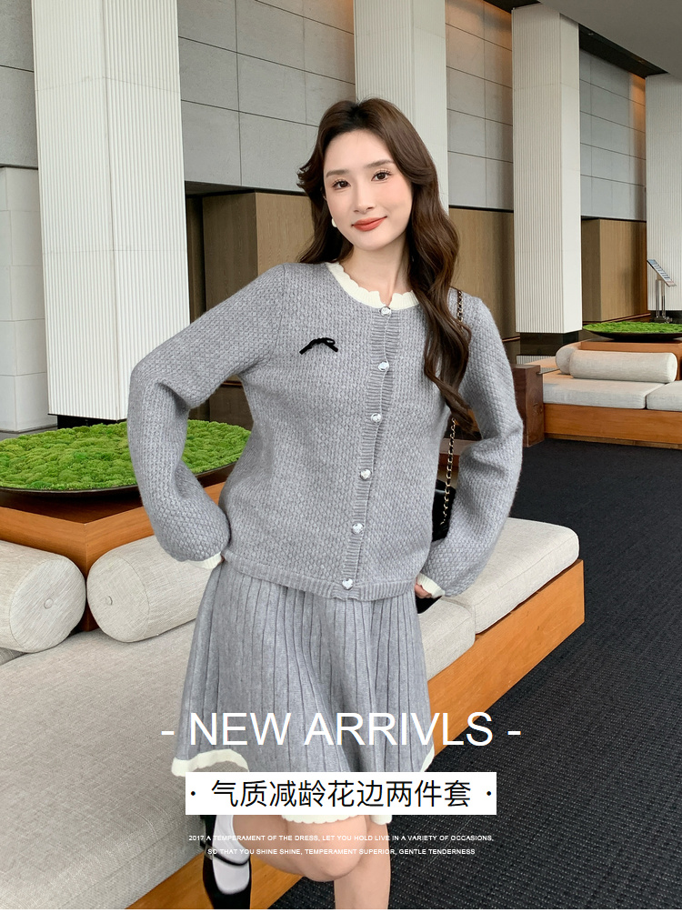 奢姿2025春季新款大码女装针织拼接套装胖妹妹减龄花边两件套9843969076