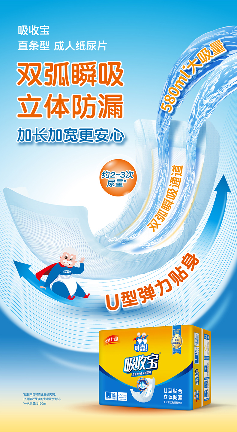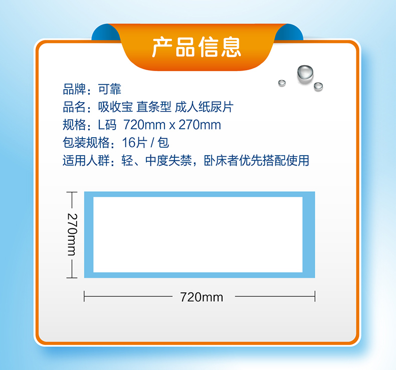 可靠吸收宝成人纸尿片720*270mm男女老人一次性尿片整箱160片