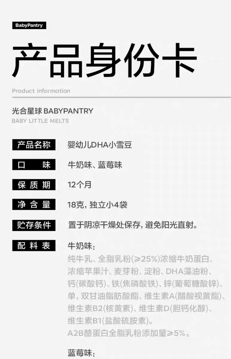 光合星球婴幼儿DHA小雪豆(蓝莓味)/(牛奶味)18克/盒/BBC-808674/808667