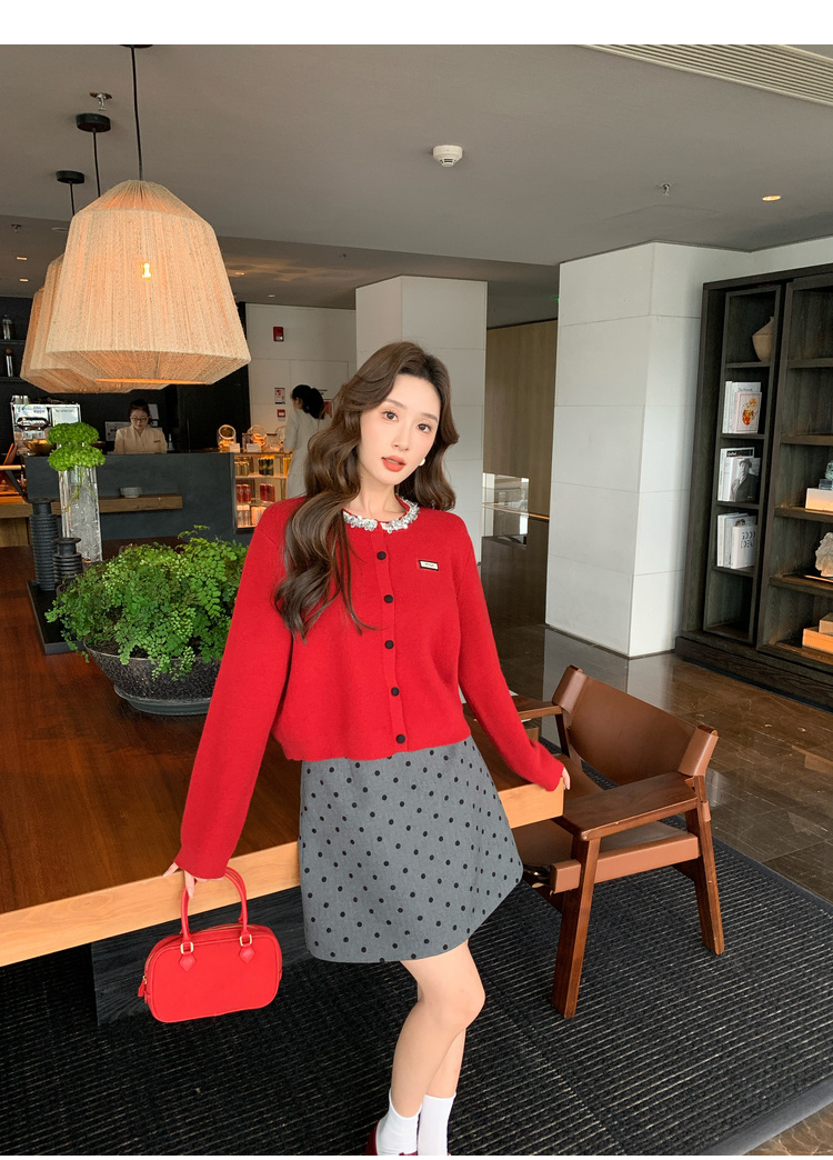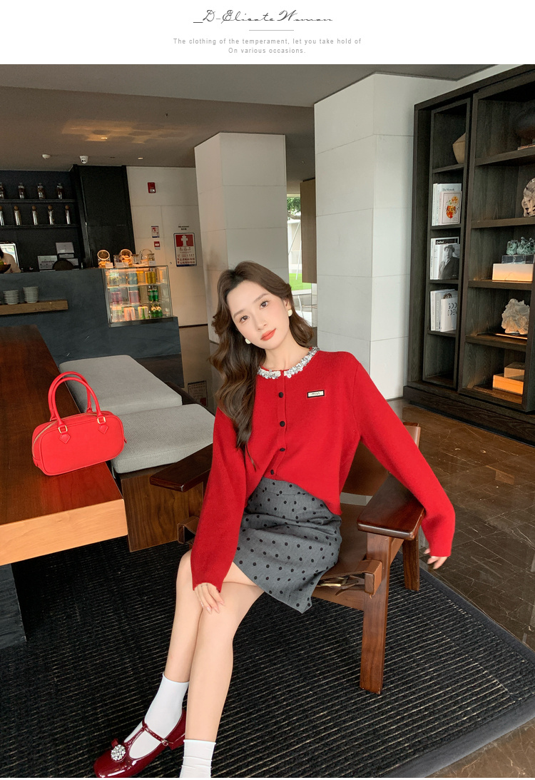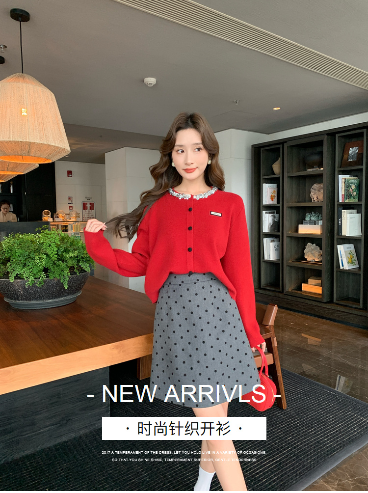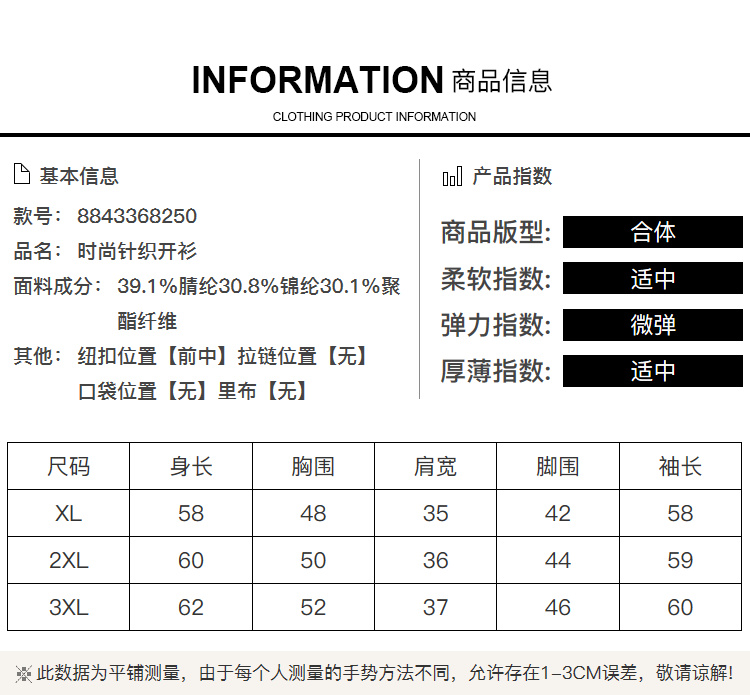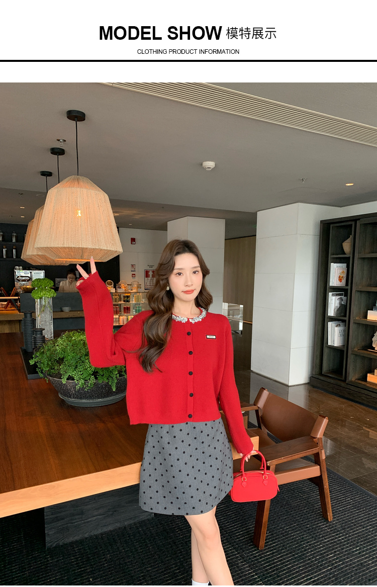 奢姿大码女装2024秋季钻饰设计针织开衫胖妹妹时尚简约百搭上衣8843368250