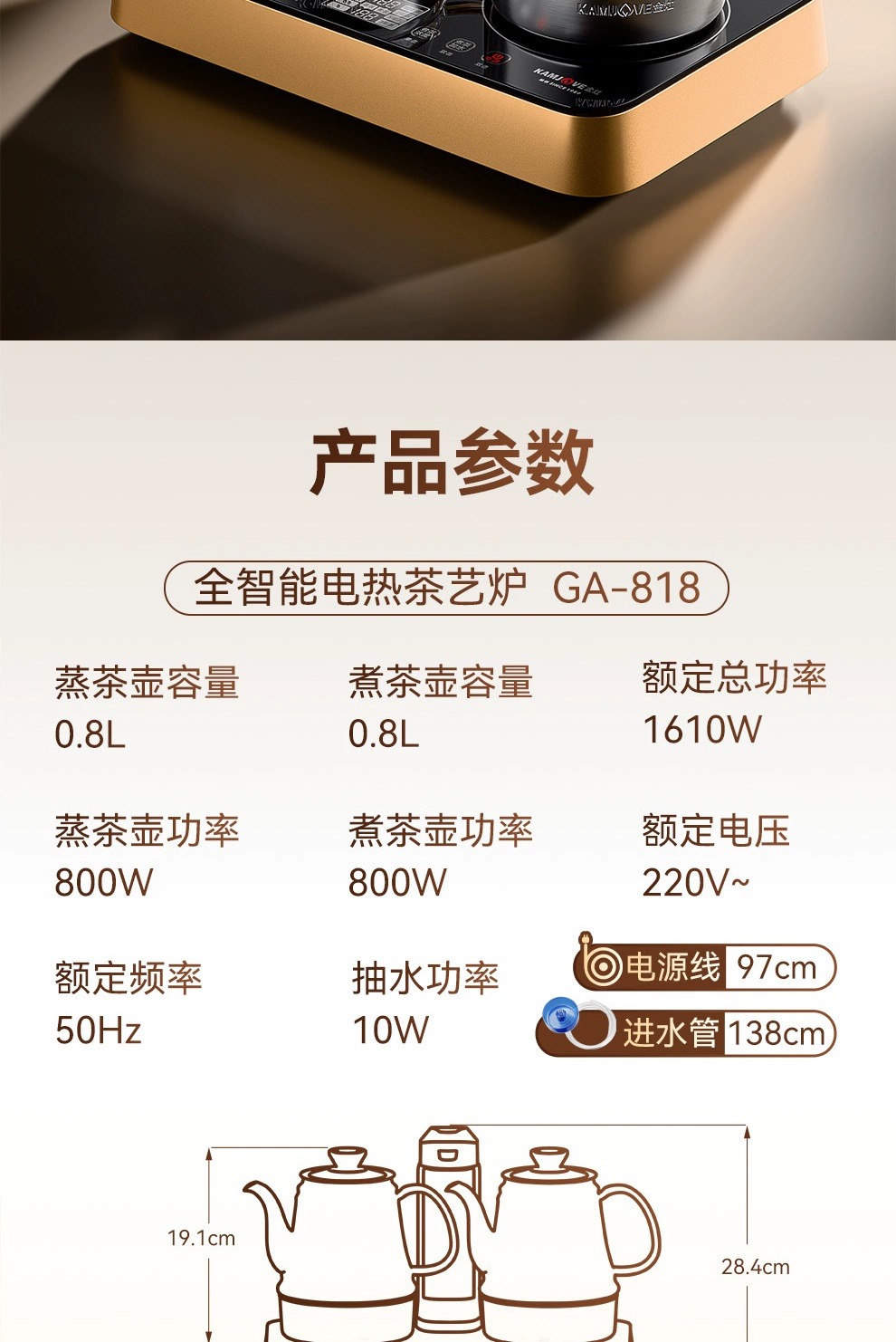 金灶GA-818喷淋式煮茶器新款自动上水烧水壶蒸汽煮茶壶家用电茶炉