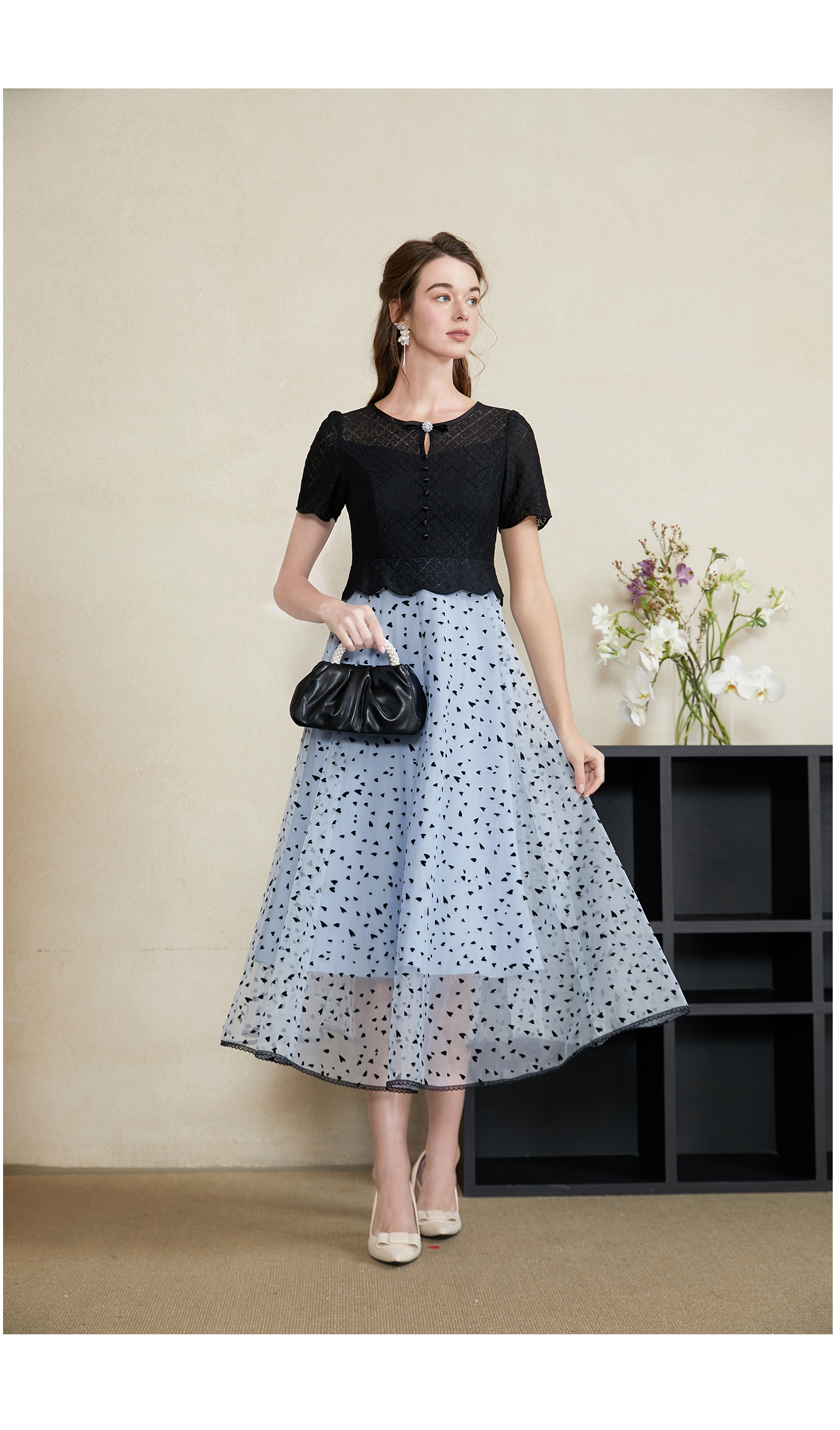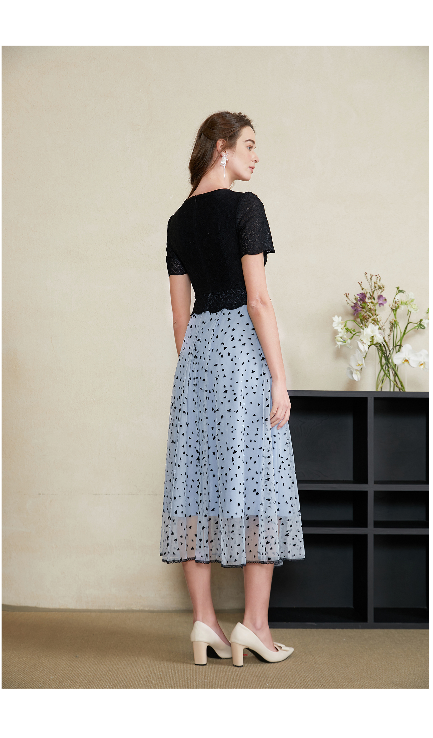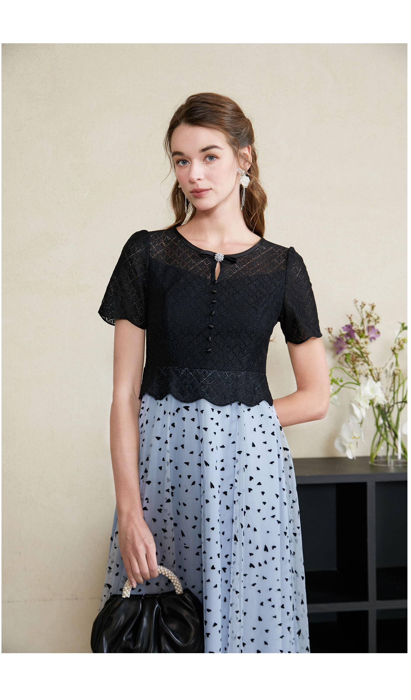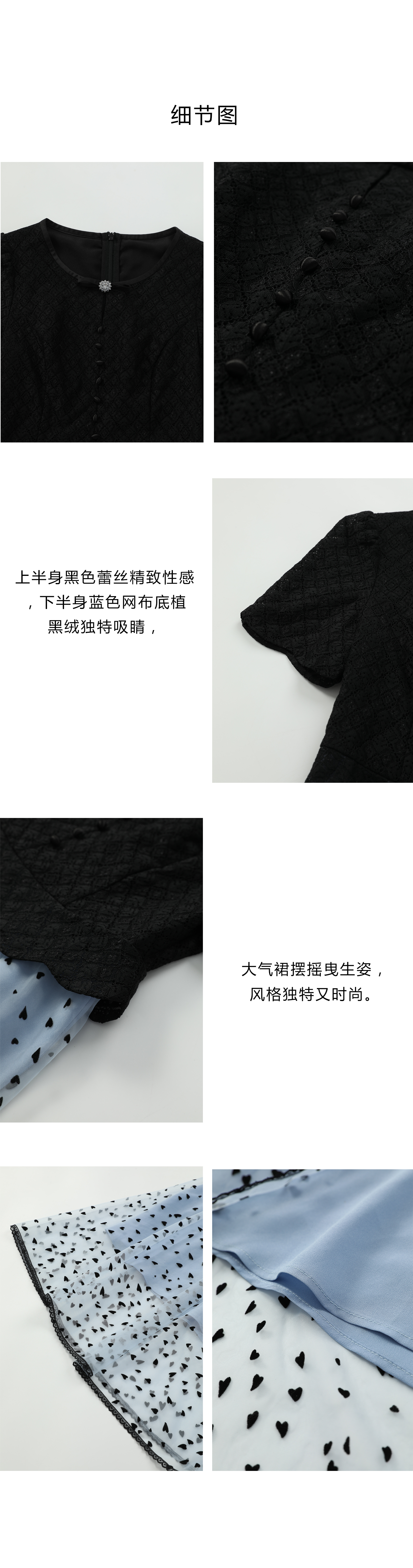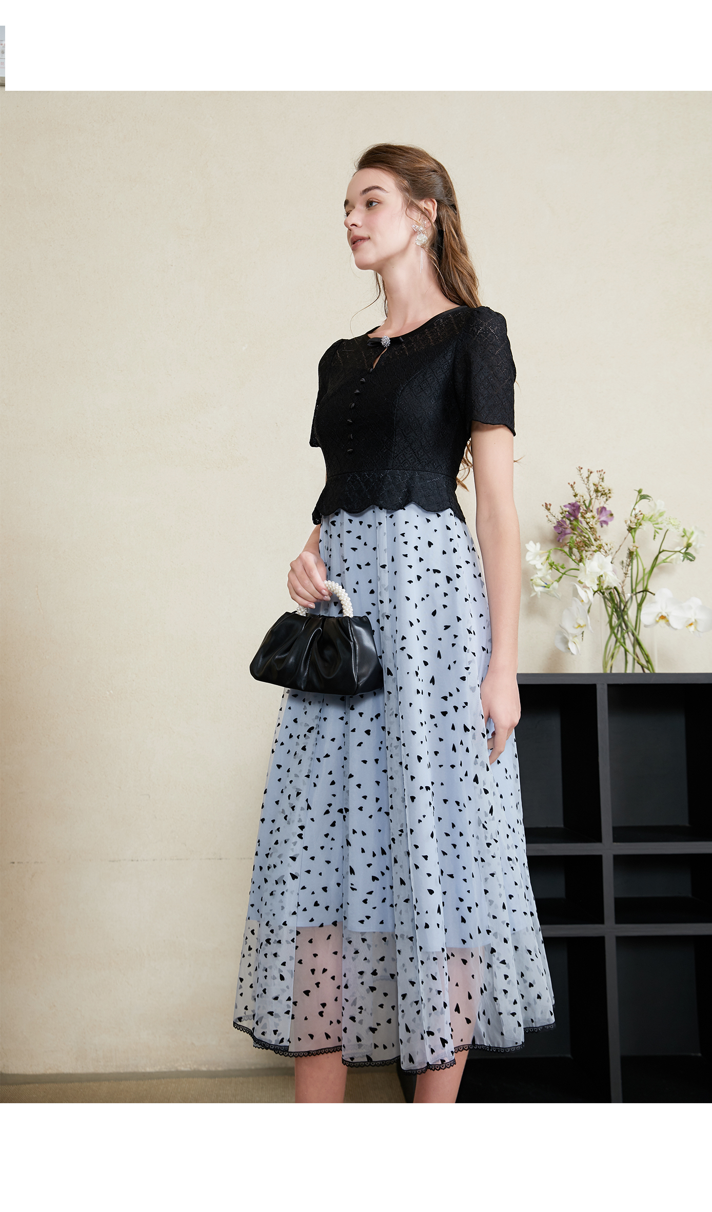 司歌假两件拼接连衣裙蕾丝波点复古优雅A911131X