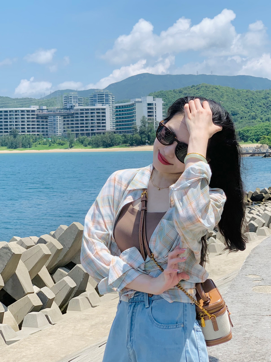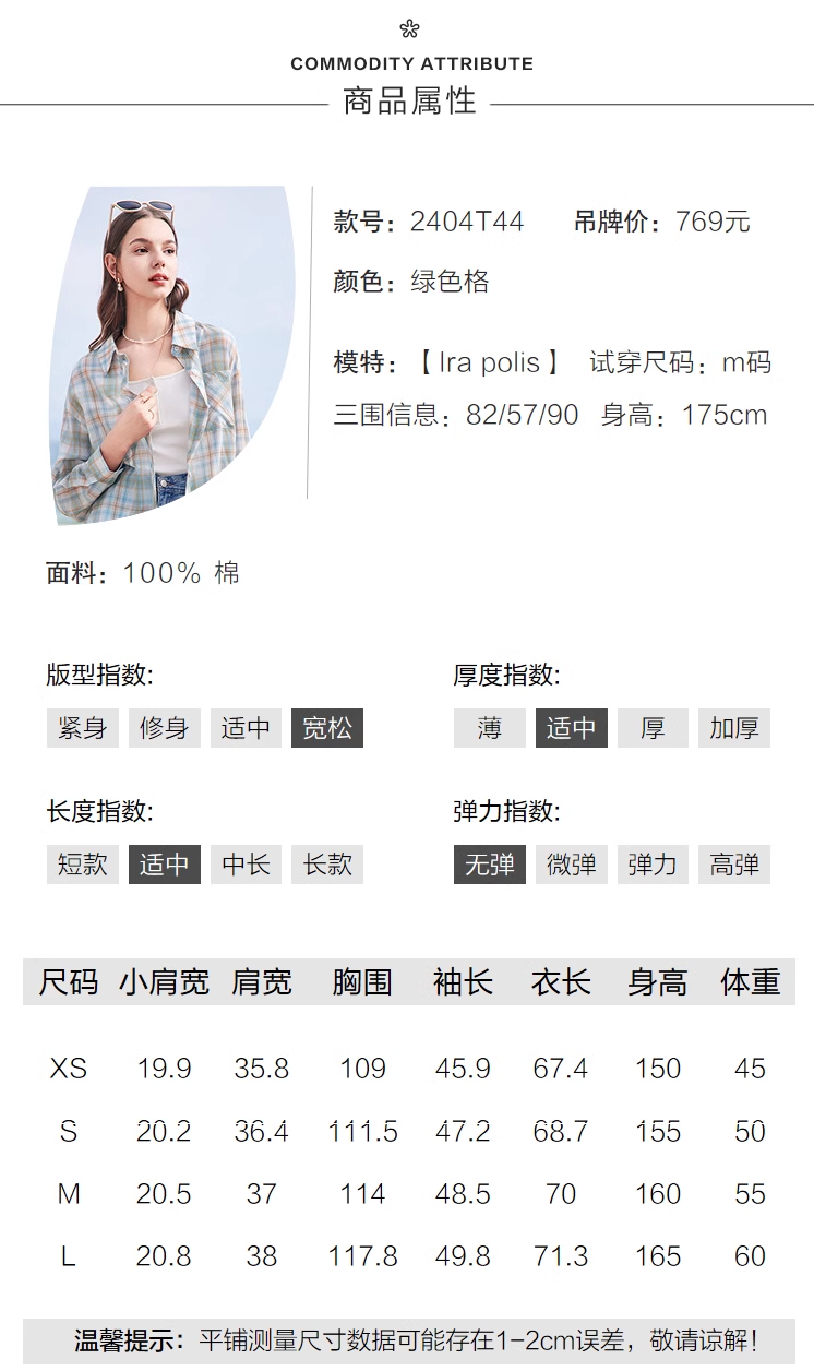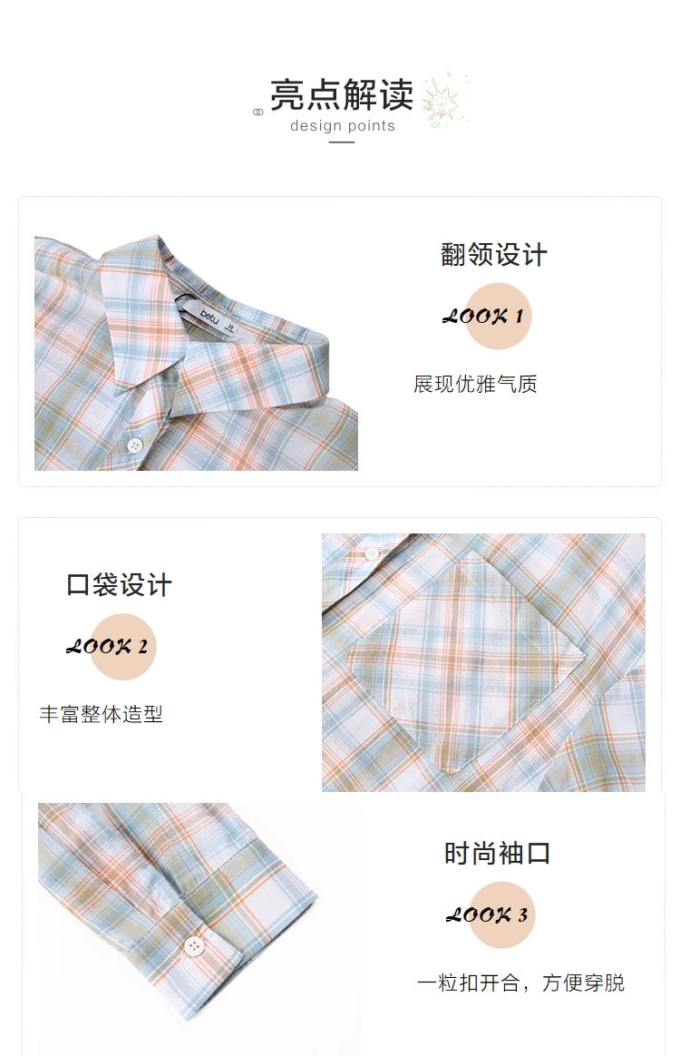 【百图lulu】【清凉格子】绿 咖格子 长袖衬衫 轻薄防晒衫