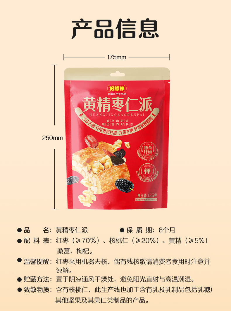 【好想你】126g黄精枣仁派红枣桑葚枸杞去皮夹心派休闲小零食下午茶