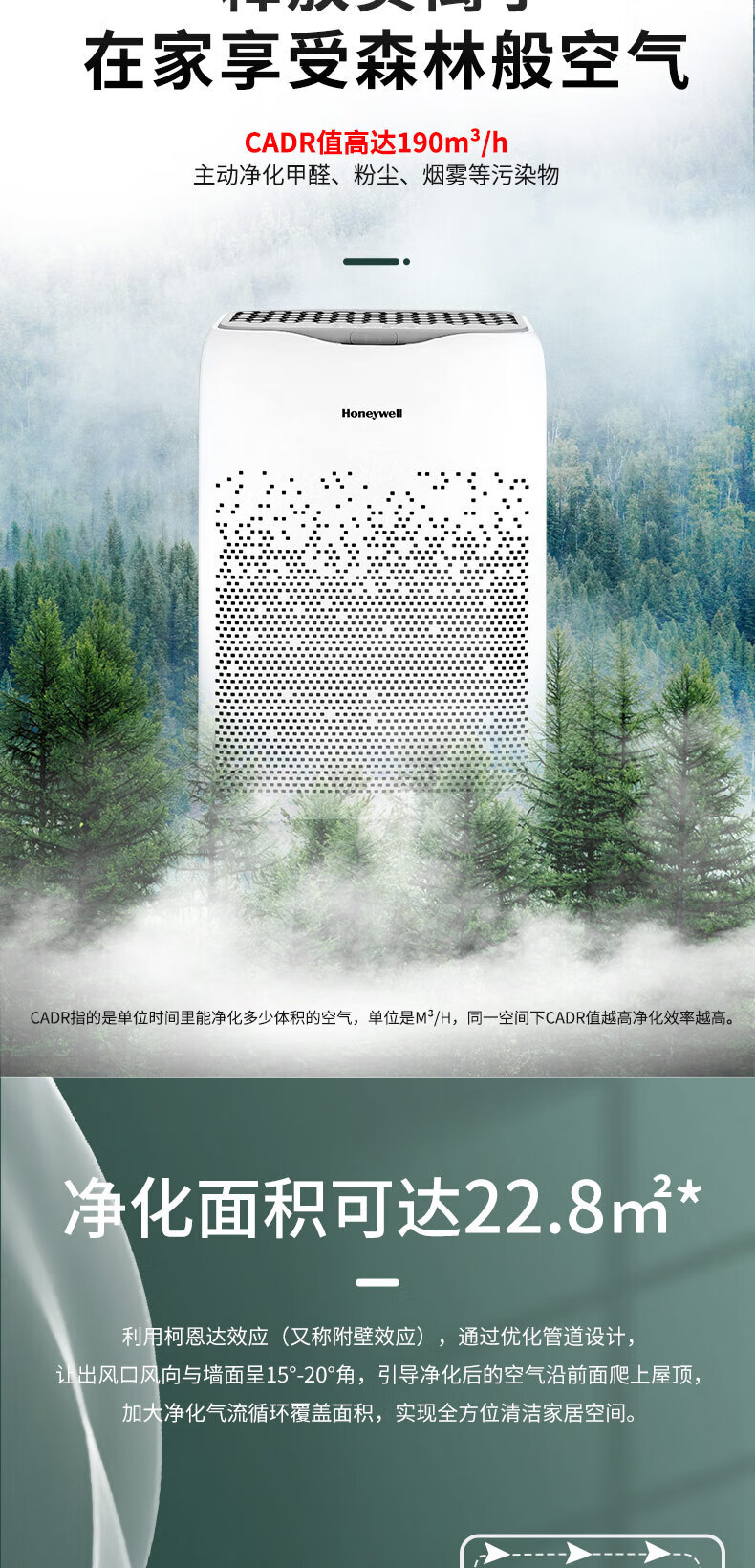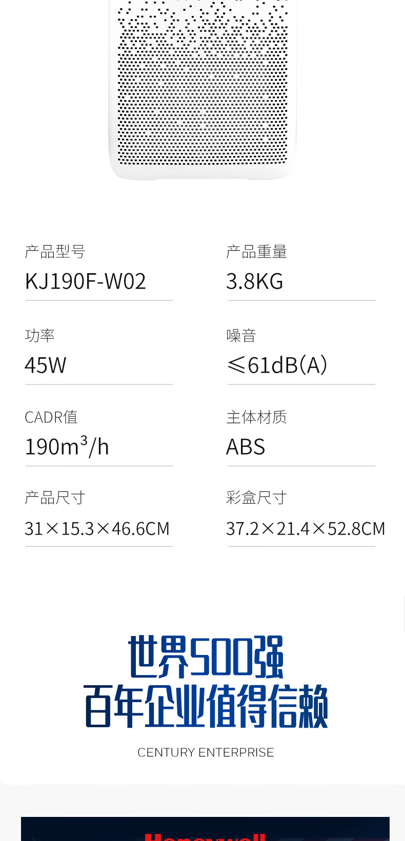 霍尼韦尔(Honeywell)空气净化器 KJ190F-W02 净化器 家用办公除甲醛除异味净化器