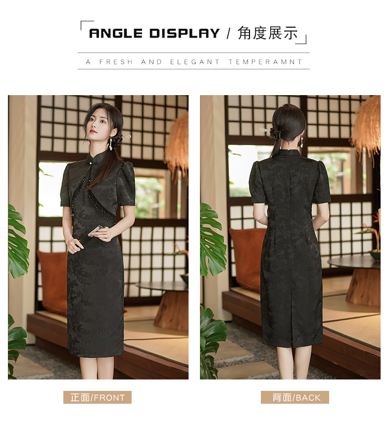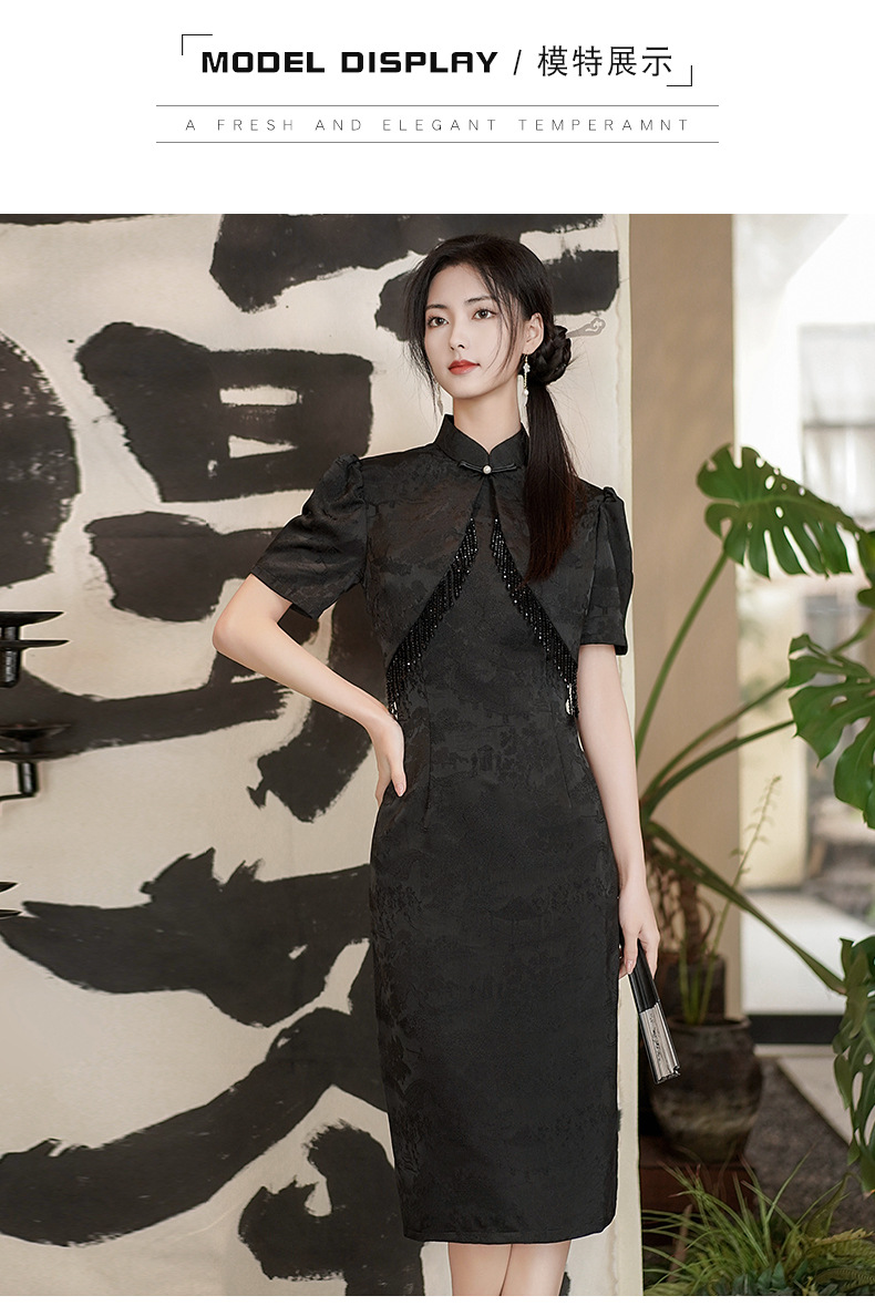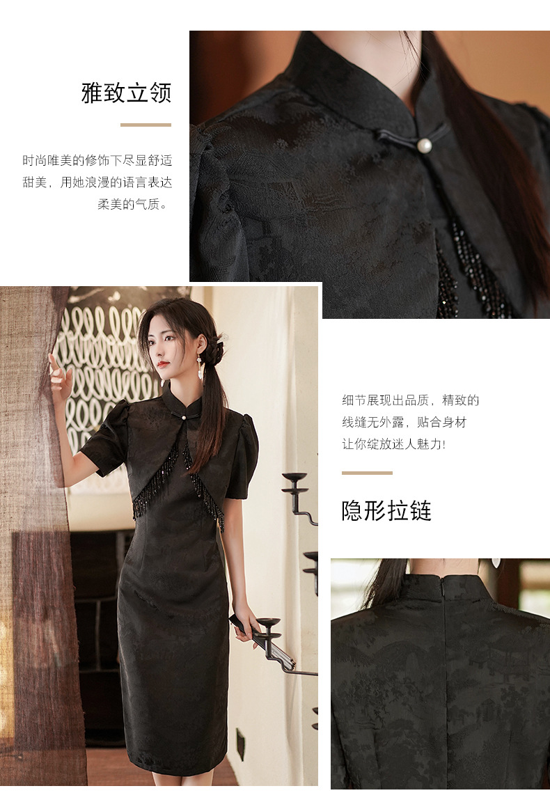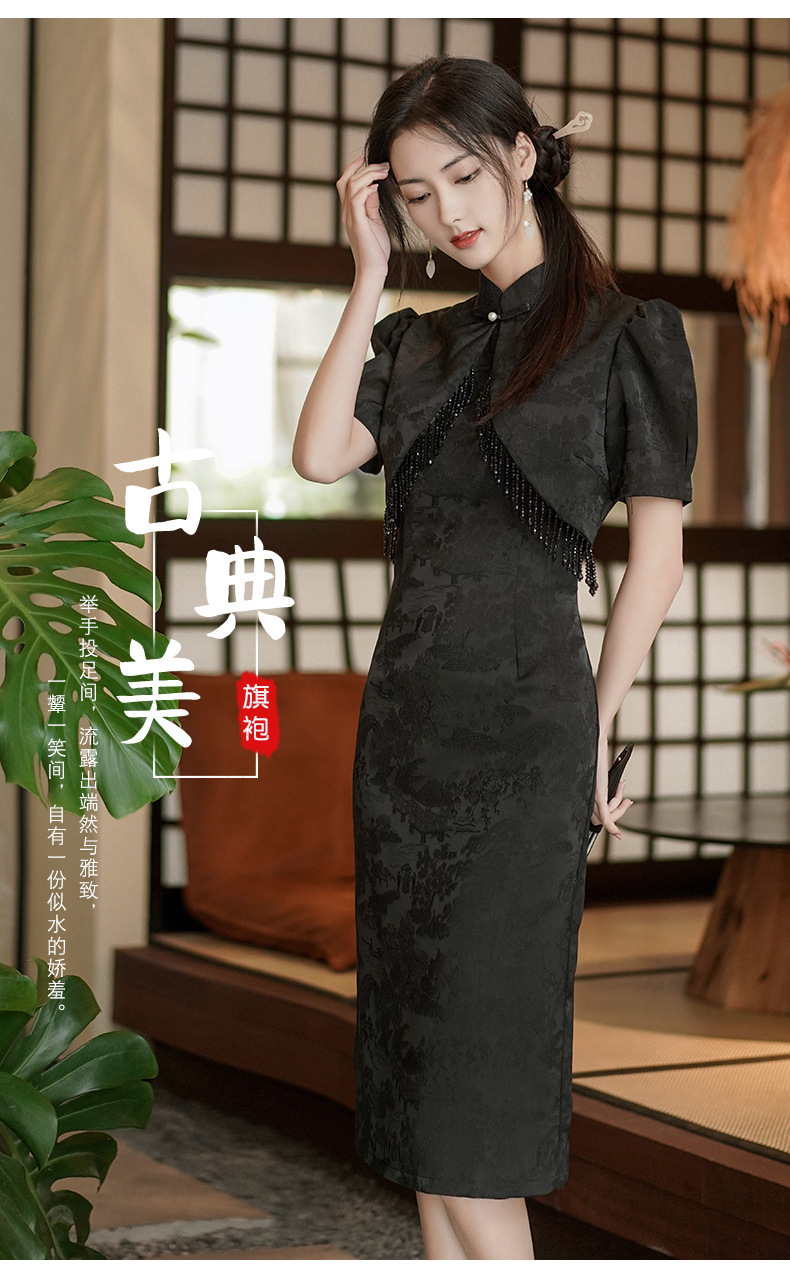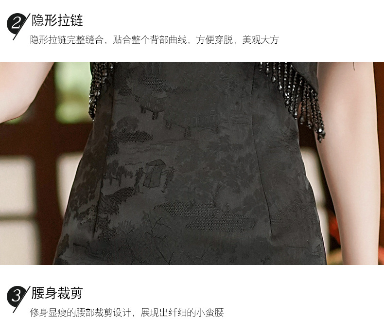 时尚洋气,黑色现代改良旗袍夏新款连衣裙炫酷风走秀主持礼服GSJ2365
