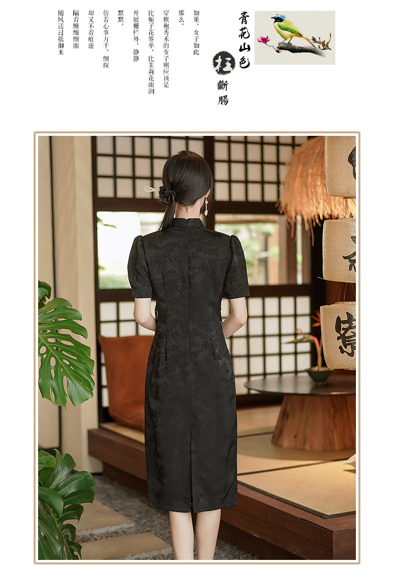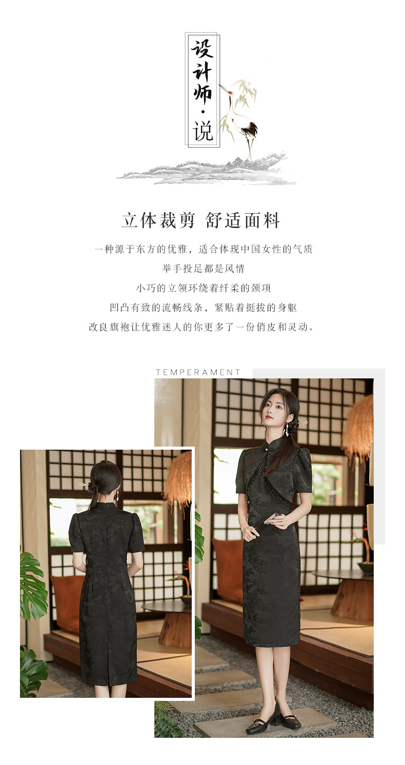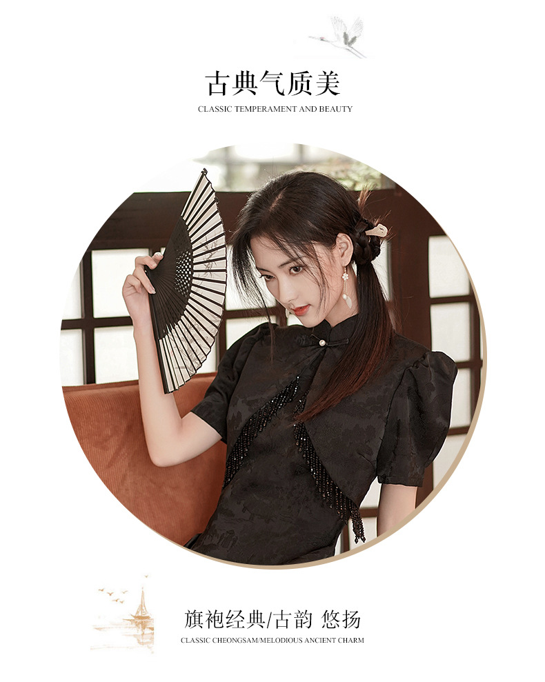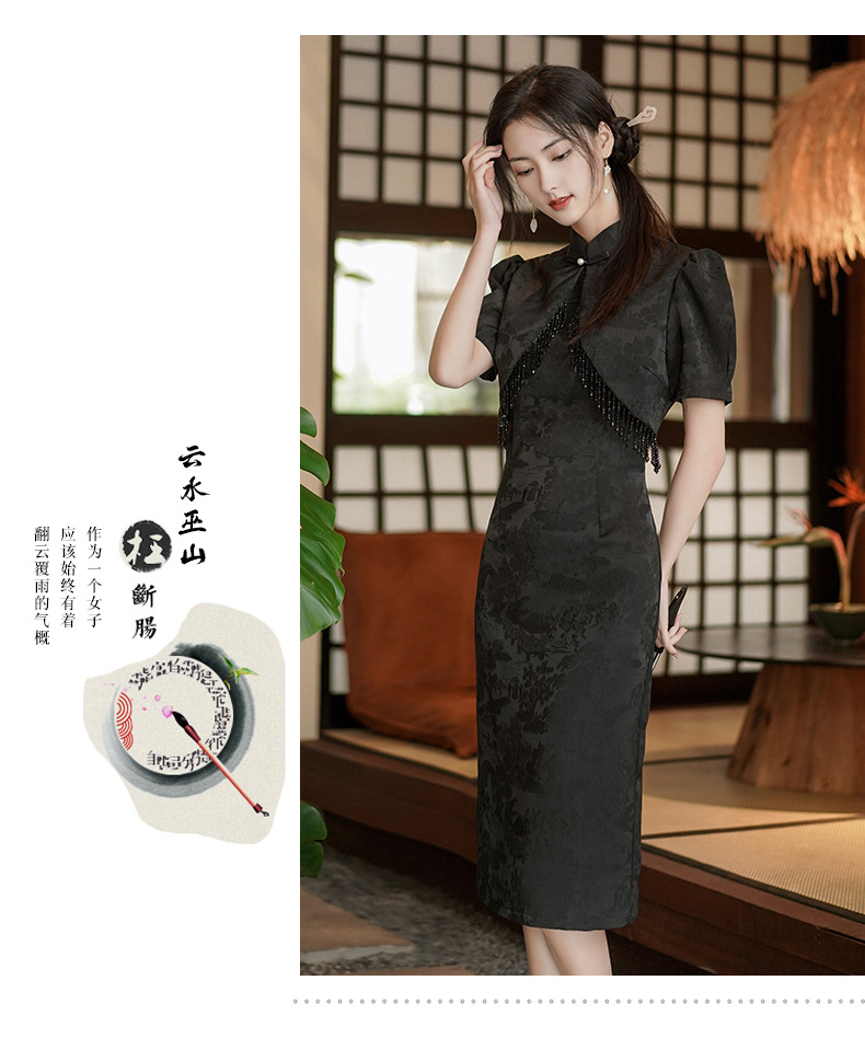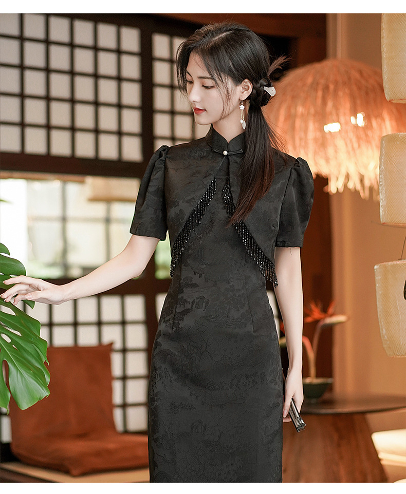 时尚洋气,黑色现代改良旗袍夏新款连衣裙炫酷风走秀主持礼服GSJ2365