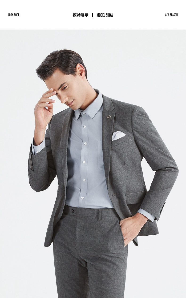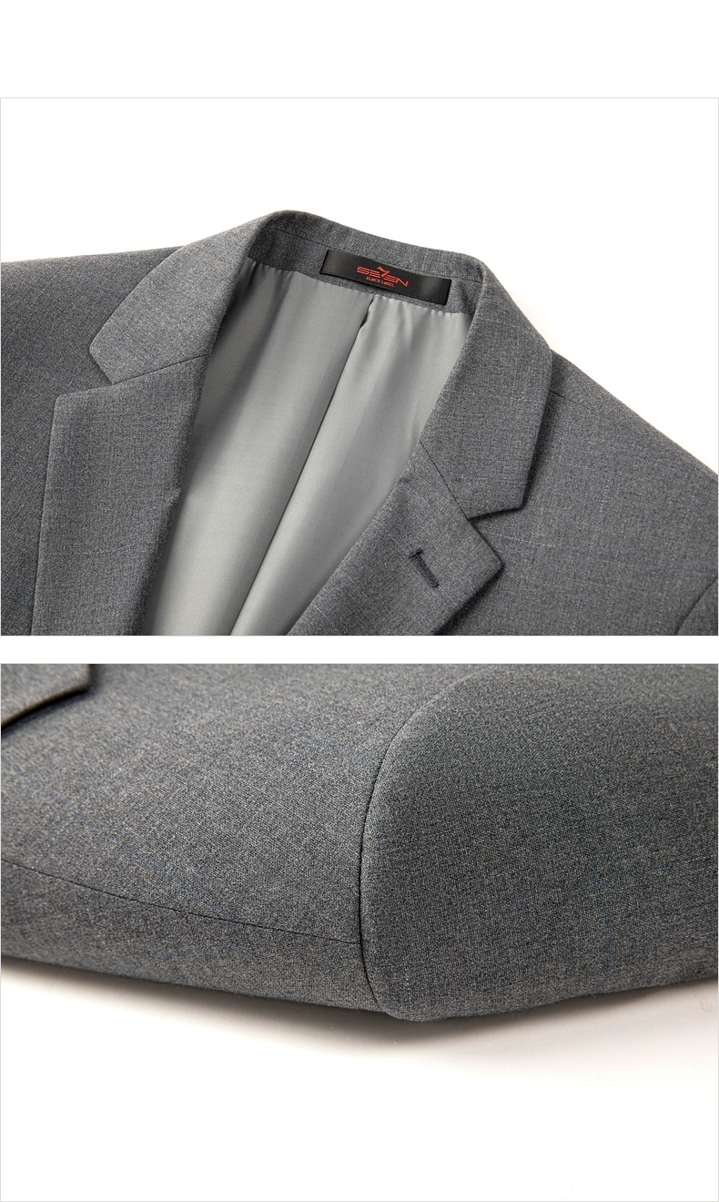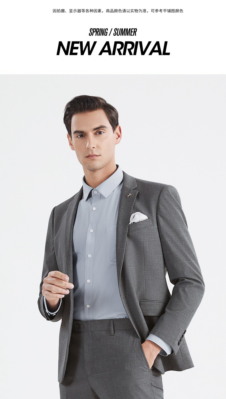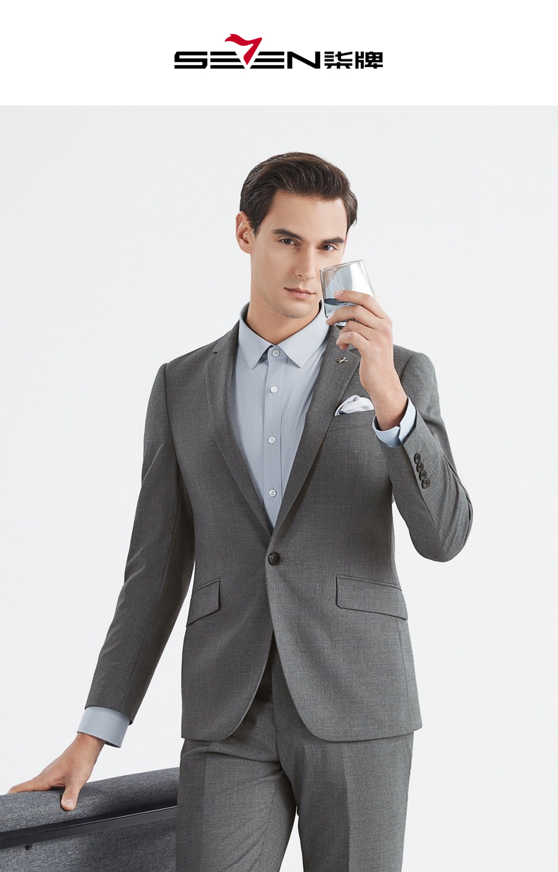 【特价】柒牌休闲西服套装男春季新款商务休闲男士外套深灰色格纹套西 122C70140