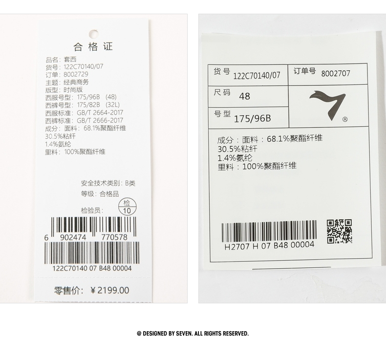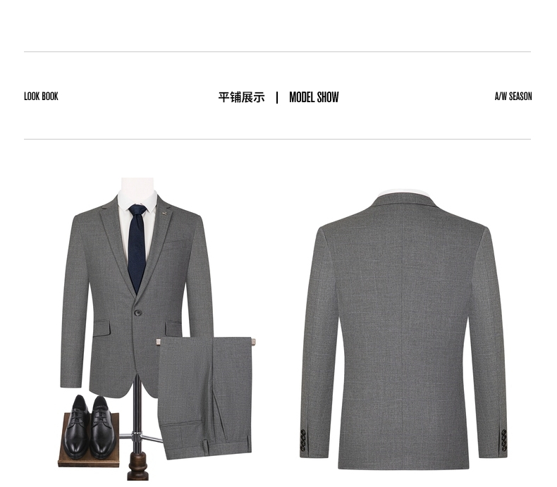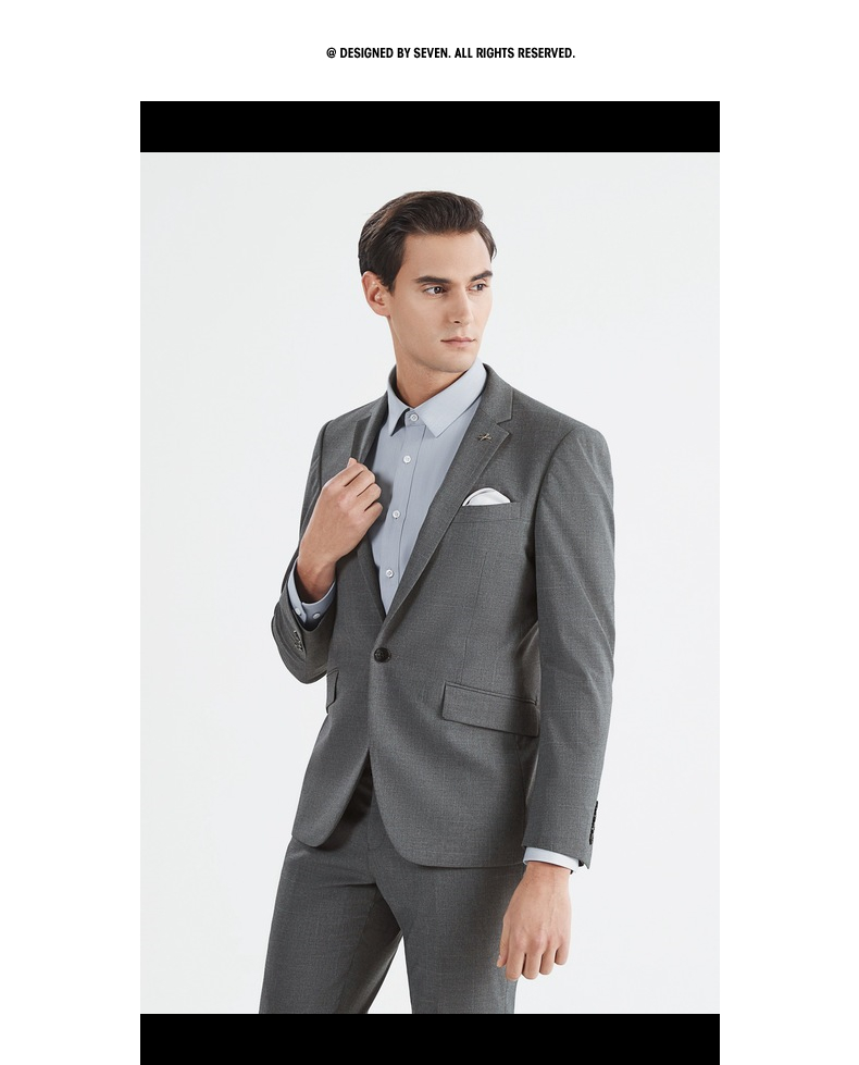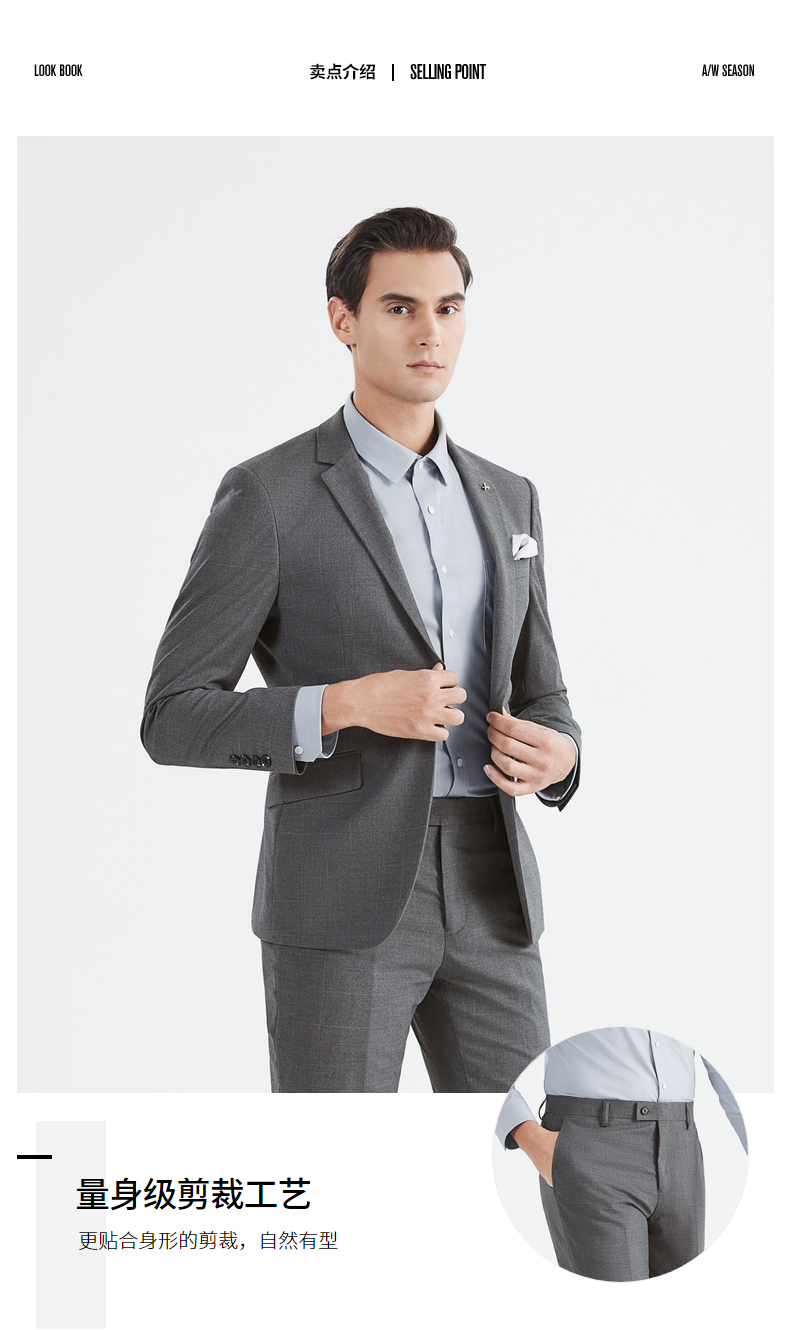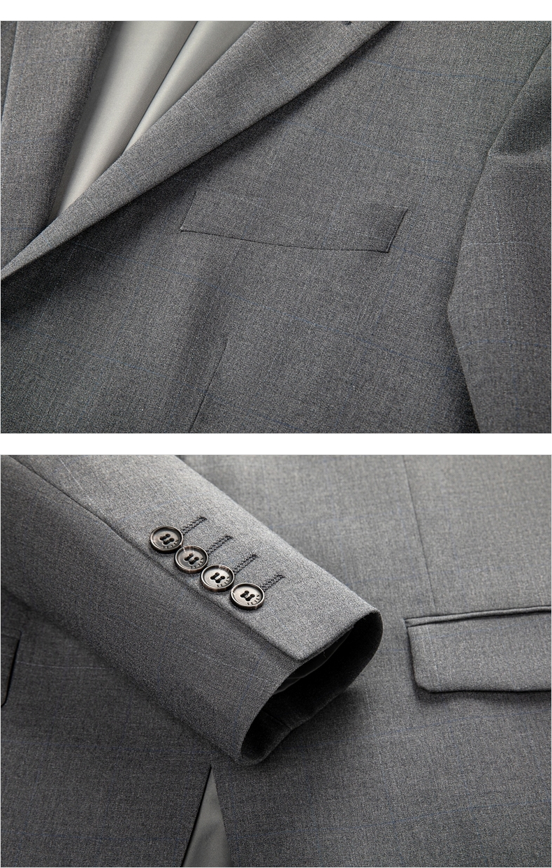 【特价】柒牌休闲西服套装男春季新款商务休闲男士外套深灰色格纹套西 122C70140
