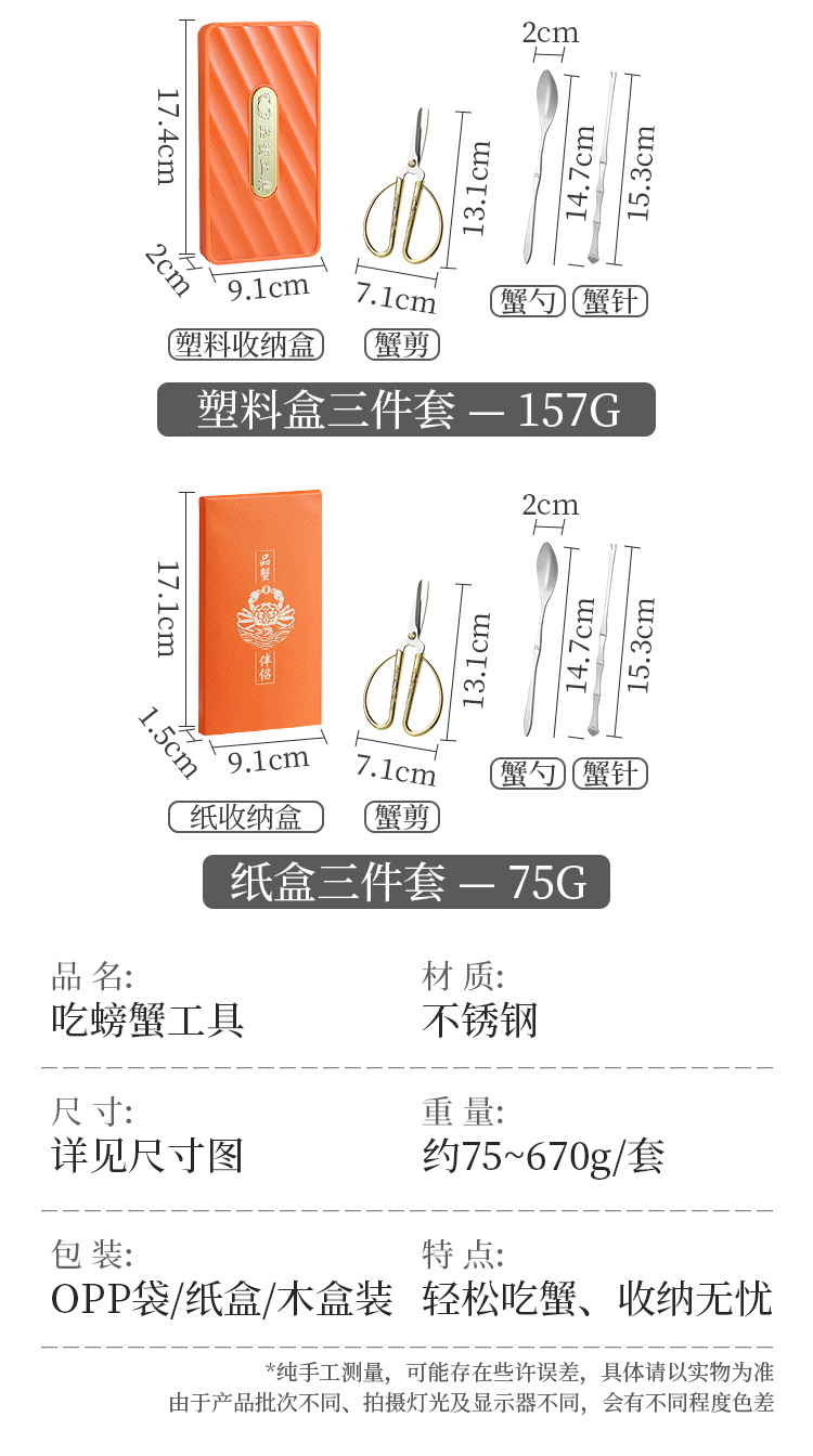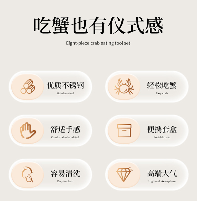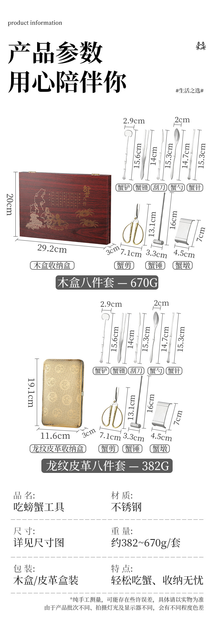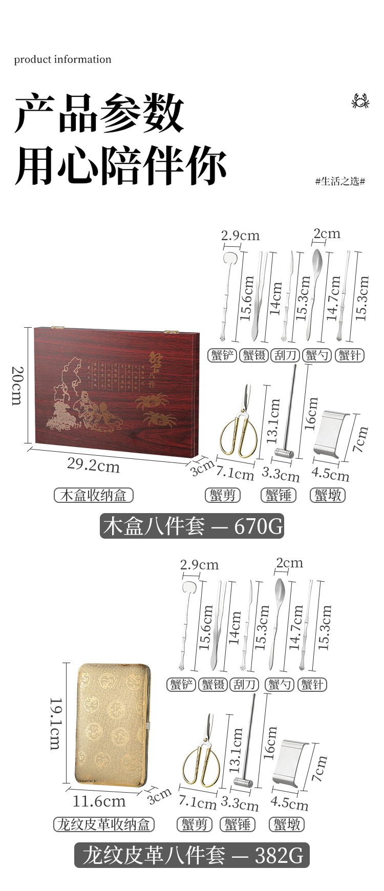 木盒蟹八件不锈钢吃蟹工具 礼品大闸蟹剥蟹套装 品蟹工具礼盒装剥蟹