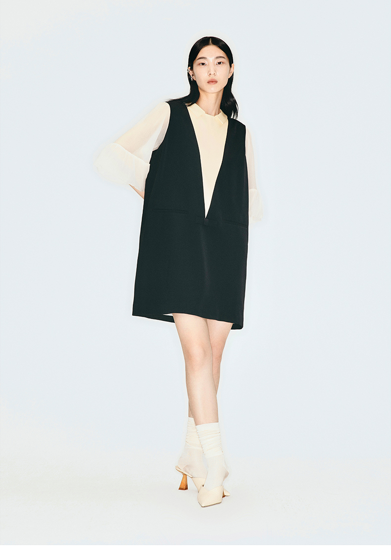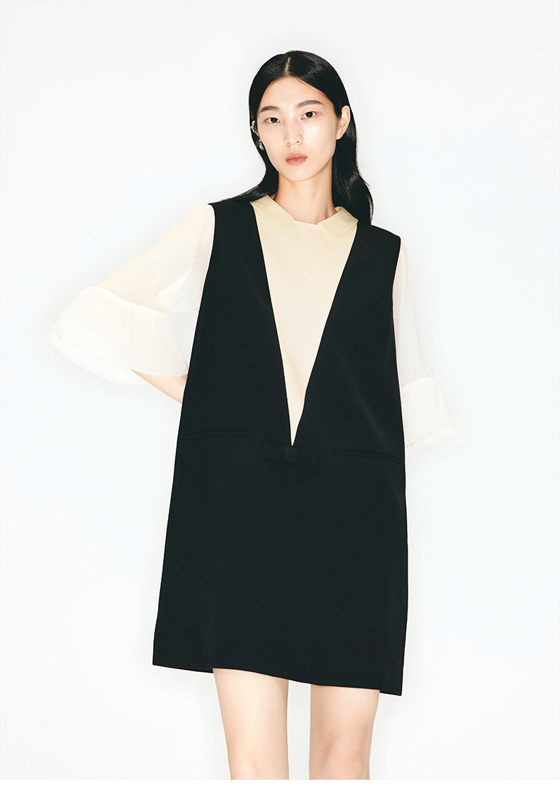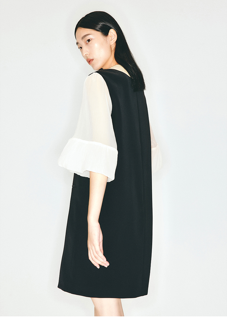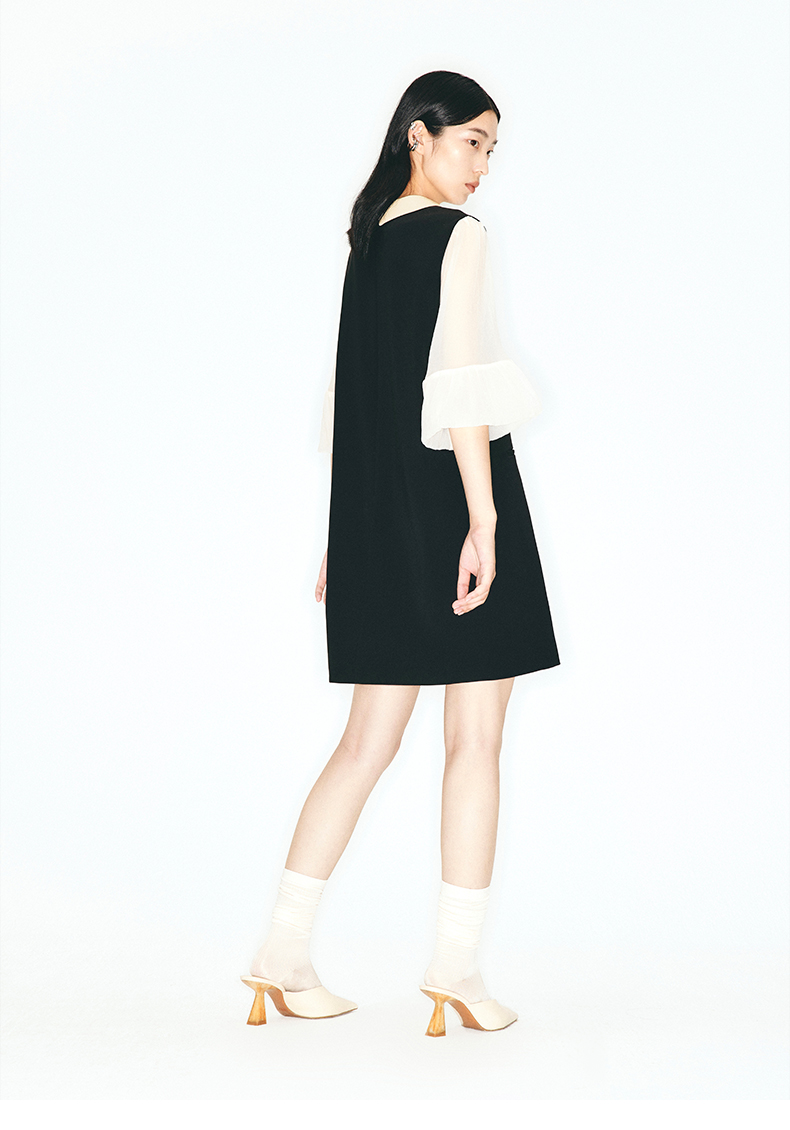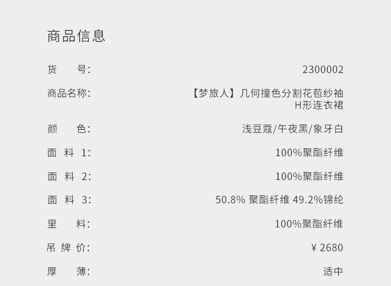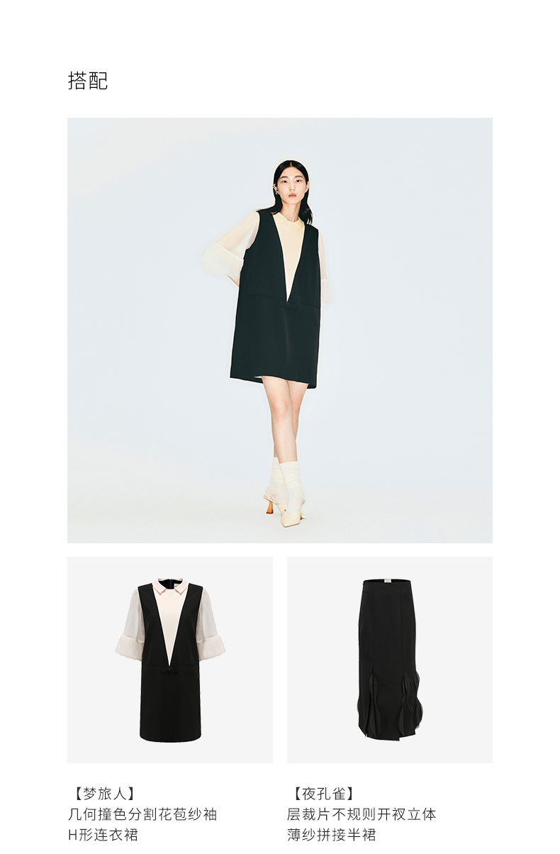 【梦旅人】几何撞色分割花苞纱袖H形连衣裙/2300002