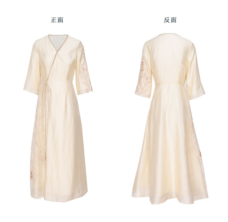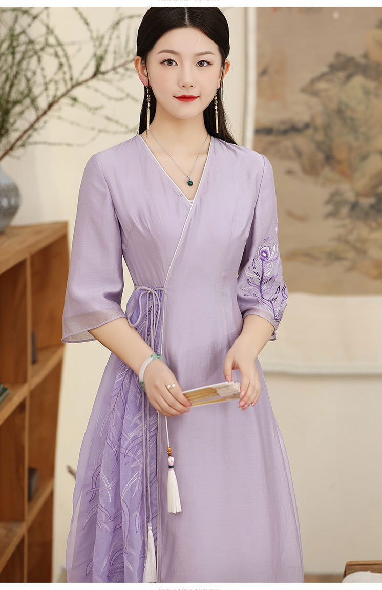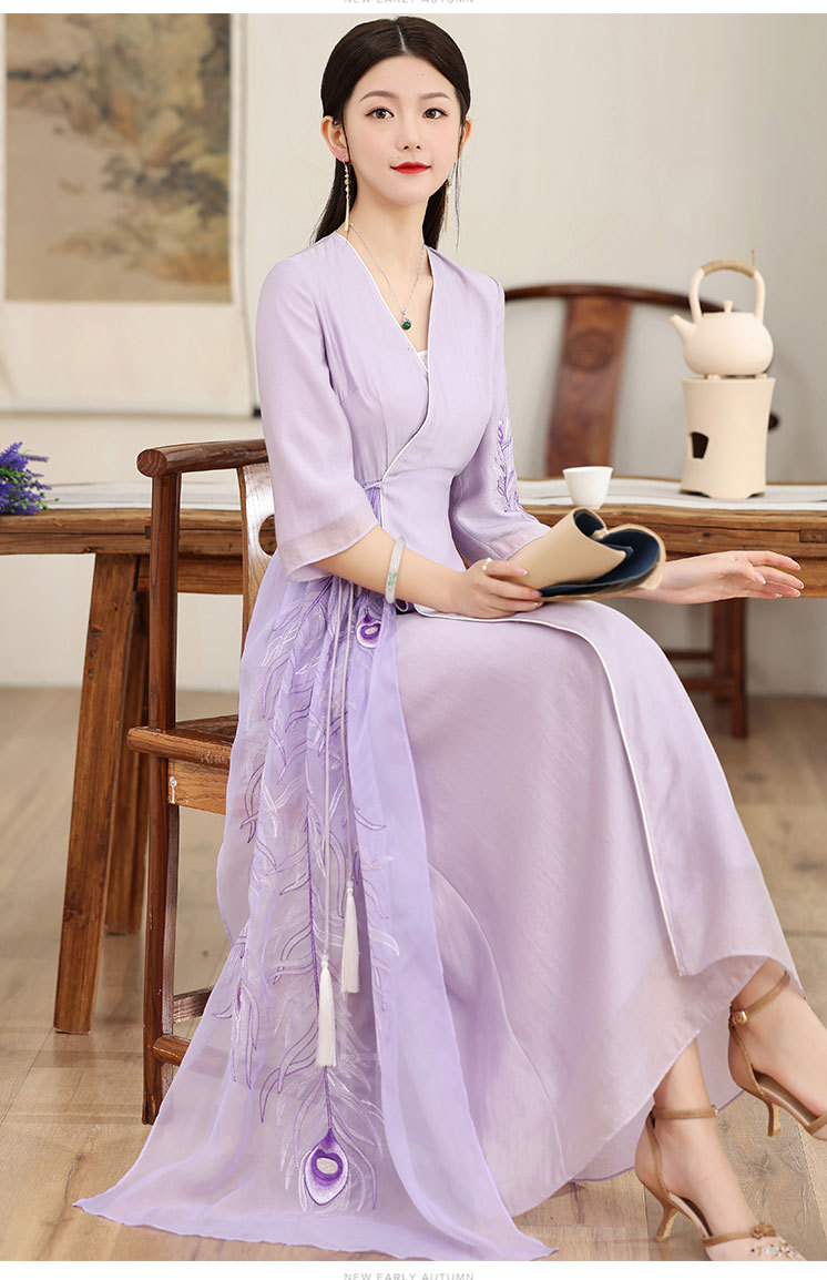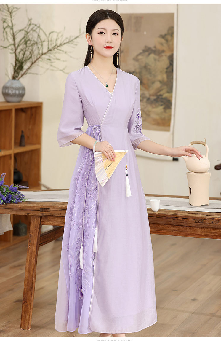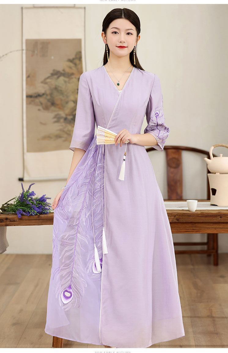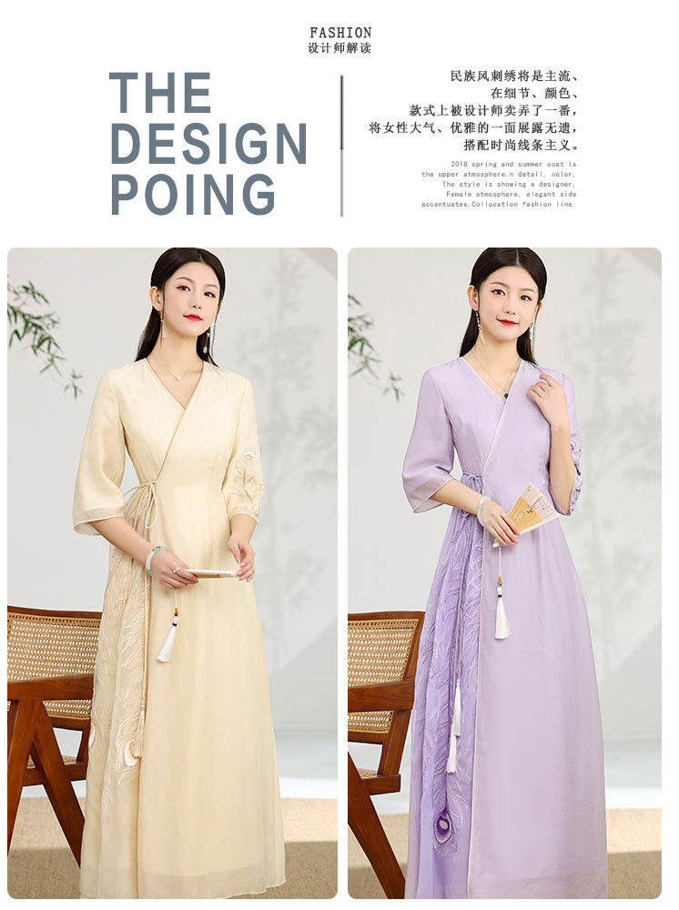 复古国风,禅意禅服系带改良凤凰刺绣中式汉服桔梗连衣裙OG-99957
