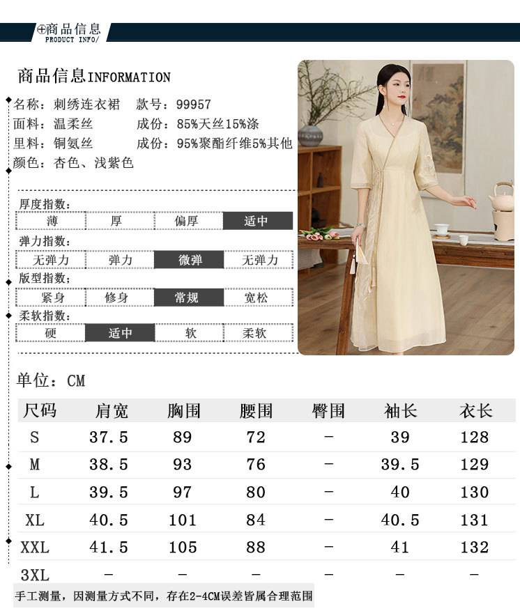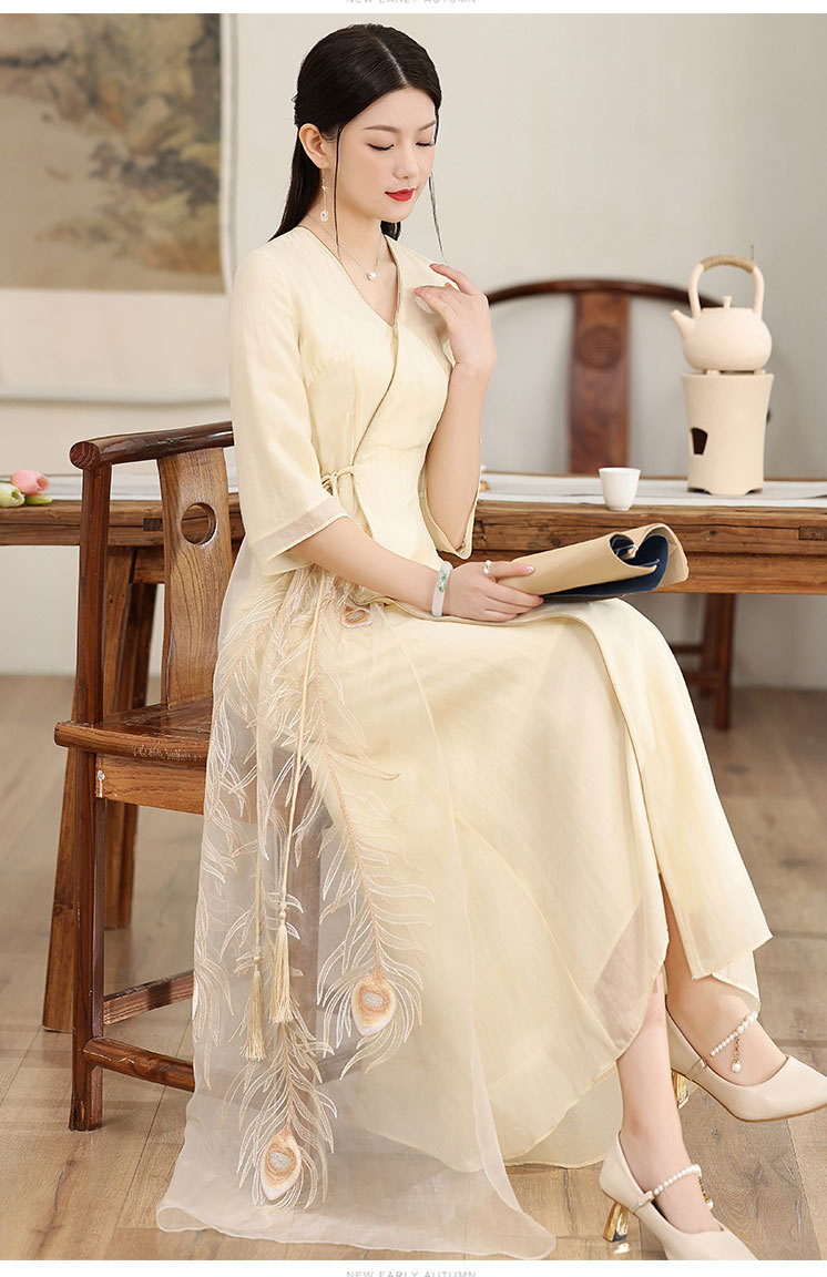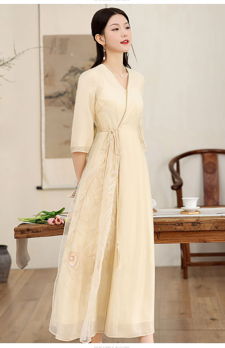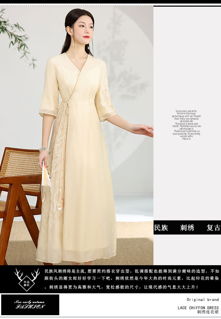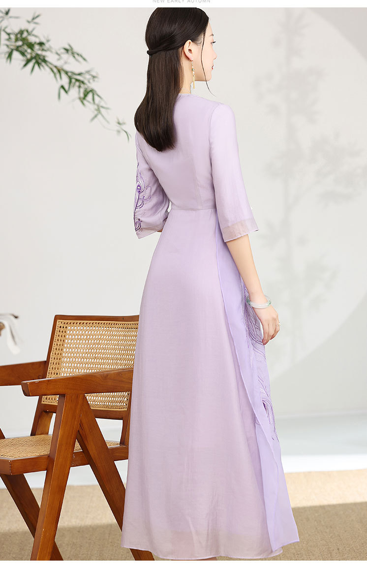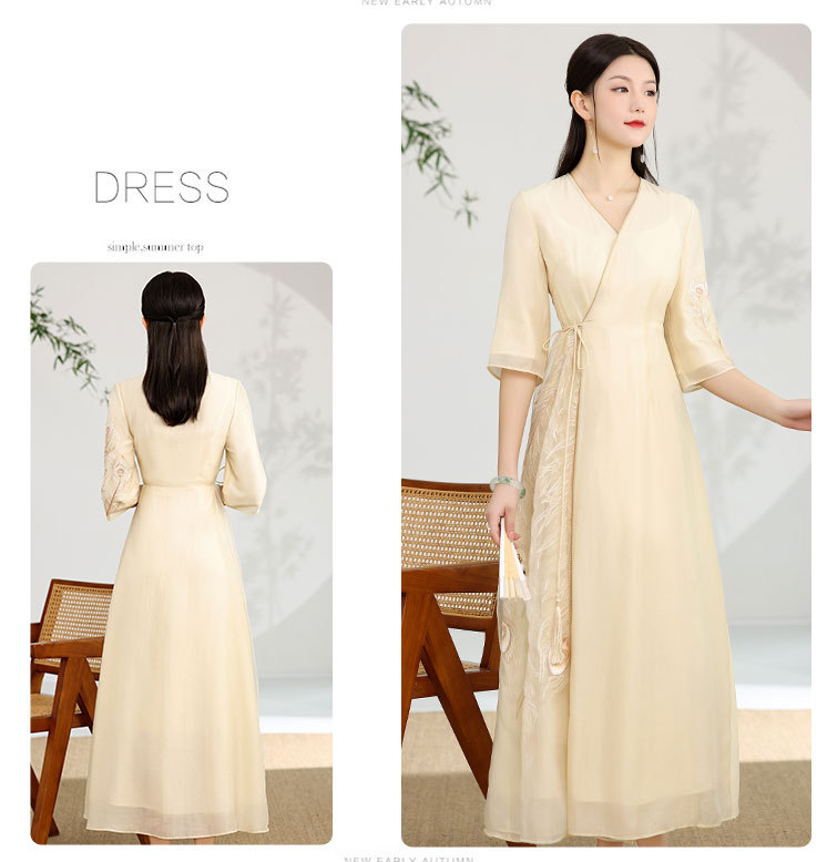 复古国风,禅意禅服系带改良凤凰刺绣中式汉服桔梗连衣裙OG-99957