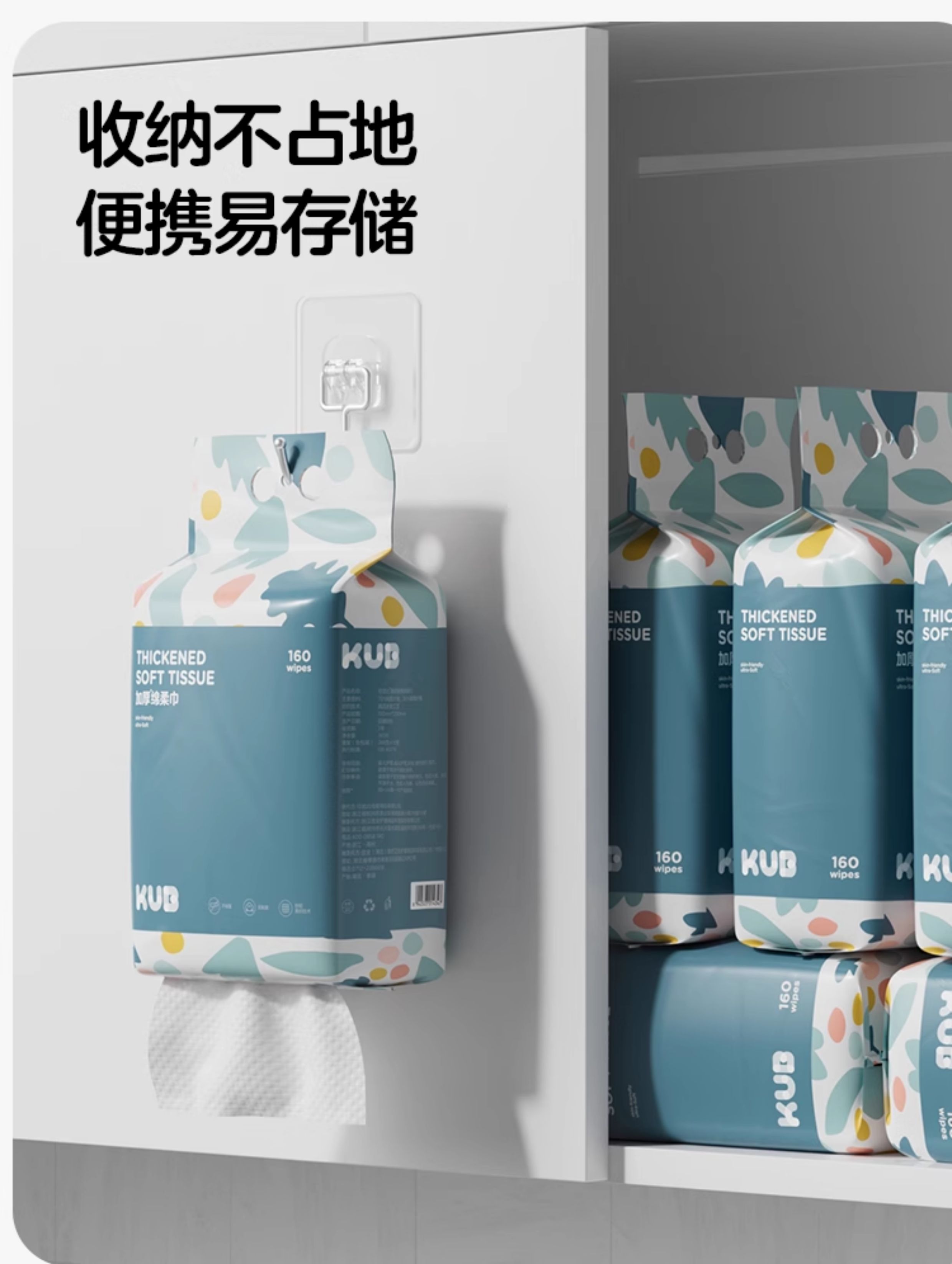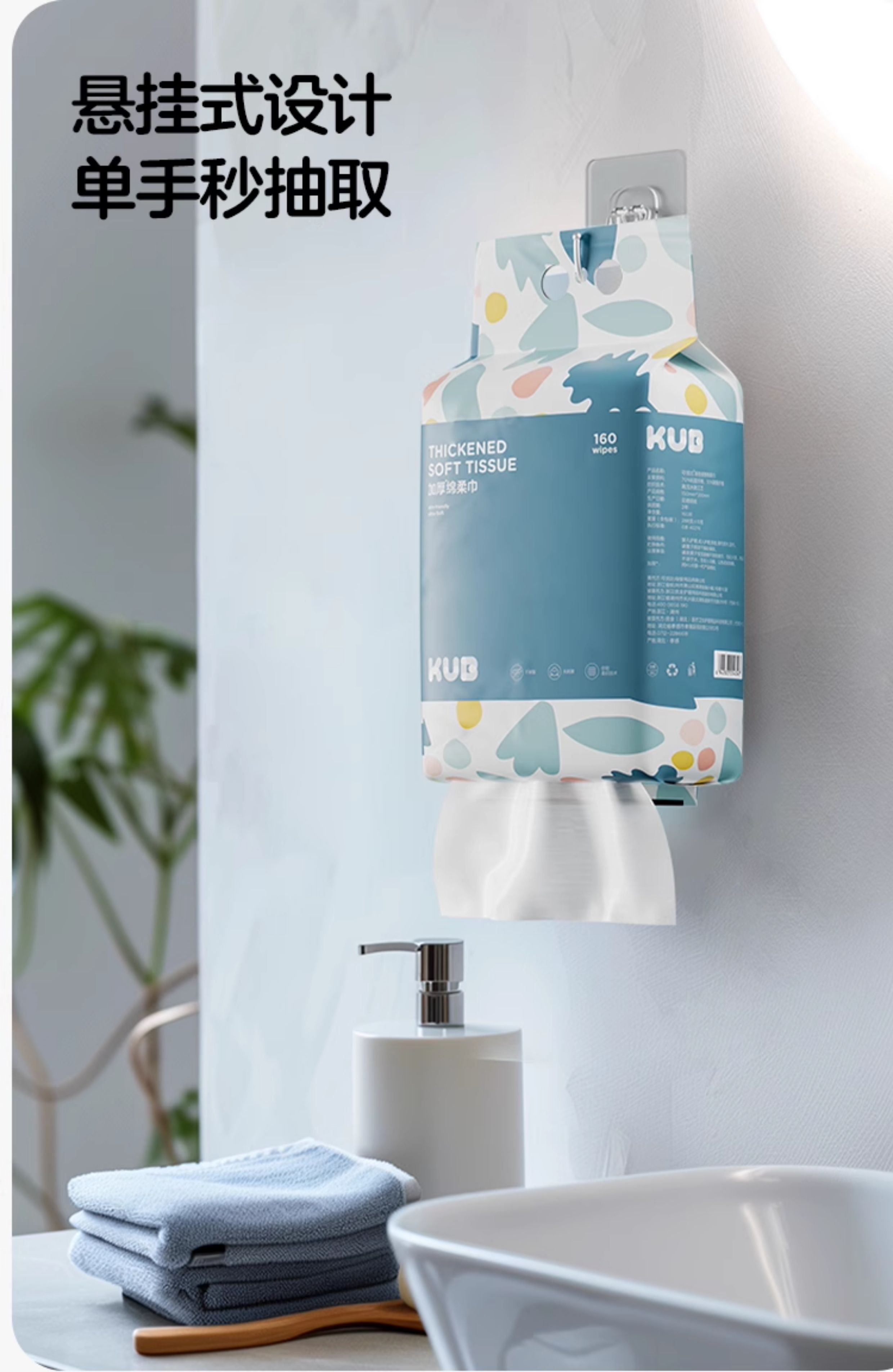 【积分兑换】KUB可优比洗脸巾婴儿绵柔巾悬挂式抽取宝宝洁面巾壁挂式容量160抽
