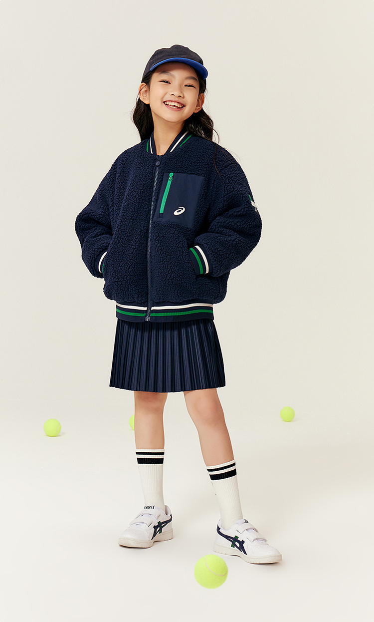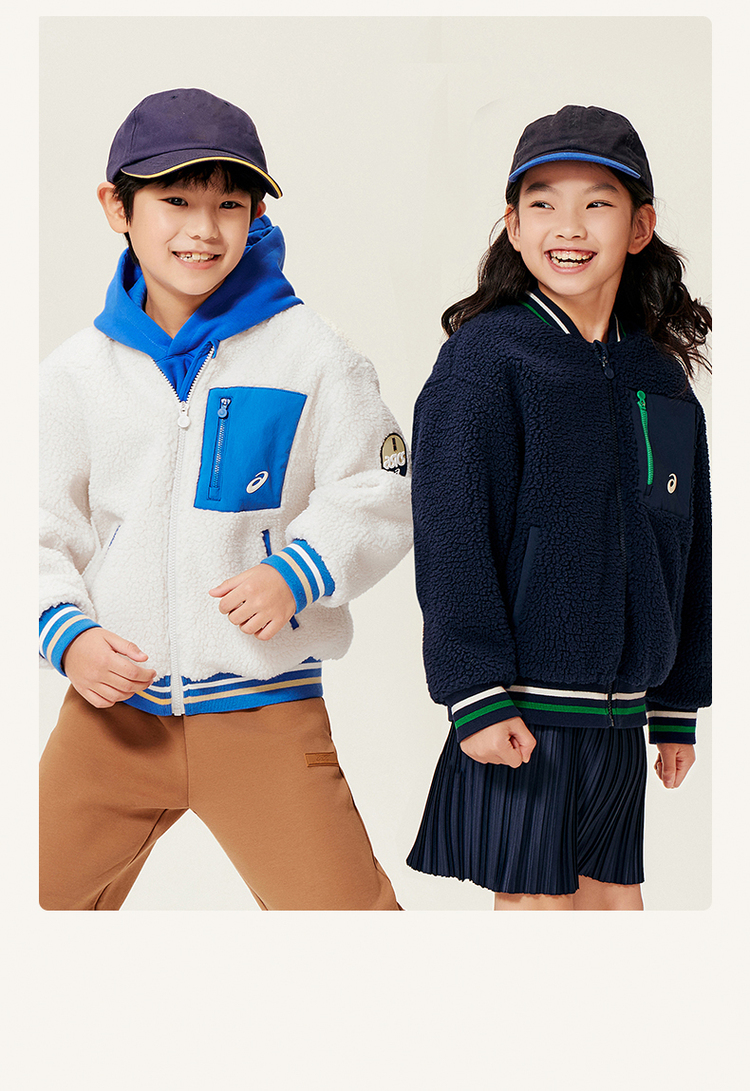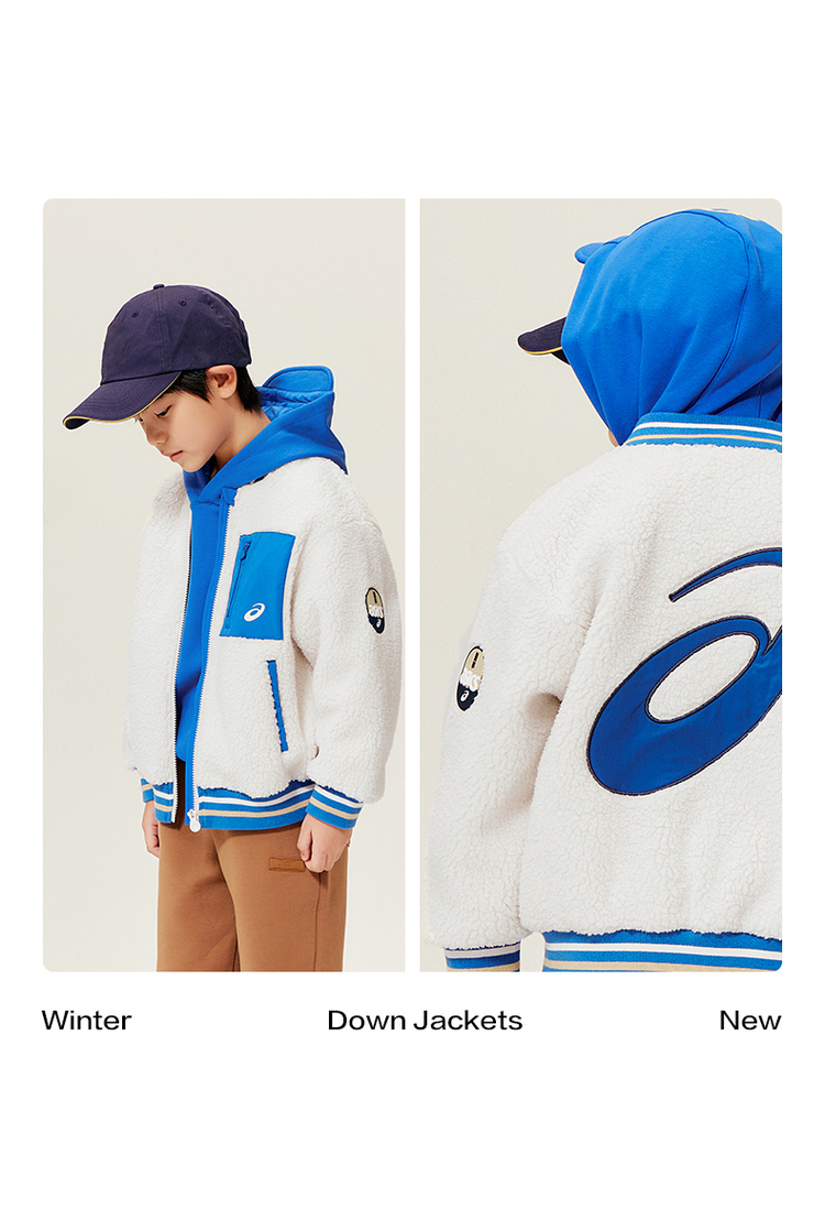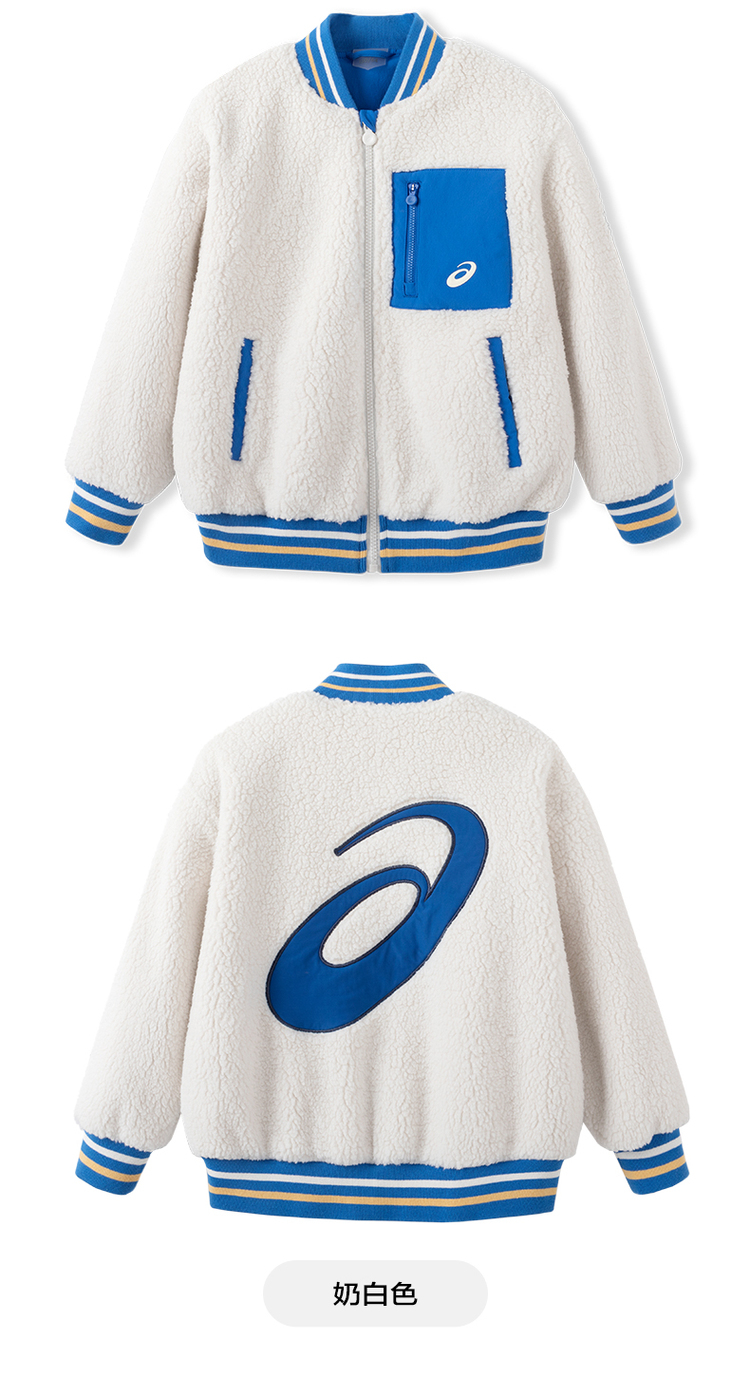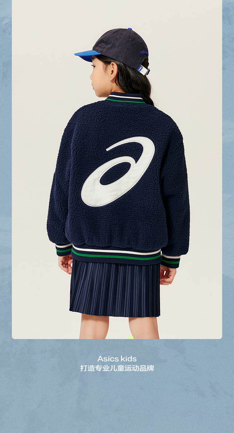 ASICS/亚瑟士童装便服2023冬季新款儿童保暖加绒棒球服运动外套