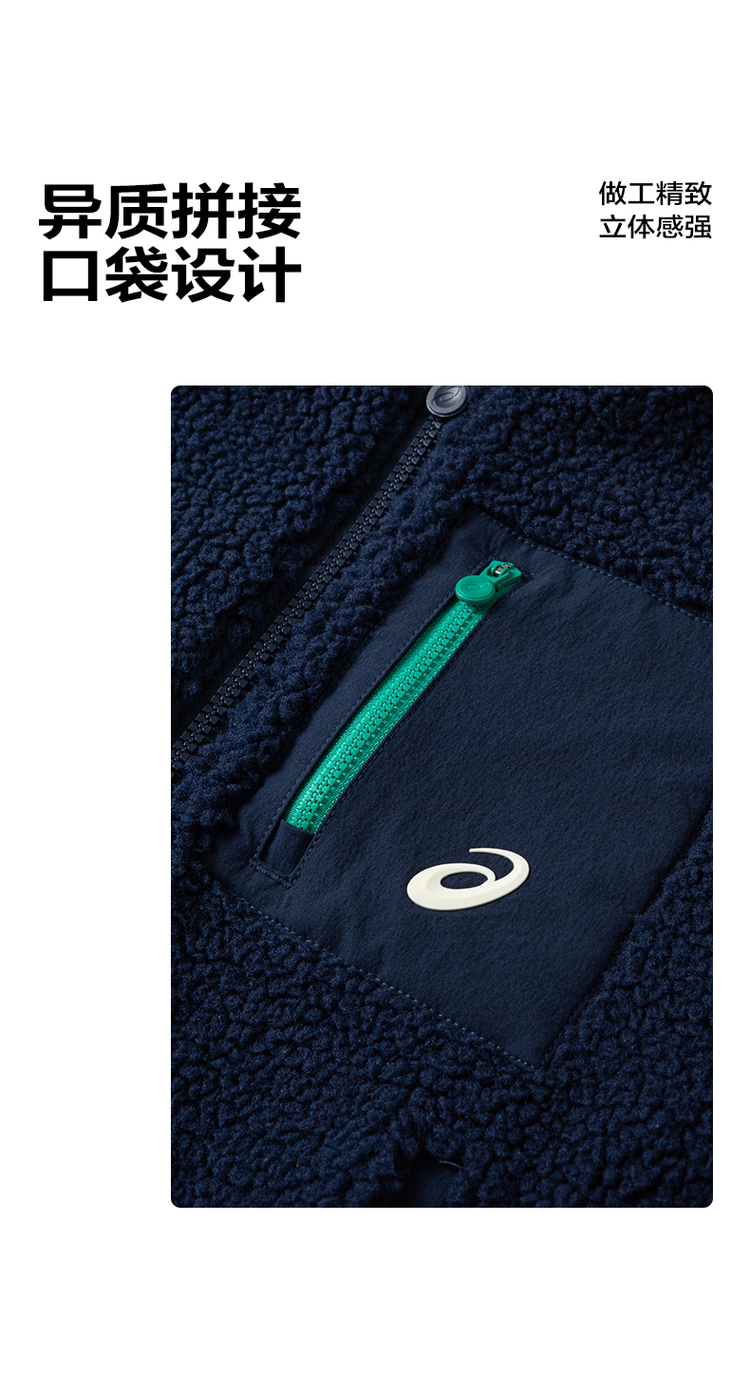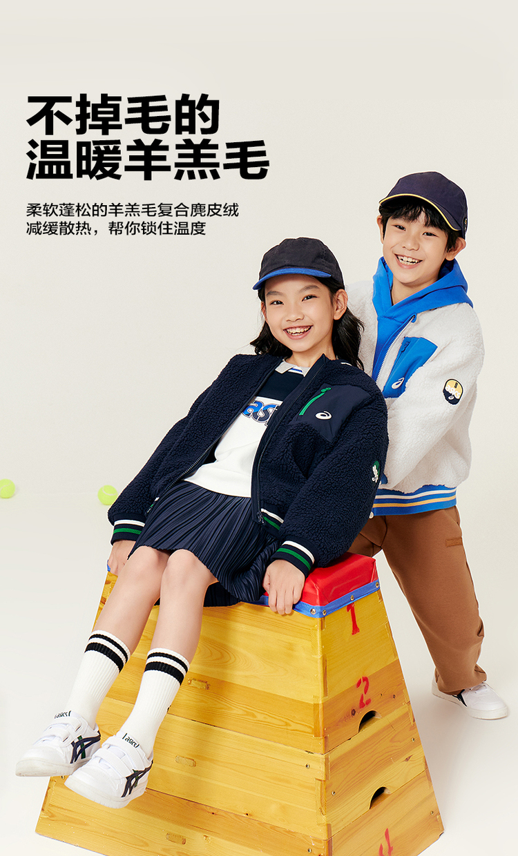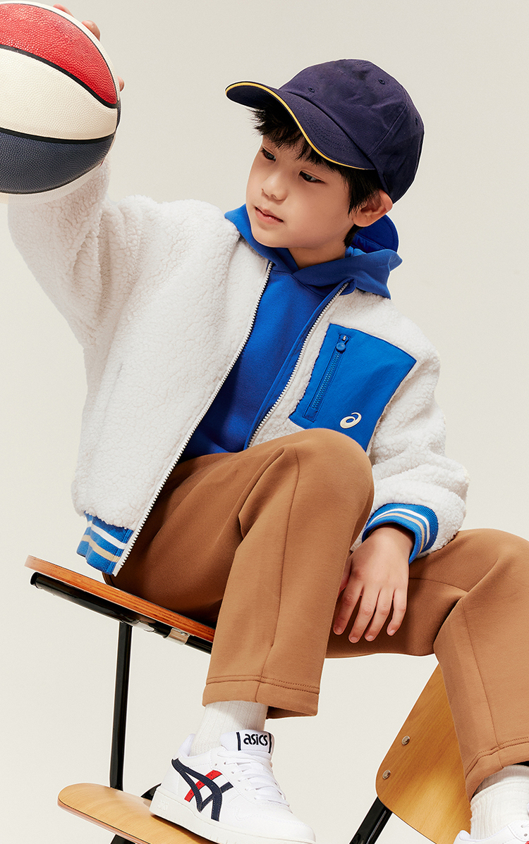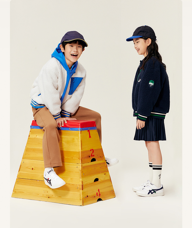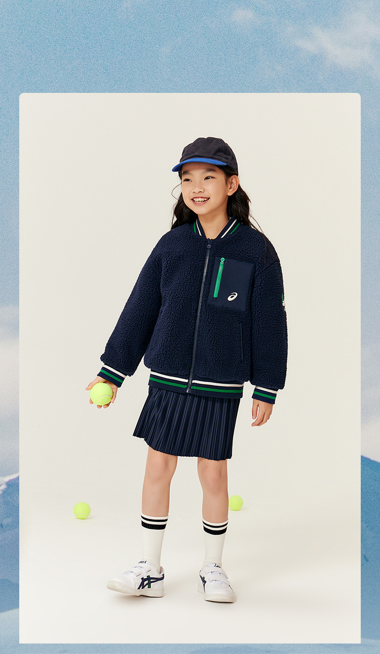 ASICS/亚瑟士童装便服2023冬季新款儿童保暖加绒棒球服运动外套
