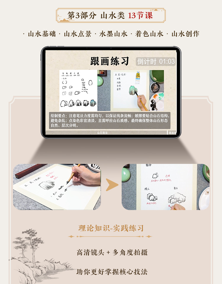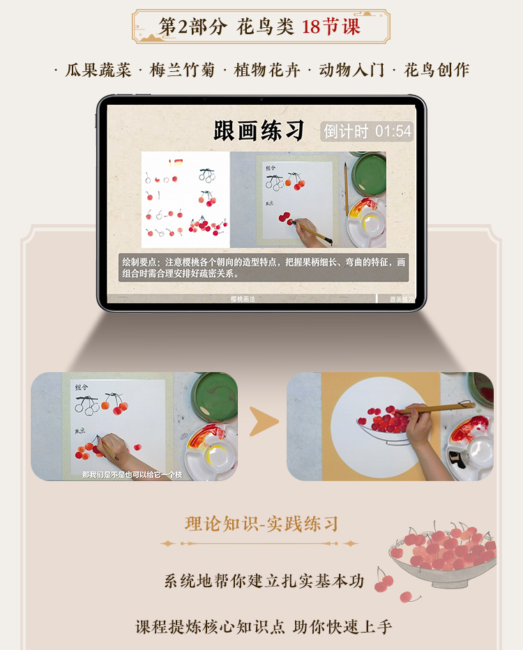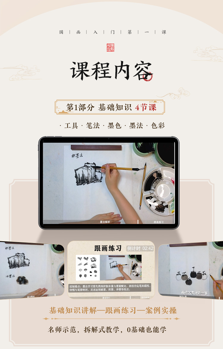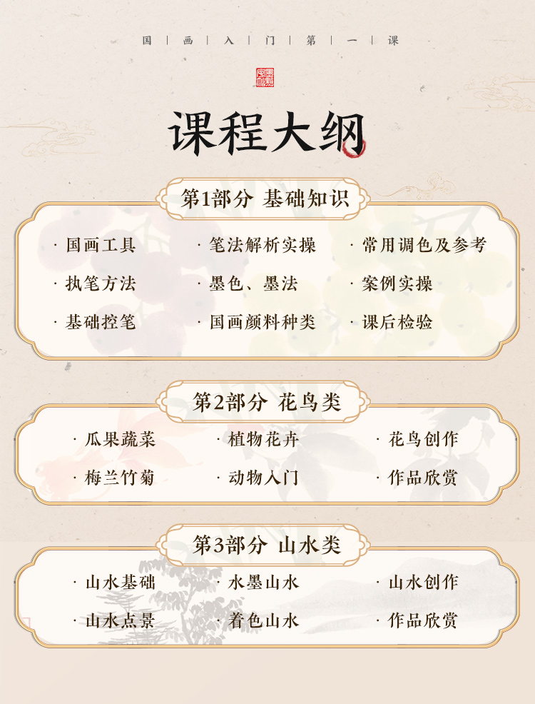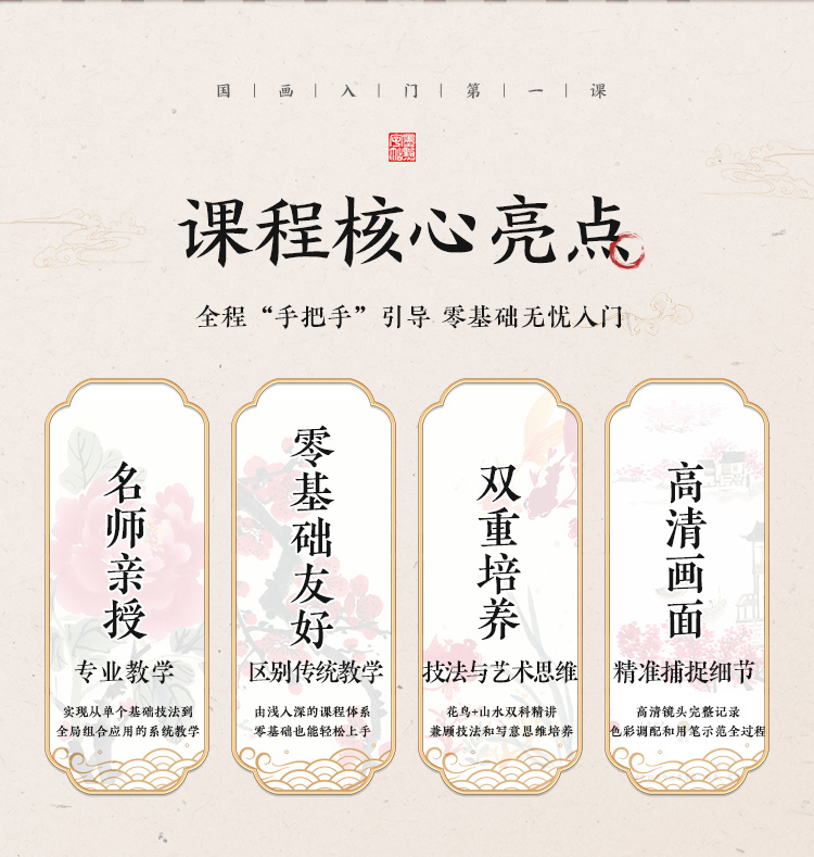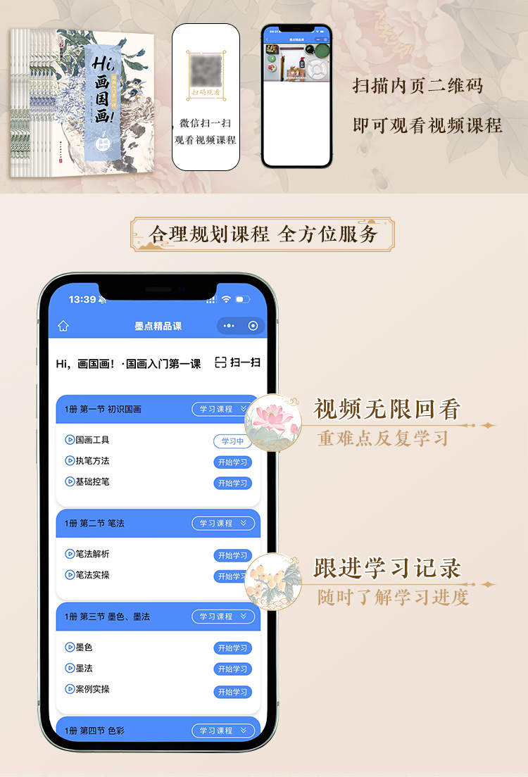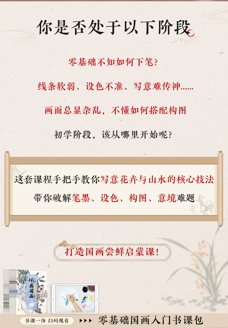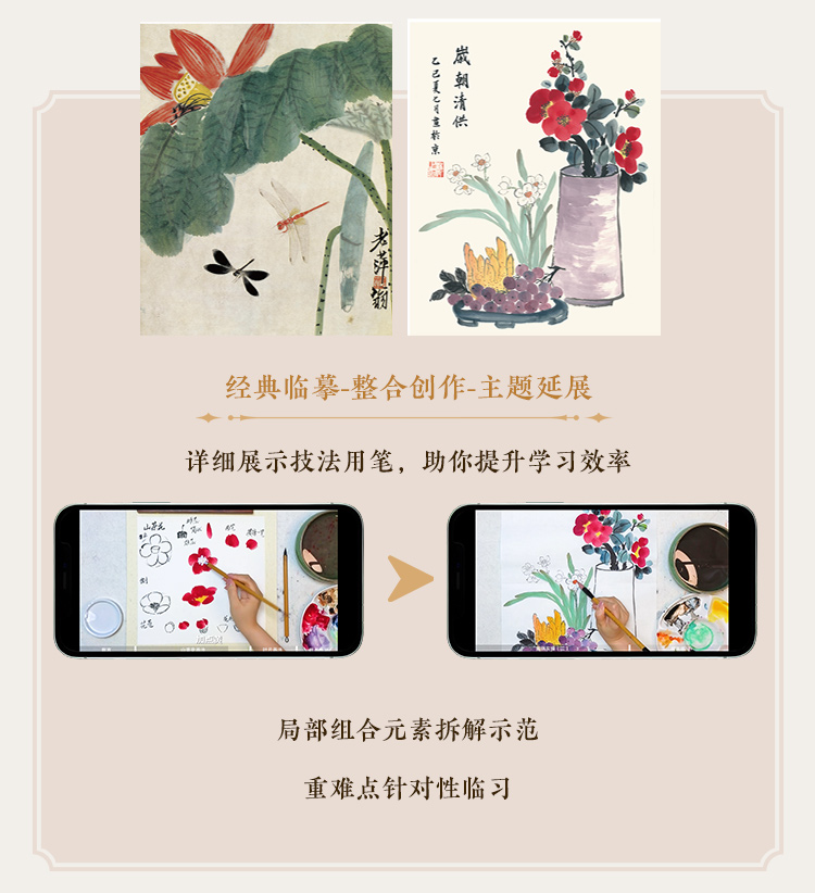 【国画入门书课包】画国画中国画入门描摹本国画工笔花卉人物画本工具描红书初学者画画临摹画册毛笔绘画练习视频教材套装
