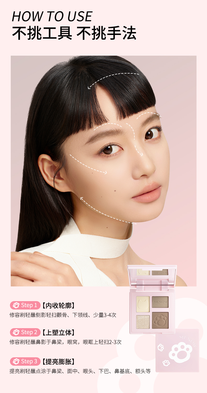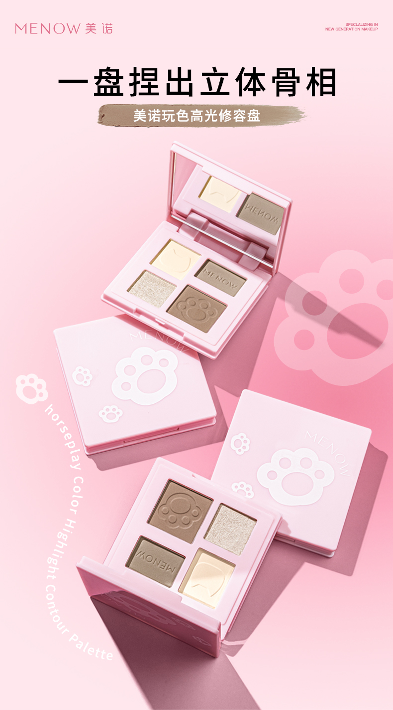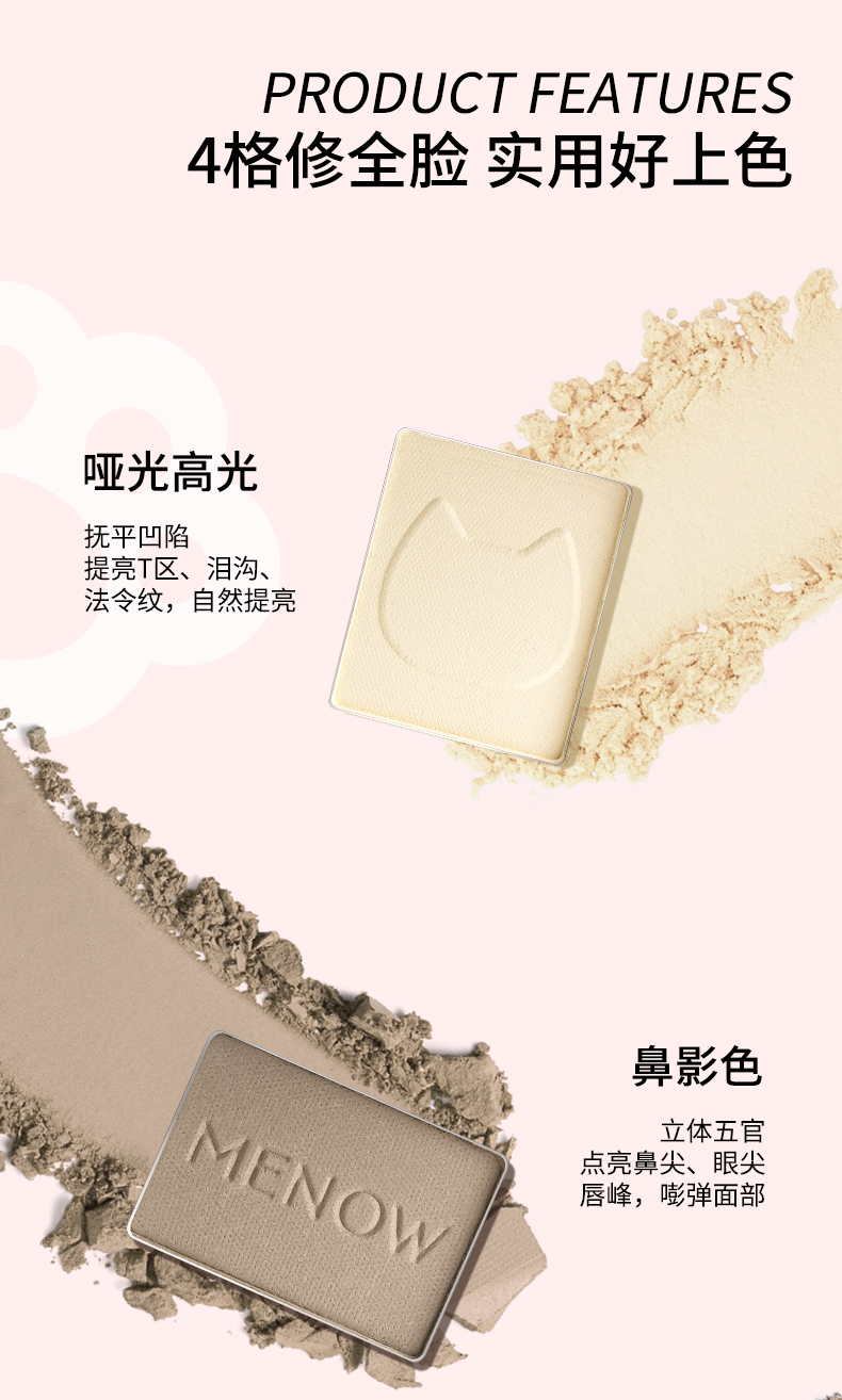 【59.9元任选3件】美诺玩色高光修容盘一体盘阴影哑光脸部提亮四色立体